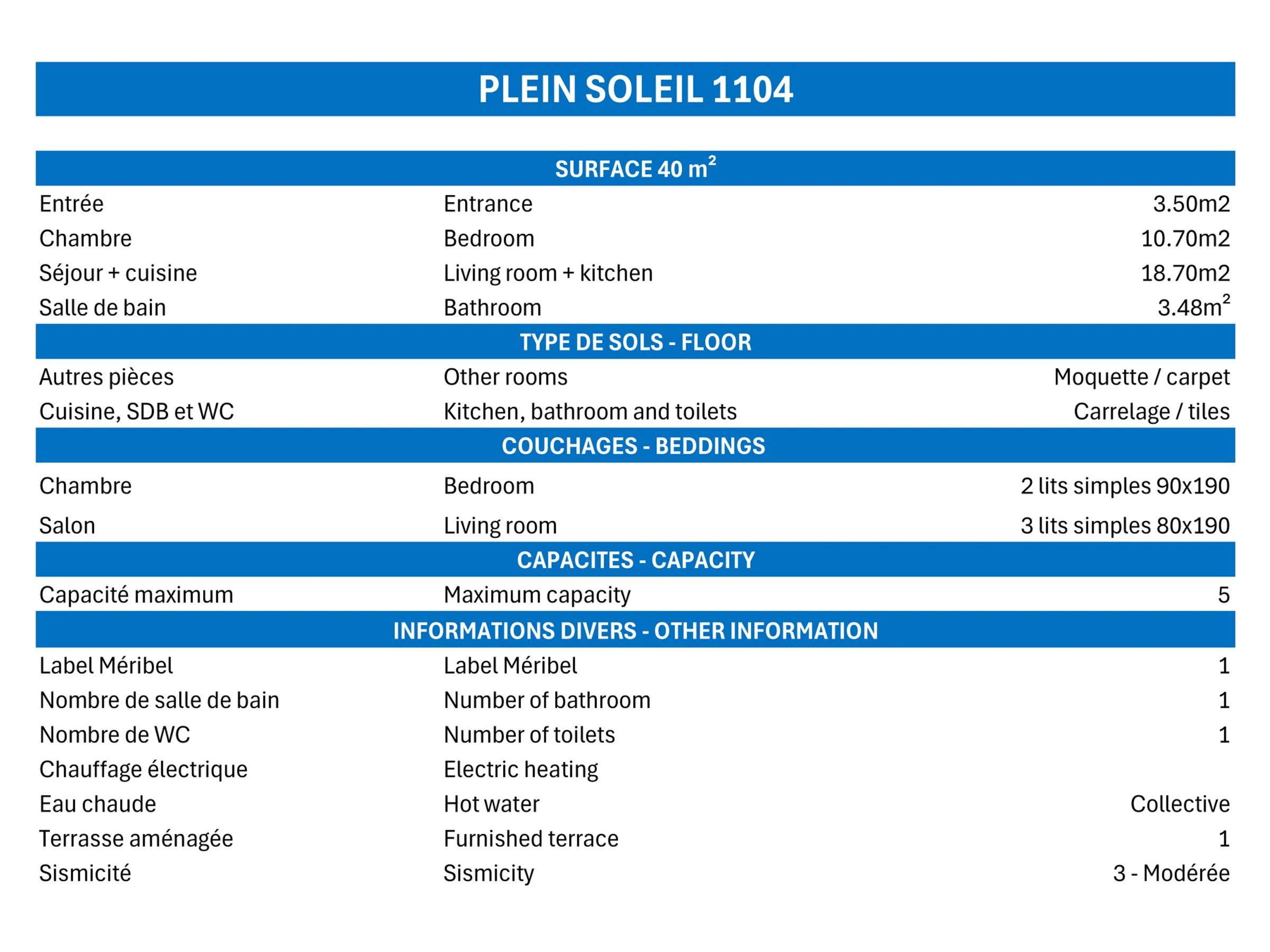 . Lit bébé : 40.0 € par séjour