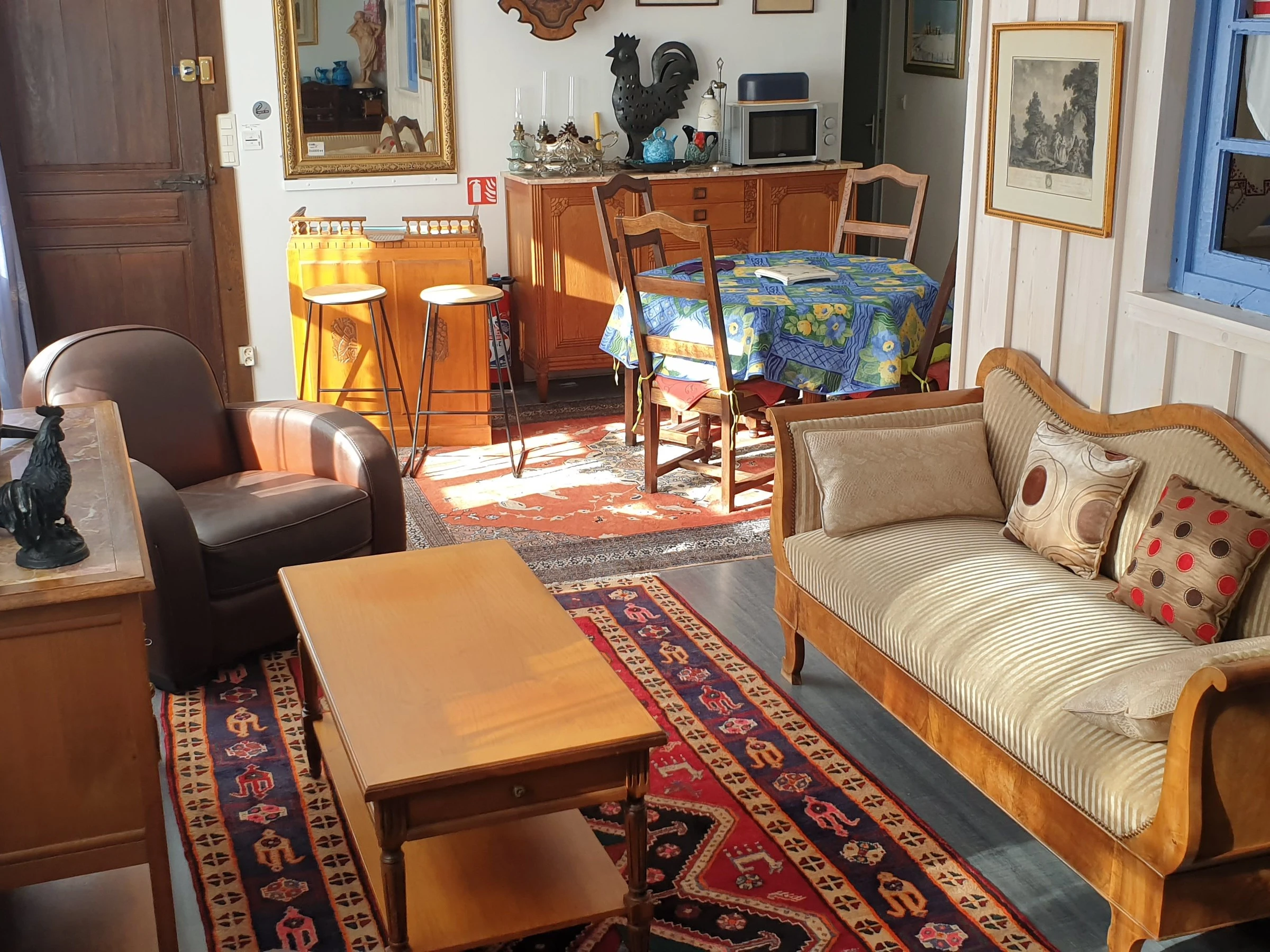 Producteurs produits locaux à proximité, fromagerie, légumes, viande de bison... L’hébergement de 40m2, de plain-pied, cosy et à la décoration recherchée, chinée, dispose d’un coin cuisine avec plaques de cuisson (2 feux), lave-vaisselle, micro-ondes et mini four, d’un espace détente avec TV écran plat et d’un coin nuit doté d’un lit 160x200cm. Internet, wifi et Netflix gratuits. Equipements disponibles pour bébé : lit parapluie avec draps, table à langer avec baignoire et chaise haute.
