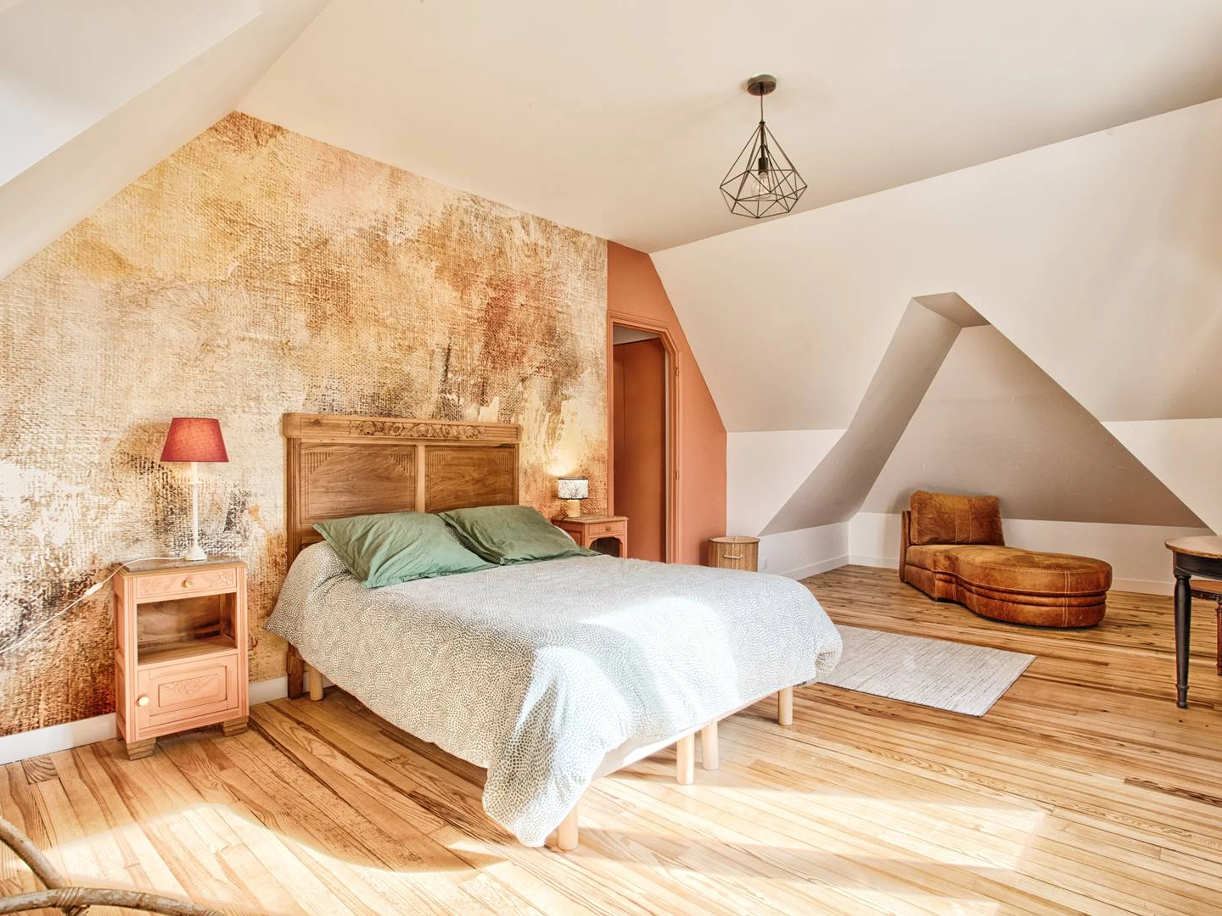Un second escalier mène au dernier étage, où se trouvent encore trois chambres. L’une propose un lit 120x190, une autre offre quatre couchages (lit superposé et lit gigogne), parfait pour les enfants ou ados, et la dernière, plus spacieuse, accueille un lit Queen size ainsi qu’un lit bébé. Ce niveau dispose également d’une salle d’eau avec WC, offrant davantage de confort et d’indépendance pour ses occupants.