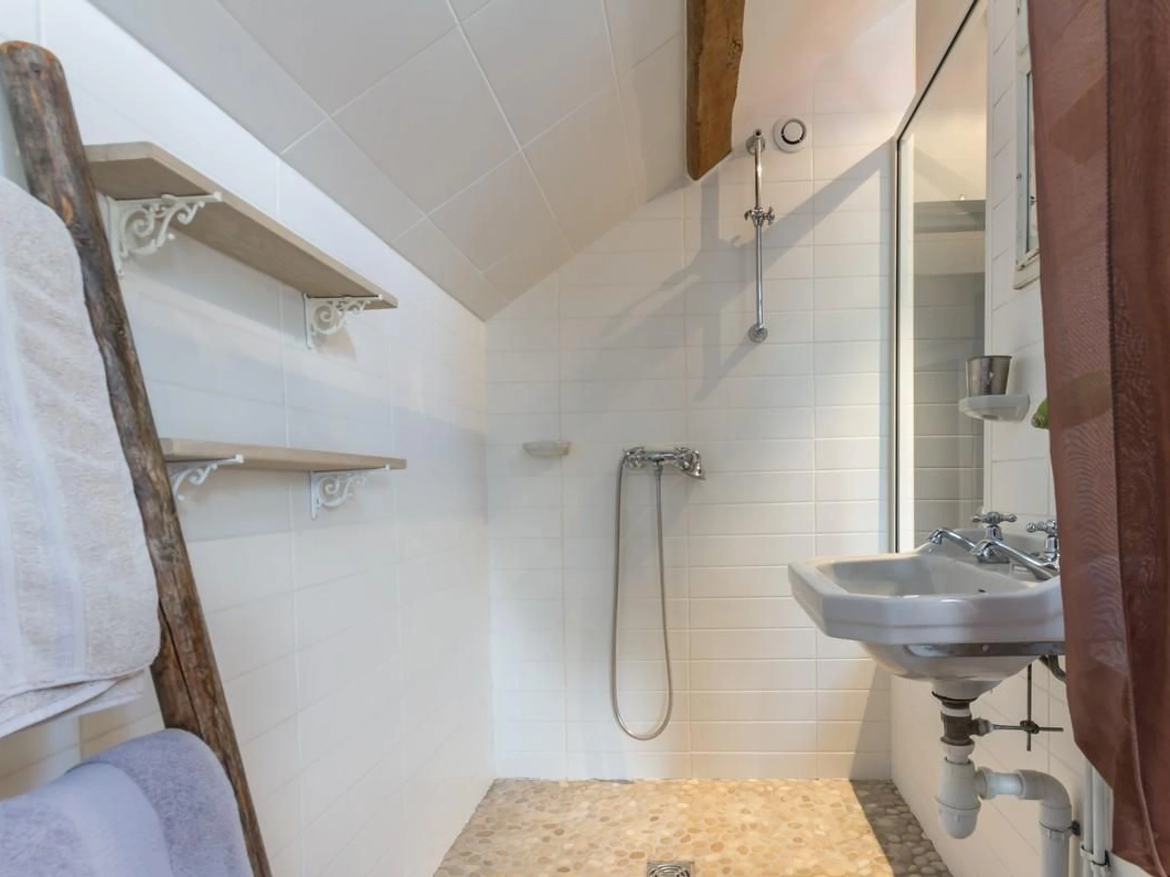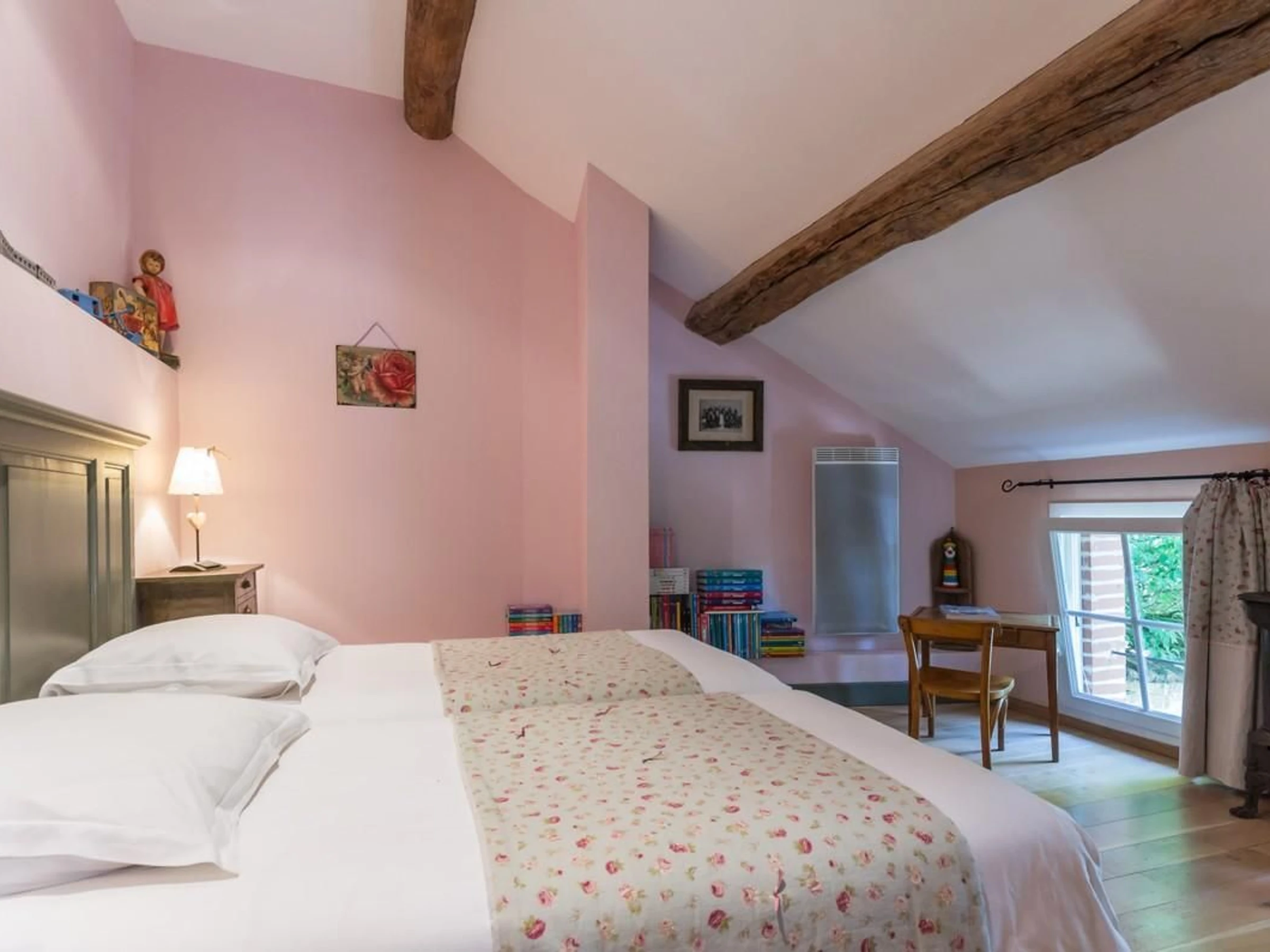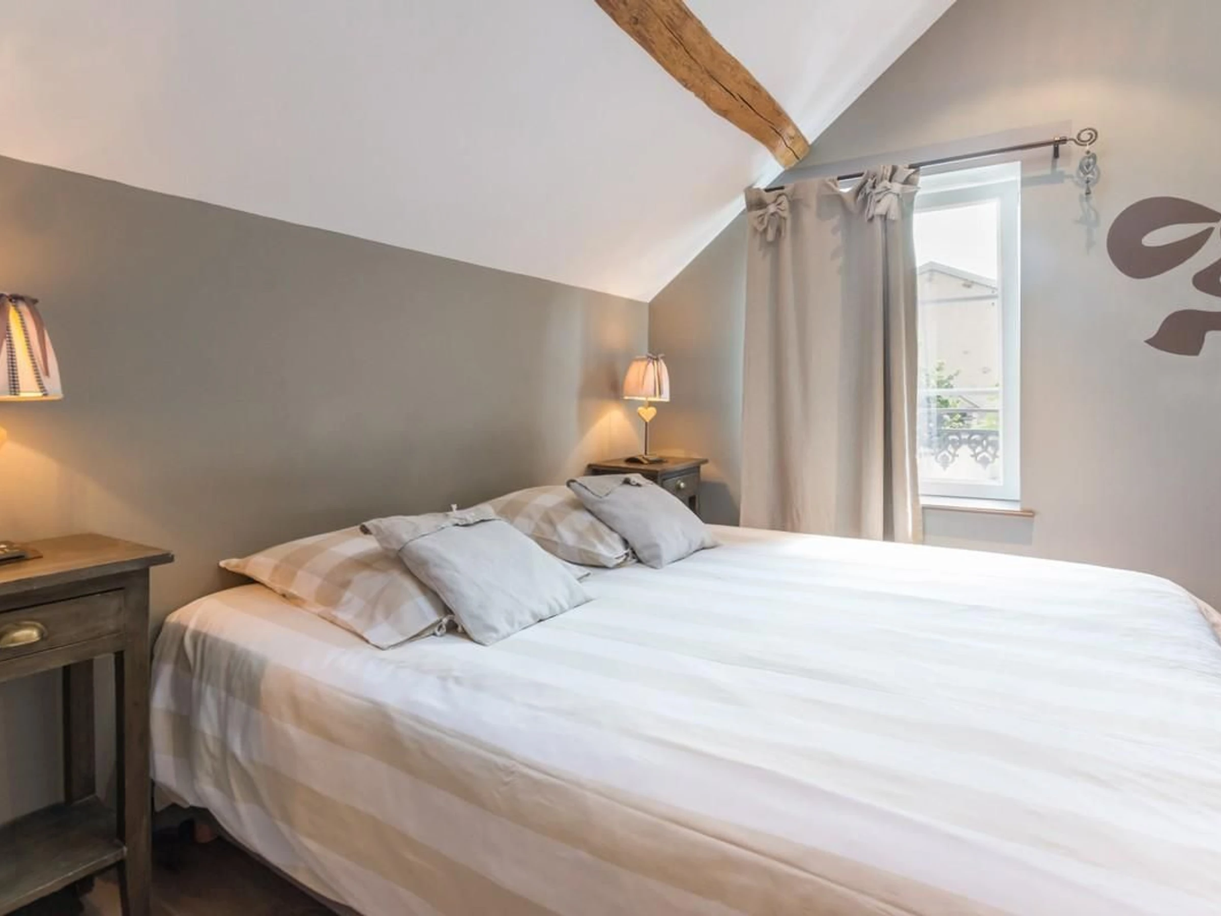 Couleurs douces et tendres pour un bon repos. Linge de toilette fourni. Chauffage au sol gaz et radiateurs électriques inclus dans les tarifs. Ménage et draps inclus. Téléphone mobicarte à disposition. Lit pliant et chaise haute pour bébés.