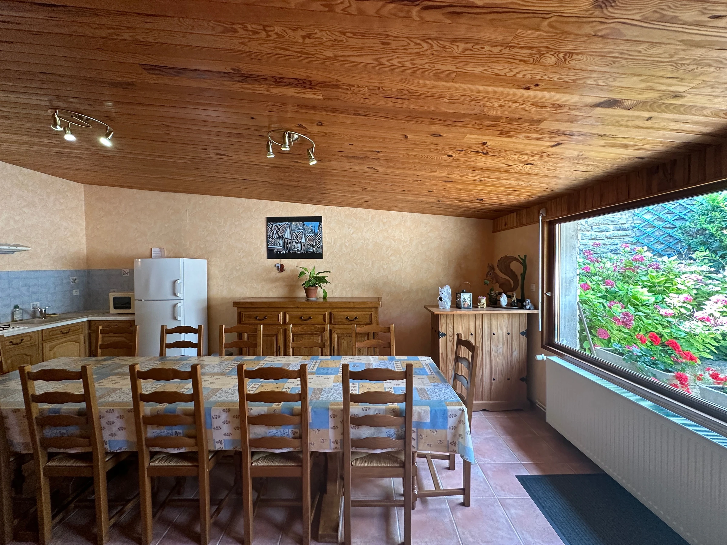 La maison d'hôtes et les chambres sont non fumeurs. Possibilité de privatiser les 5 chambres, la salle, le salon en gîte 12 personnes maxi (le week end du vendredi 14H au dimanche 10H, ou en semaine, petits déjeuners compris) avec supplément ménage, se renseigner au [hidden]. Sortie autoroute : Beaune-Centre/Les Hospices 8 km. Au premier étage, chambre spacieuse pour 3 personnes dotée d'un lit 140 cm et d'un lit 90 cm. Couchage supplémentaire possible sur demande. Petit coin salon. Salle d'eau et WC privés. Accès WIFI.