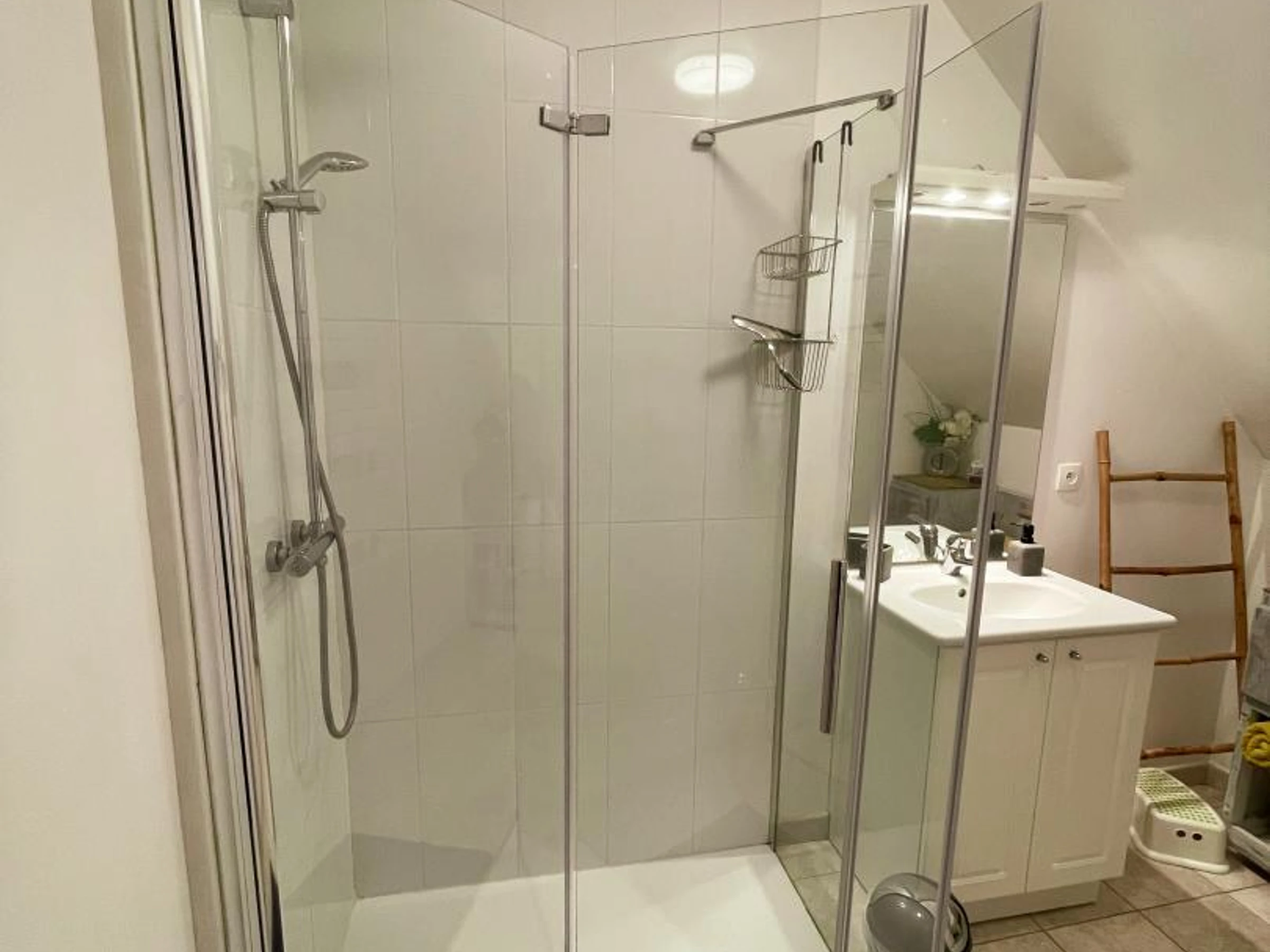 Au 1er étage : accès par un escalier un peu raide (voir photo). Salle d'eau avec douche et lavabo. Chambre 1 avec lit simple (90x190). Chambre 2 avec lit double (140x190). Chambre 3 avec lit double (140x190). WC.