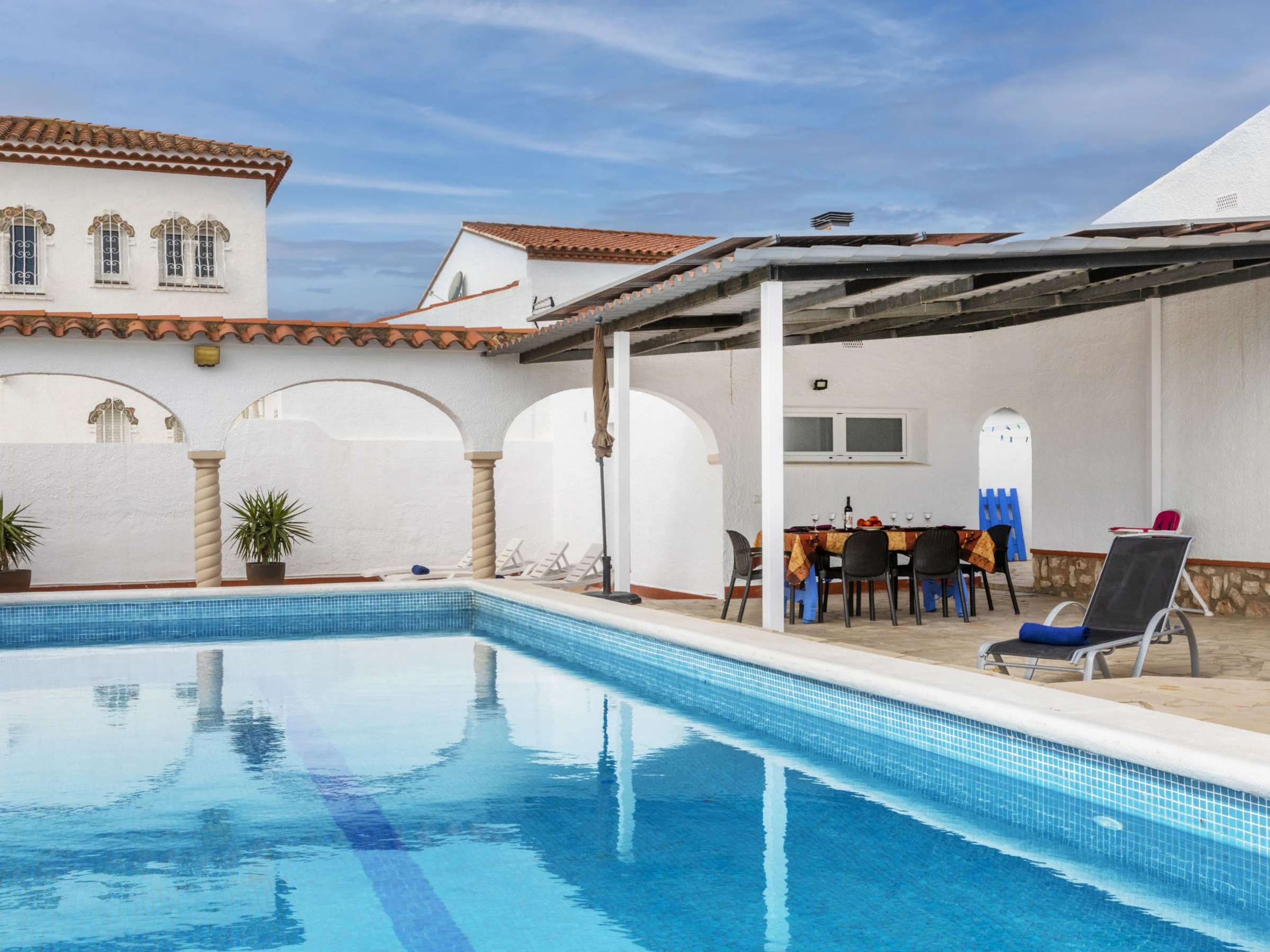 Miami Playa: Villa accueillante, confortable "Junqué-Verdure". Dans la localité, à 250 m du centre de Miami-Platja, à 500 m de la mer, à 500 m de la plage. A usage privé: jardin entretenu (clôturé), piscine rectangulaire (10 x 5 m, profondeur 50 - 200 cm, disponibilité saisonnière: [hidden] - [hidden] Jardinet, pergola, meubles de jardin, entretien de la piscine par le propriétaire/jardinier. Place de parking près de la maison. Supermarché 500 m, restaurant 1.3 km, boulangerie 500 m, arrêt de bus 650 m, gare ferroviaire "Hospitalet" 1.5 km, crique pour baignade 500 m. Port plaisance 900 m, terrain de golf (13 trous) 3 km, tennis 800 m. Attractions à proximité: parque Portaventura 28 km, parque acuático Aquopolis 31 km, parque Natural del Delta del Ebro 53 km, Tarragona 37 km, Reus 30 km, Barcelona 132 km. Le propriétaire n'accepte pas les groupes de jeunes.