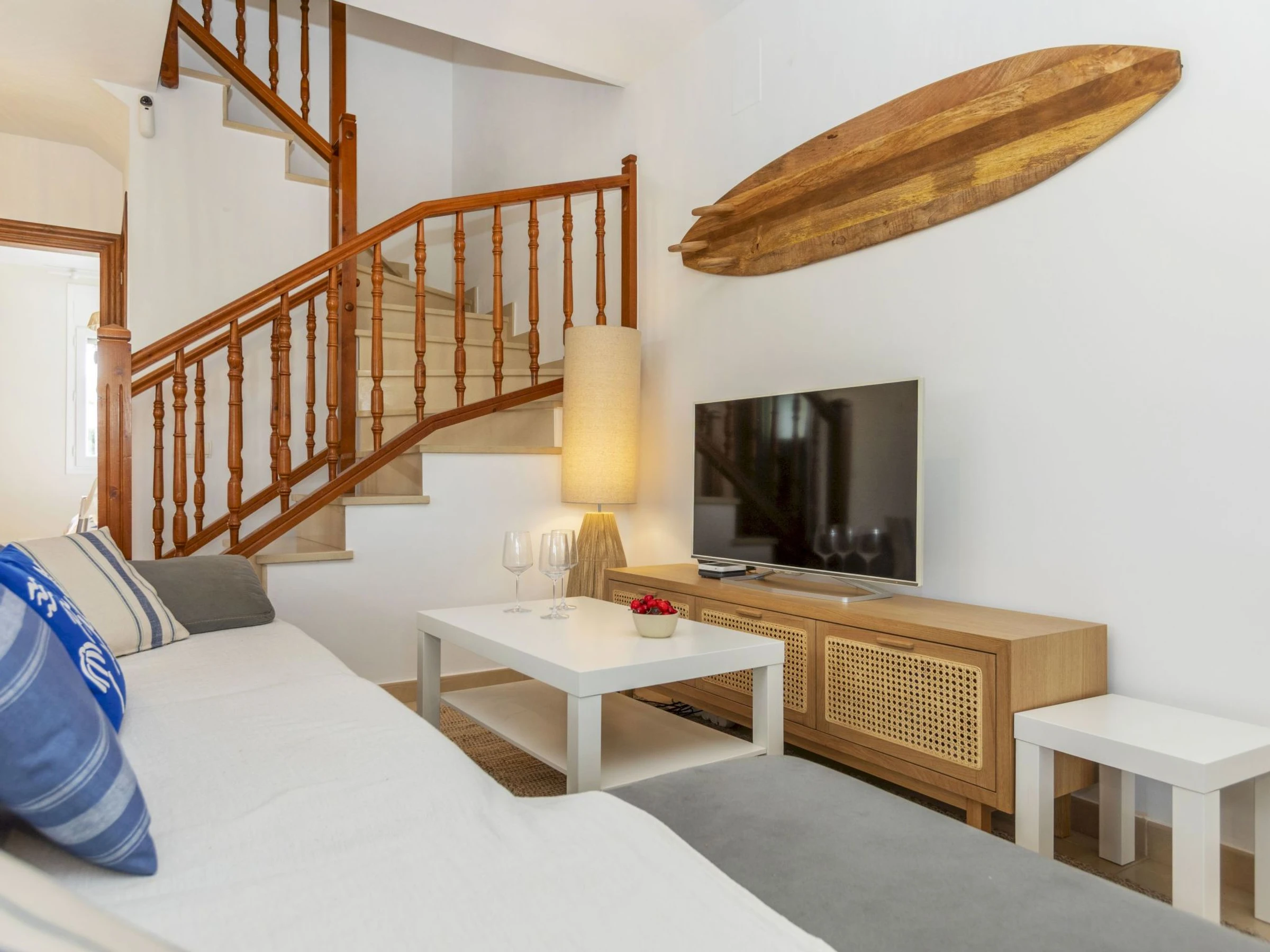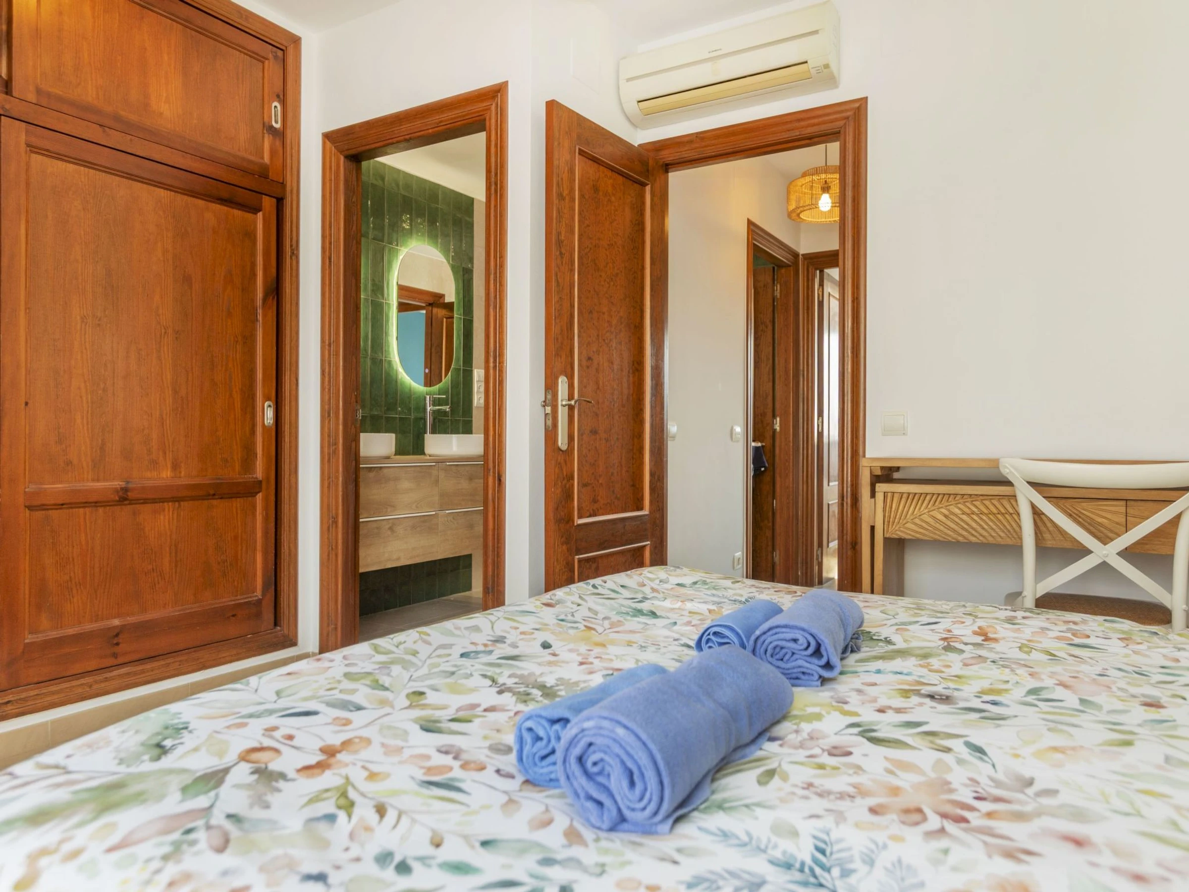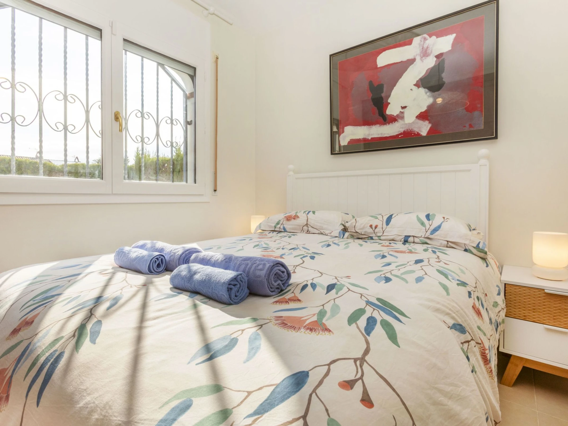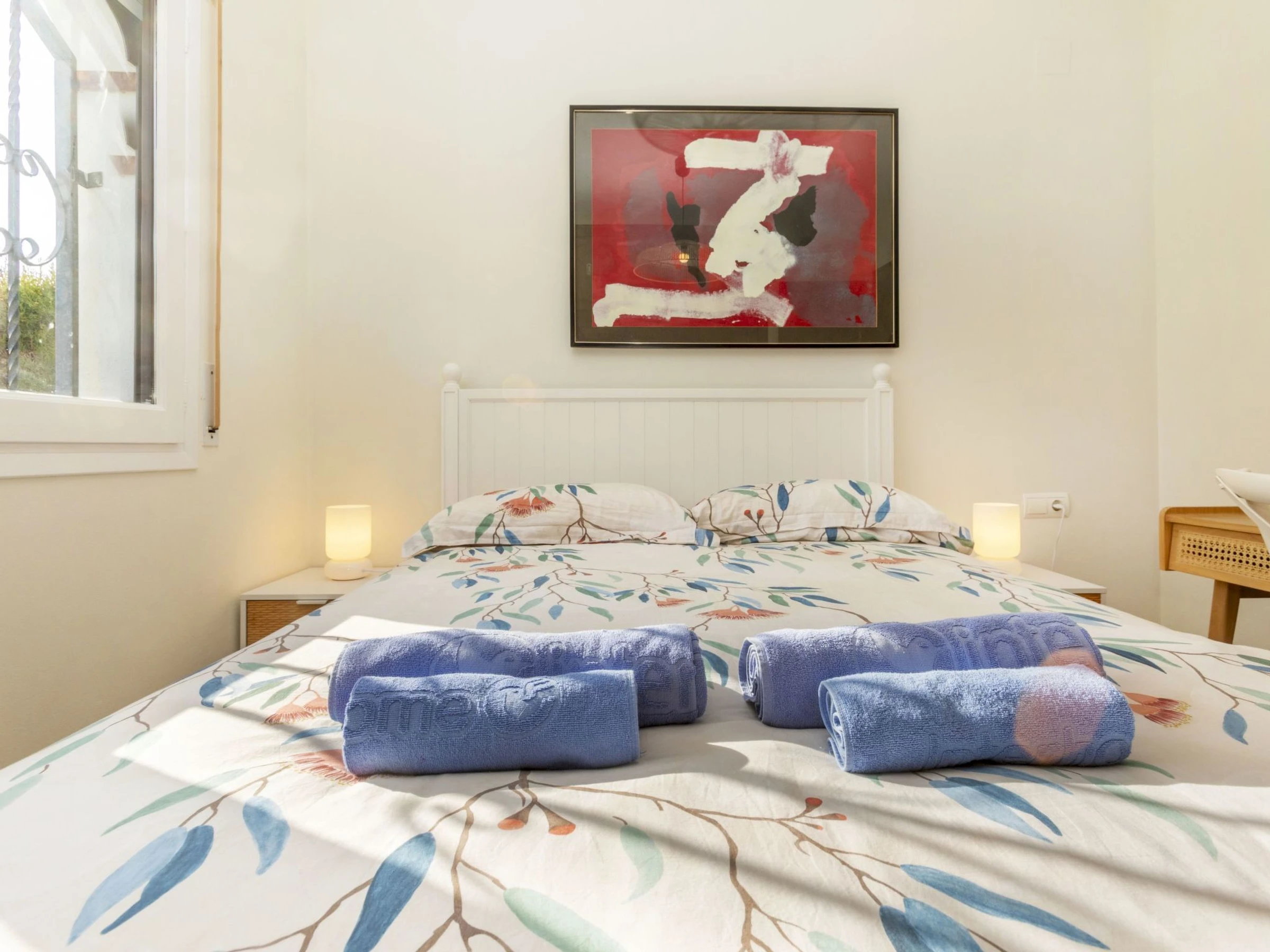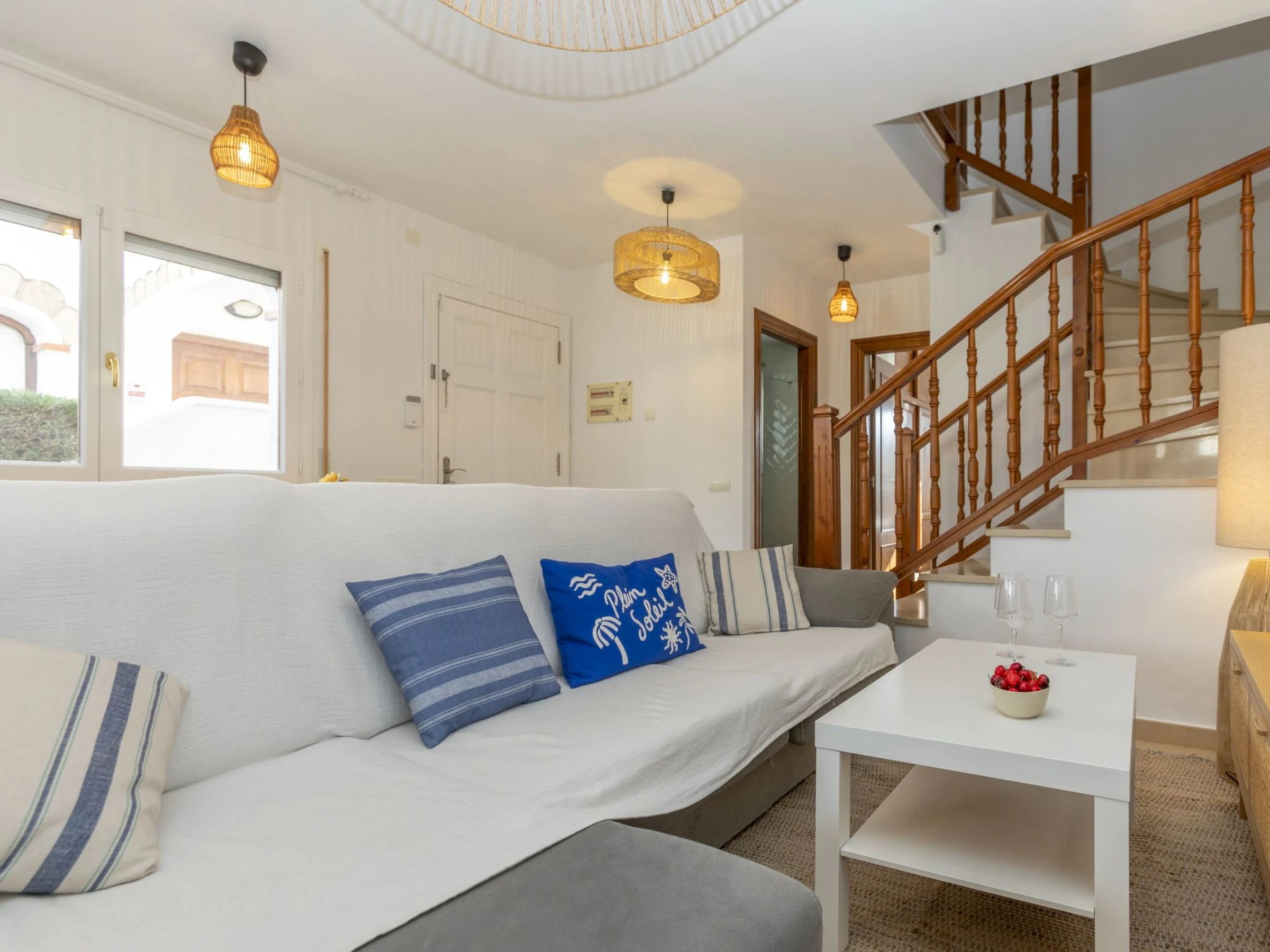 "Magraners", maison jumelée 4 pièces 90 m2. Rénovée en 2025, aménagement fonctionnel et plaisant: séjour/salle à manger avec Télévision numérique et écran plat. Sortie sur le jardin. 1 chambre avec 1 grand-lit (140 cm, longueur 190 cm). Cuisine (lave-vaisselle, 4 plaques vitrocéramiques, grille-pain, bouilloire électrique, cafetière électrique). Douche/WC. Air-conditionné, chauffage à air chaud, chauffe eau (100 litres). À l'étage supérieur: 1 chambre avec 1 grand-lit (160 cm, longueur 190 cm), bain/WC. 1 chambre avec 2 lits (90 cm, longueur 190 cm). Jardinet. Barbecue. Vue sur la localité. A disposition: lave-linge, fer à repasser, chaise haute pour enfant, lit bébé, sèche-cheveux. Internet (Connexion WIFI, gratuit). Veuillez noter: maison non-fumeur. [hidden]