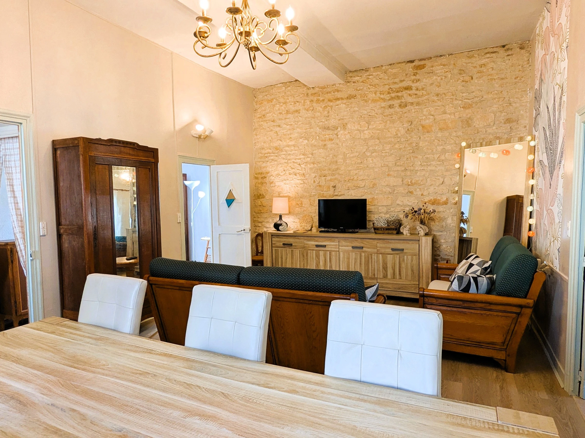 Gîte situé à 15 km d'Auxerre (ville d'art et d'histoire) Maison dans un ensemble de bâtiments. Rez de chaussée: cuisine, séjour, 1 chambre (1 lit 140x190), salle de bain (baignoire), WC indépendant. Équipement bébé : chaise haute, lit bébé et pot.