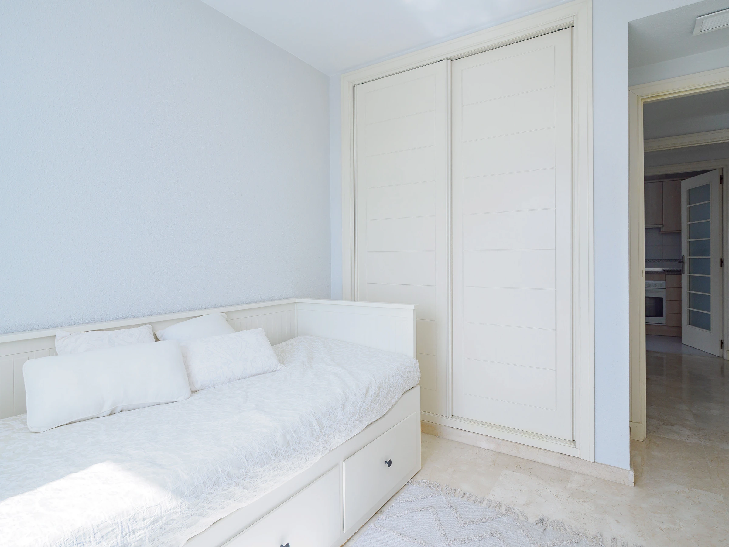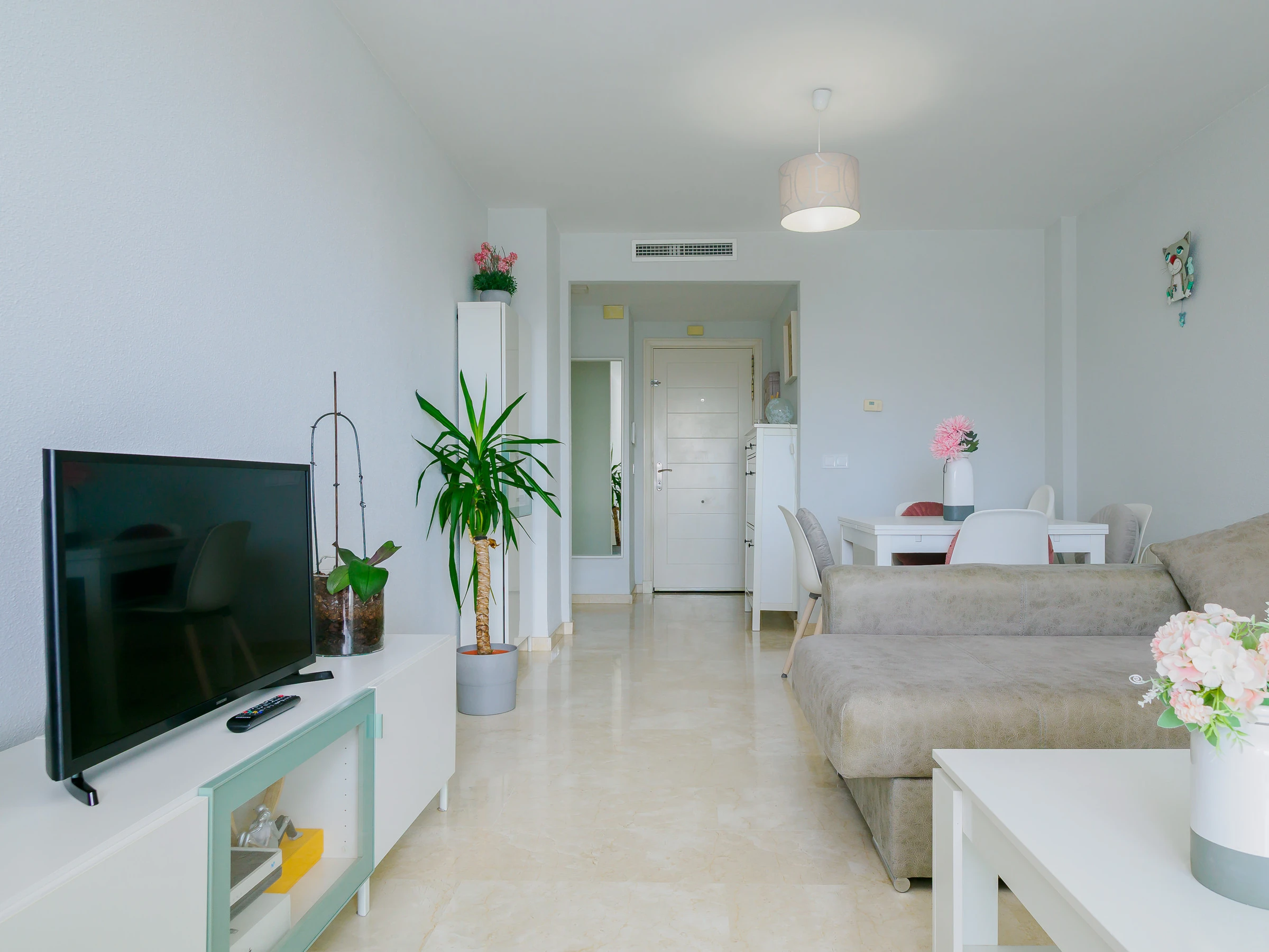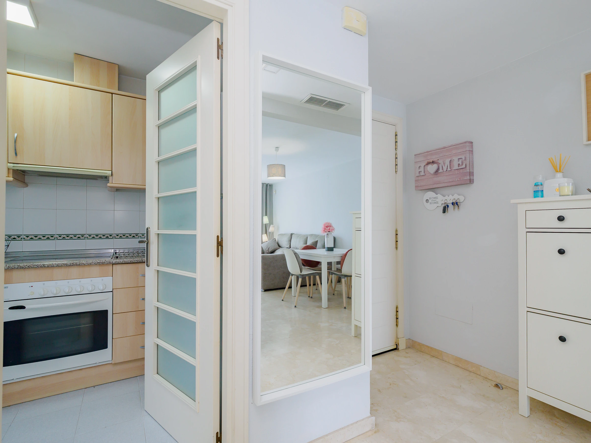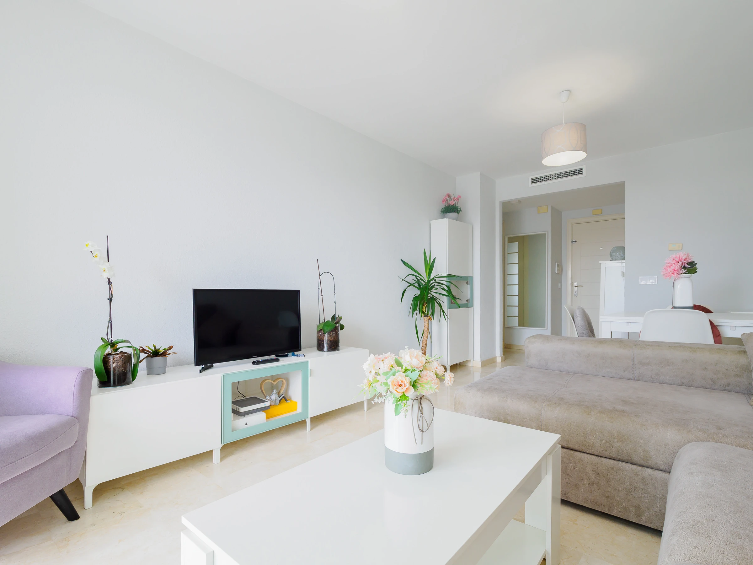 L'appartement dispose d'un grand salon-salle à manger, d'une cuisine indépendante entièrement équipée avec une zone de buanderie, et de la climatisation dans toutes les pièces pour votre confort maximal. Idéal pour 4 personnes, il comprend deux chambres : une chambre principale avec un lit de matrimonial et une salle de bain attenante, et une deuxième chambre avec deux lits individuels. De plus, il dispose de deux salles de bains complètes avec baignoire, parfaites pour les familles ou les petits groupes.