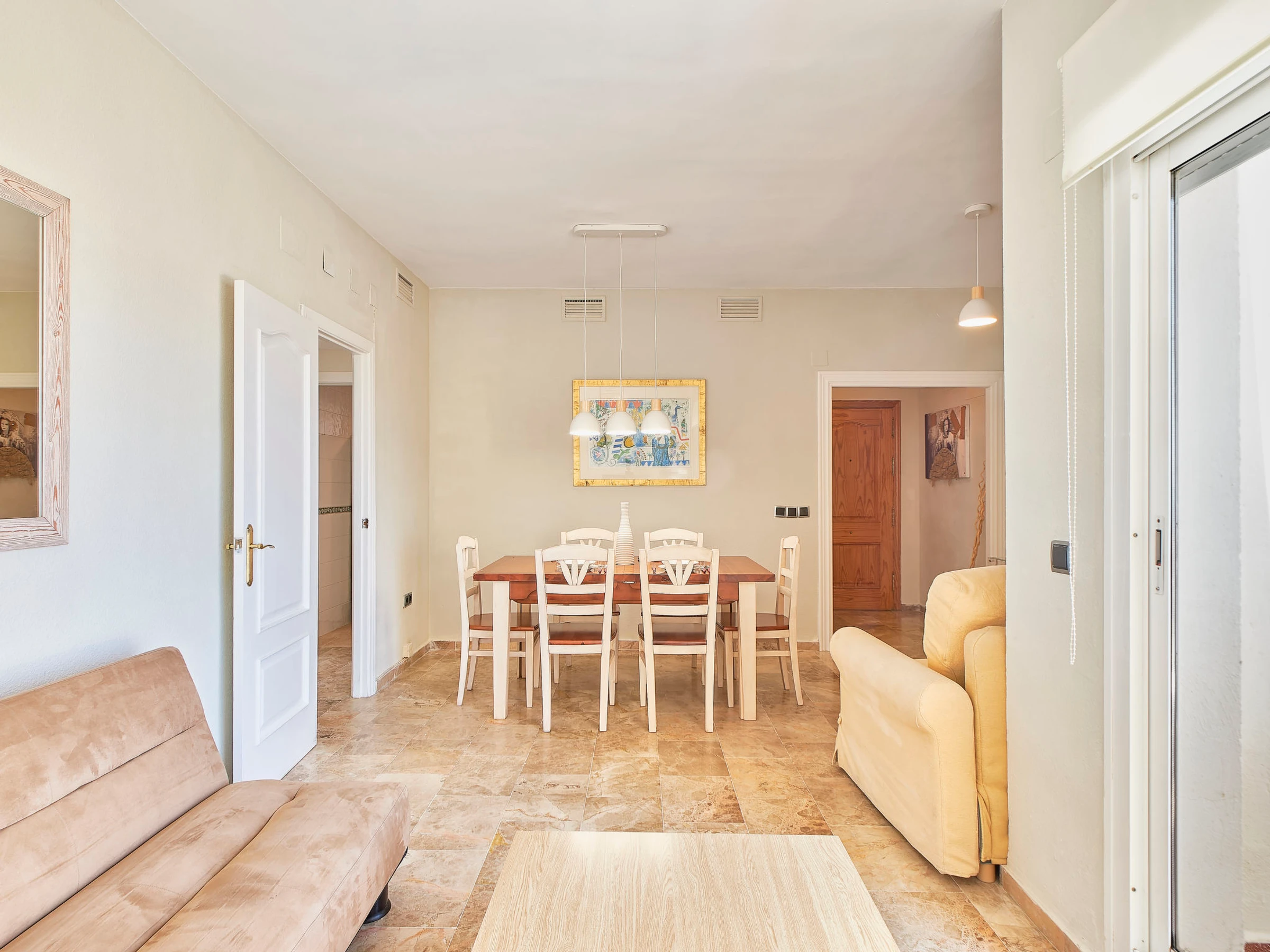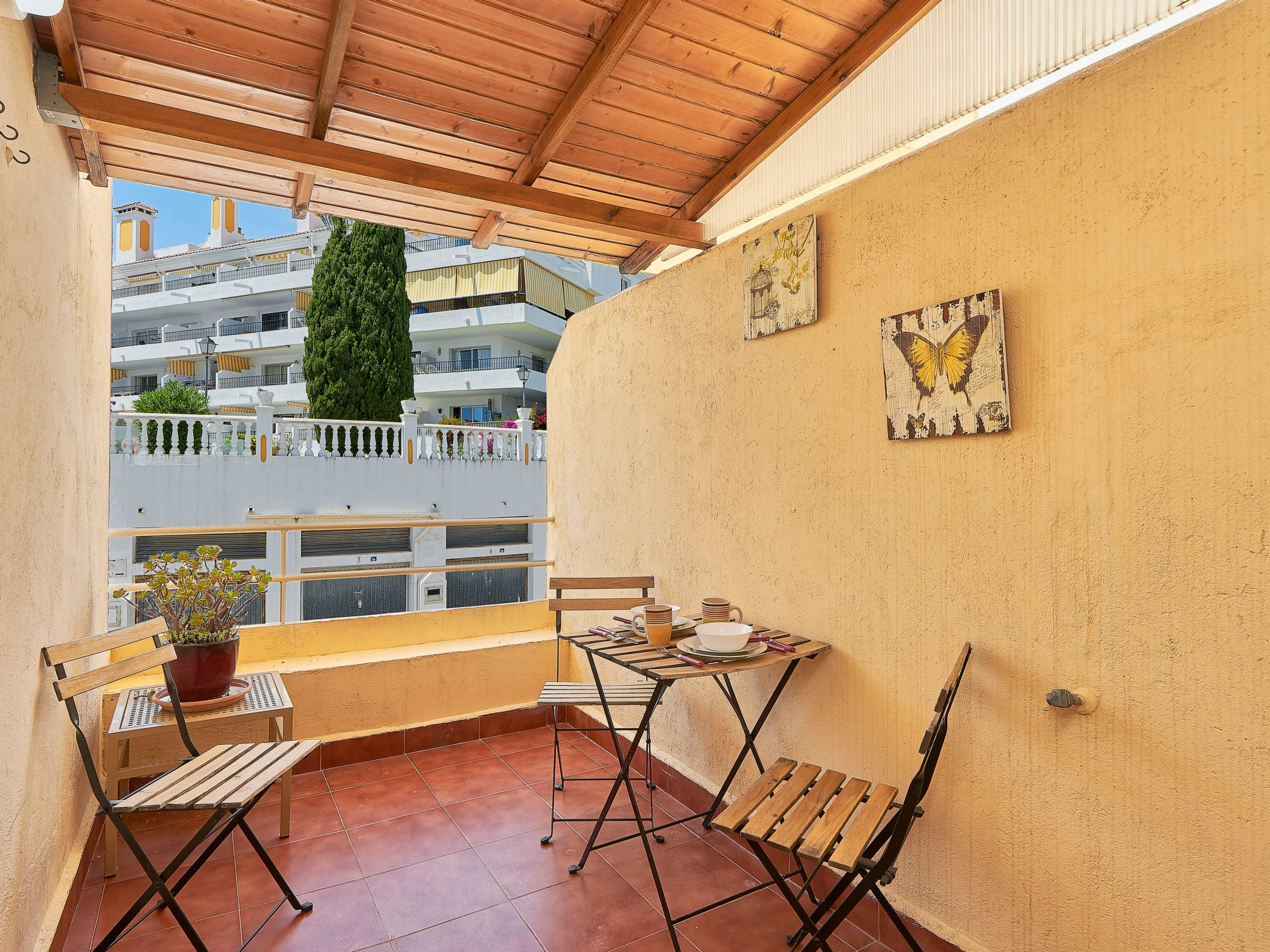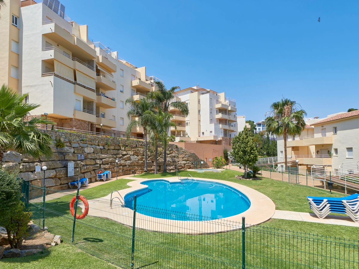 Riviera del sol: Petite résidence "Refugio de Riviera". À 800 m de la mer, dans une impasse. En commun: jardin 200 m2 avec pelouse, piscine (profondeur 100 - 220 cm, disponibilité saisonnière: [hidden] - [hidden] horaires d'ouverture de la piscine: 10:00-22:00). Douche/WC dans l'espace piscine, bassin pour les enfants. Infrastructures de la Maison: ascenseur. Place de parking. Magasins, supermarché 800 m, restaurant 200 m, arrêt du bus, plage de sable 800 m. Tennis 400 m.