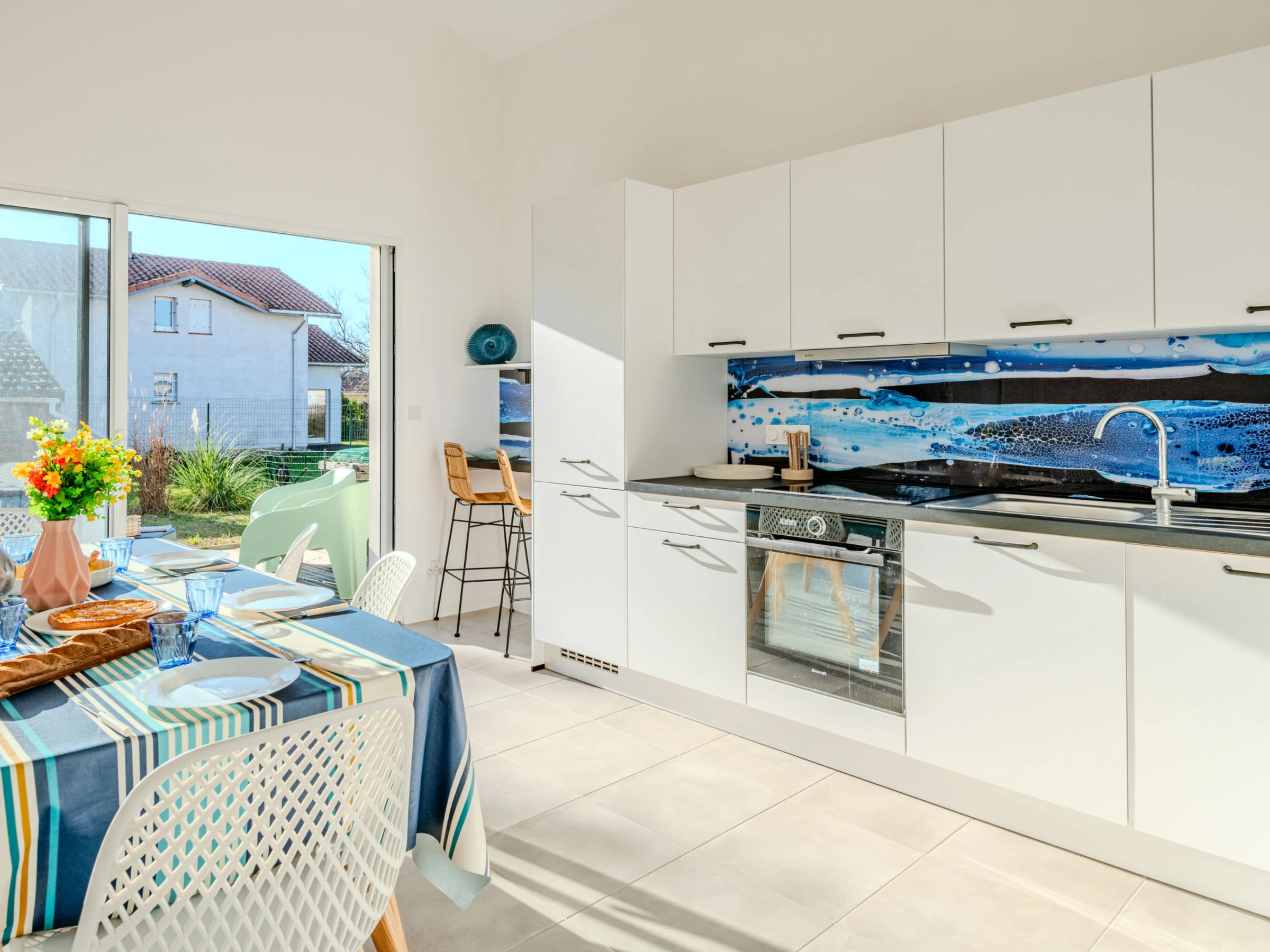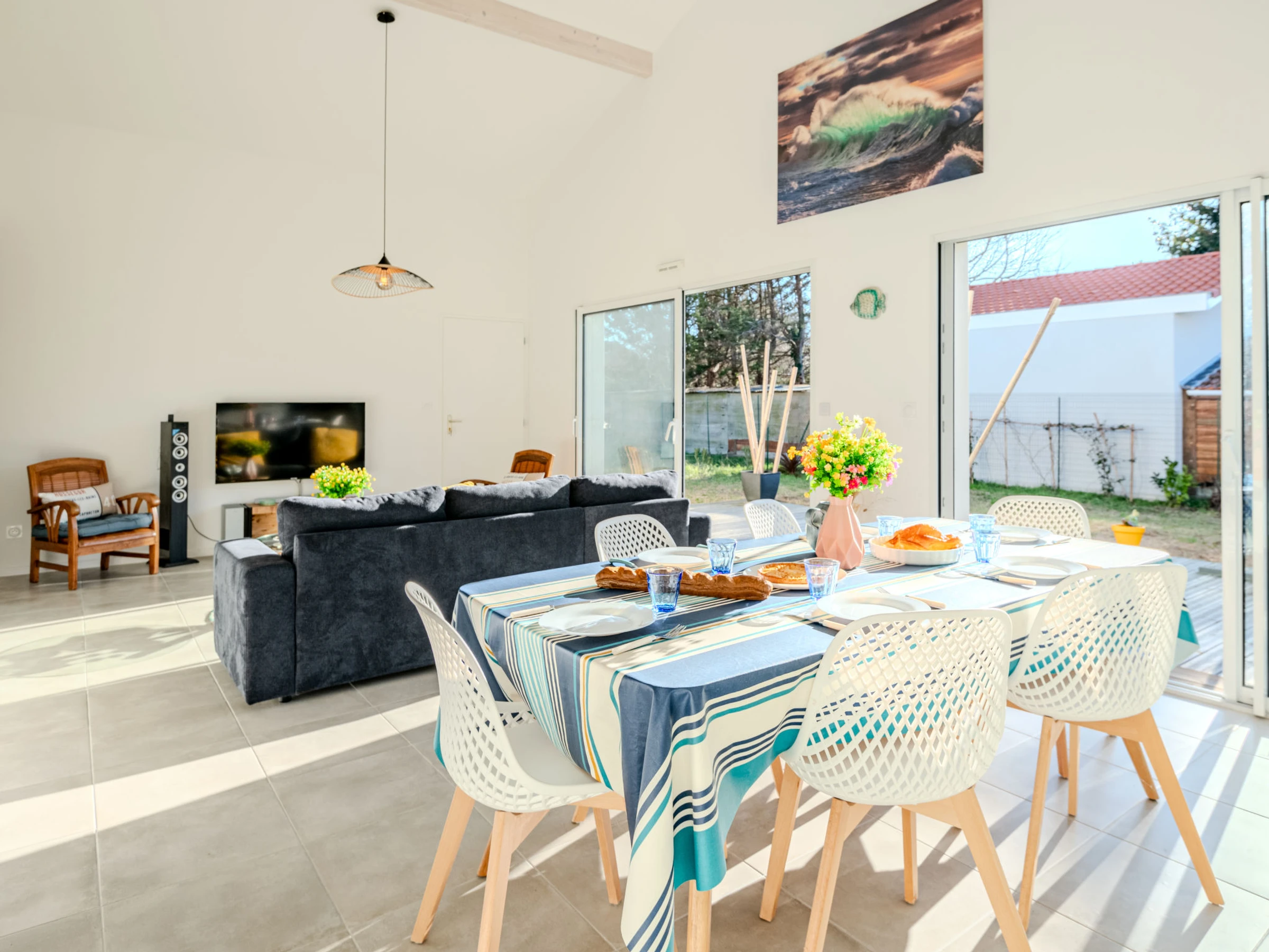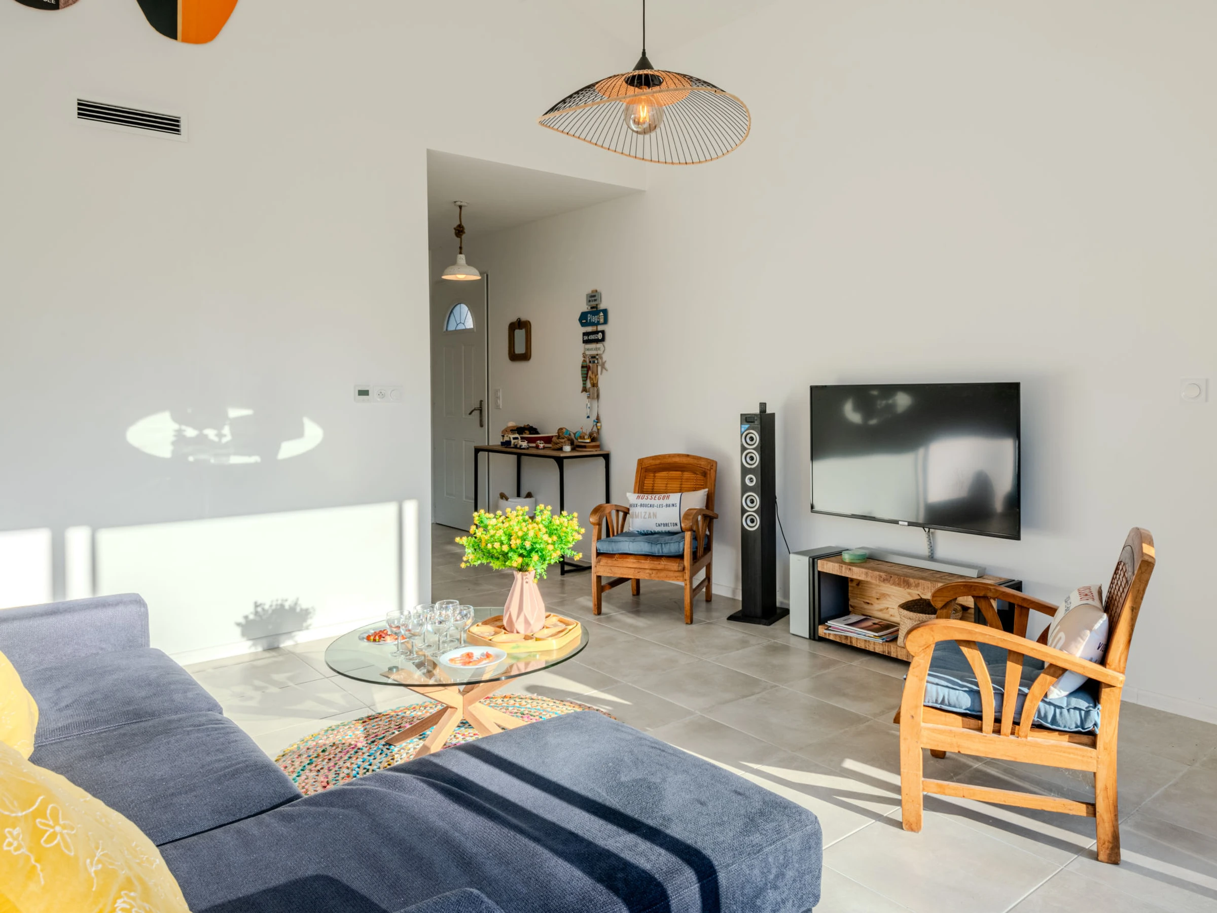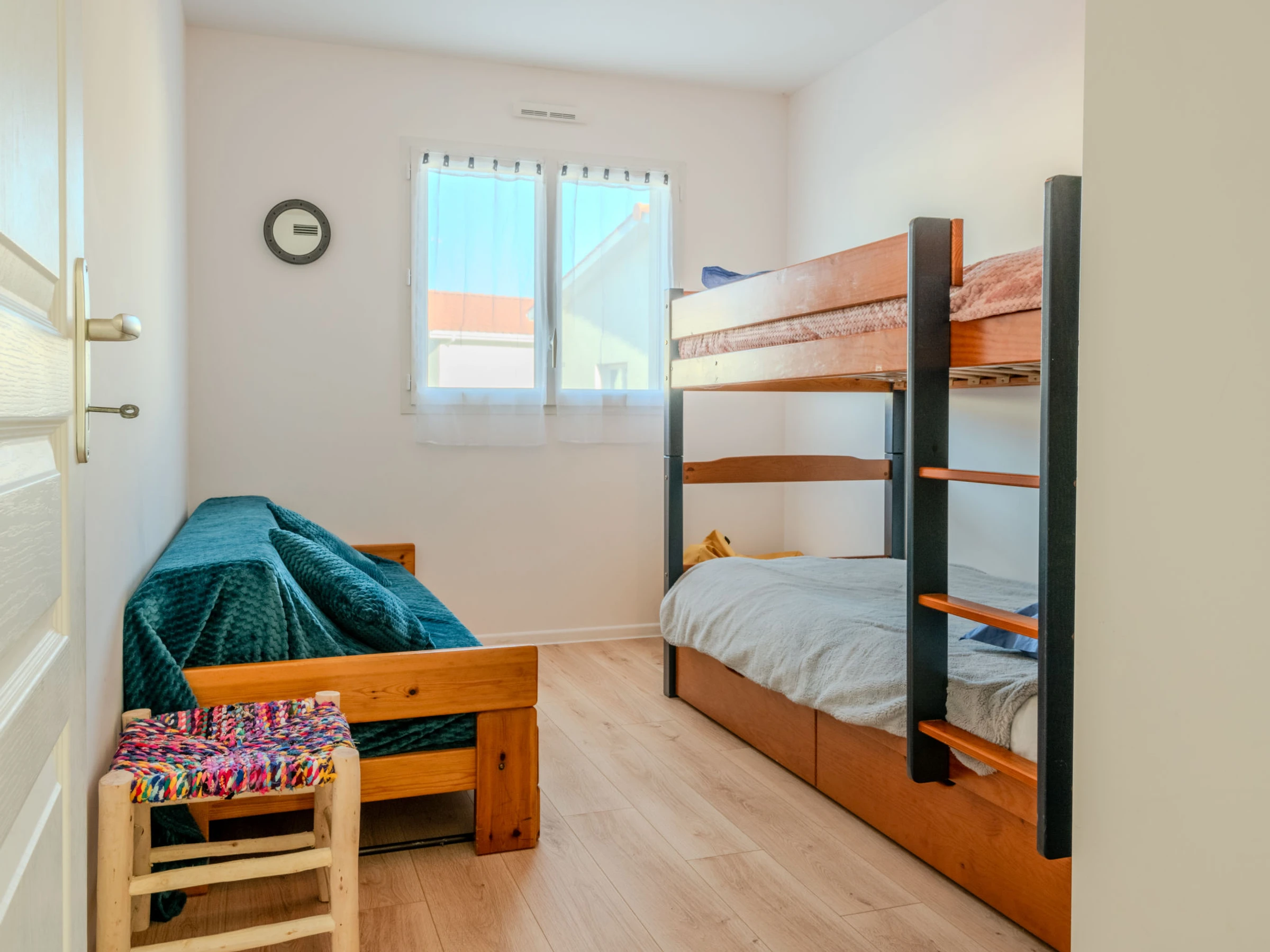 Maison 4 pièces 90 m2. Aménagement agréable et moderne: séjour/salle à manger avec TV (écran plat), air-conditionné. 1 chambre avec 1 x 2 lits superposés (90 cm, longueur 190 cm). 1 chambre avec 1 grand-lit (1 x 140 cm, longueur 200 cm). 1 chambre avec 1 grand-lit (1 x 160 cm, longueur 200 cm). Cuisine ouverte (four, lave-vaisselle, 1 plaques à induction, 3 feux, grille-pain, bouilloire électrique, micro-ondes, congélateur, cafetière électrique, Capsules pour machine à café (filtre et senseo) (NON INCLUSES)). Douche, WC séparé. Chauffage à air chaud. Sol en bois. Grande terrasse 30 m2, situation sud et situation ouest. Meubles de terrasse, barbecue. A disposition: lave-linge, fer à repasser, sèche-cheveux. Internet (Connexion WIFI, gratuit). Place de parking. Veuillez noter: logement non-fumeur. Maximum 1 animal/ chien autorisé. Détecteur de fumée. Annonce d'un particulier (art 155, IV du CGI).