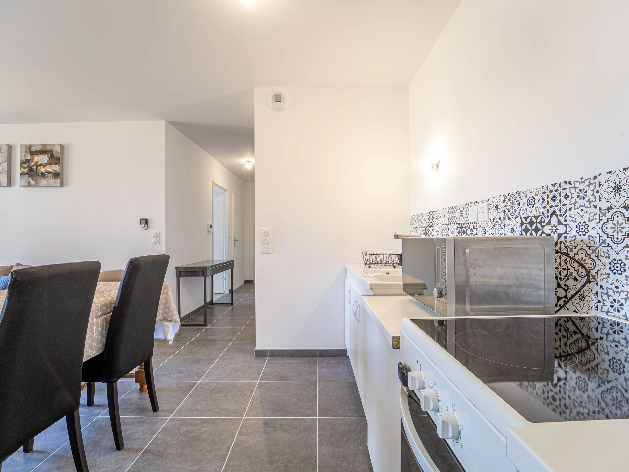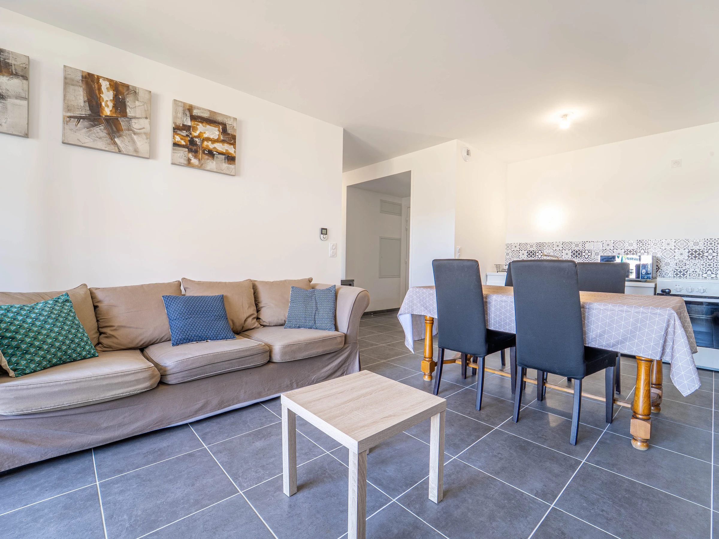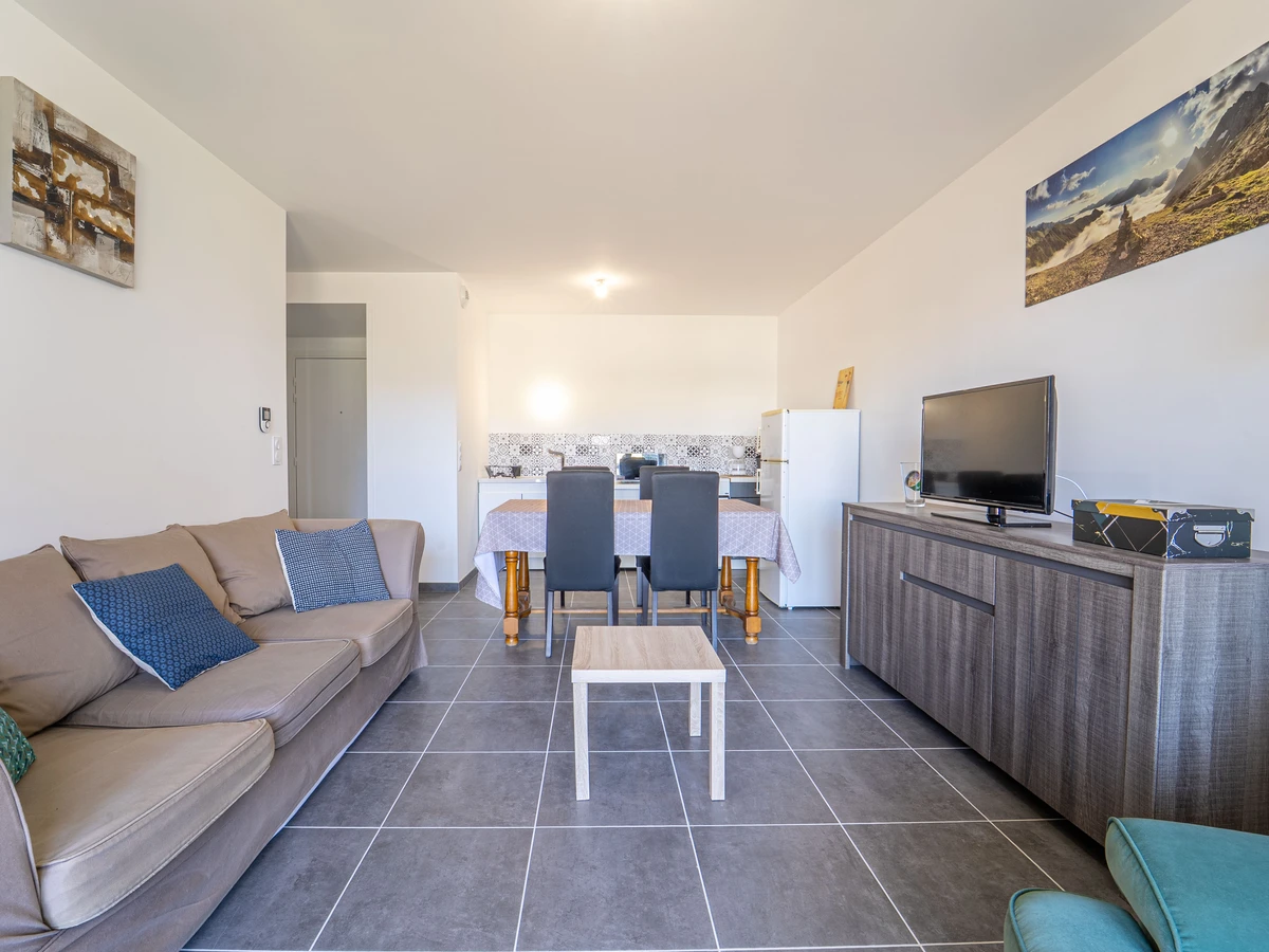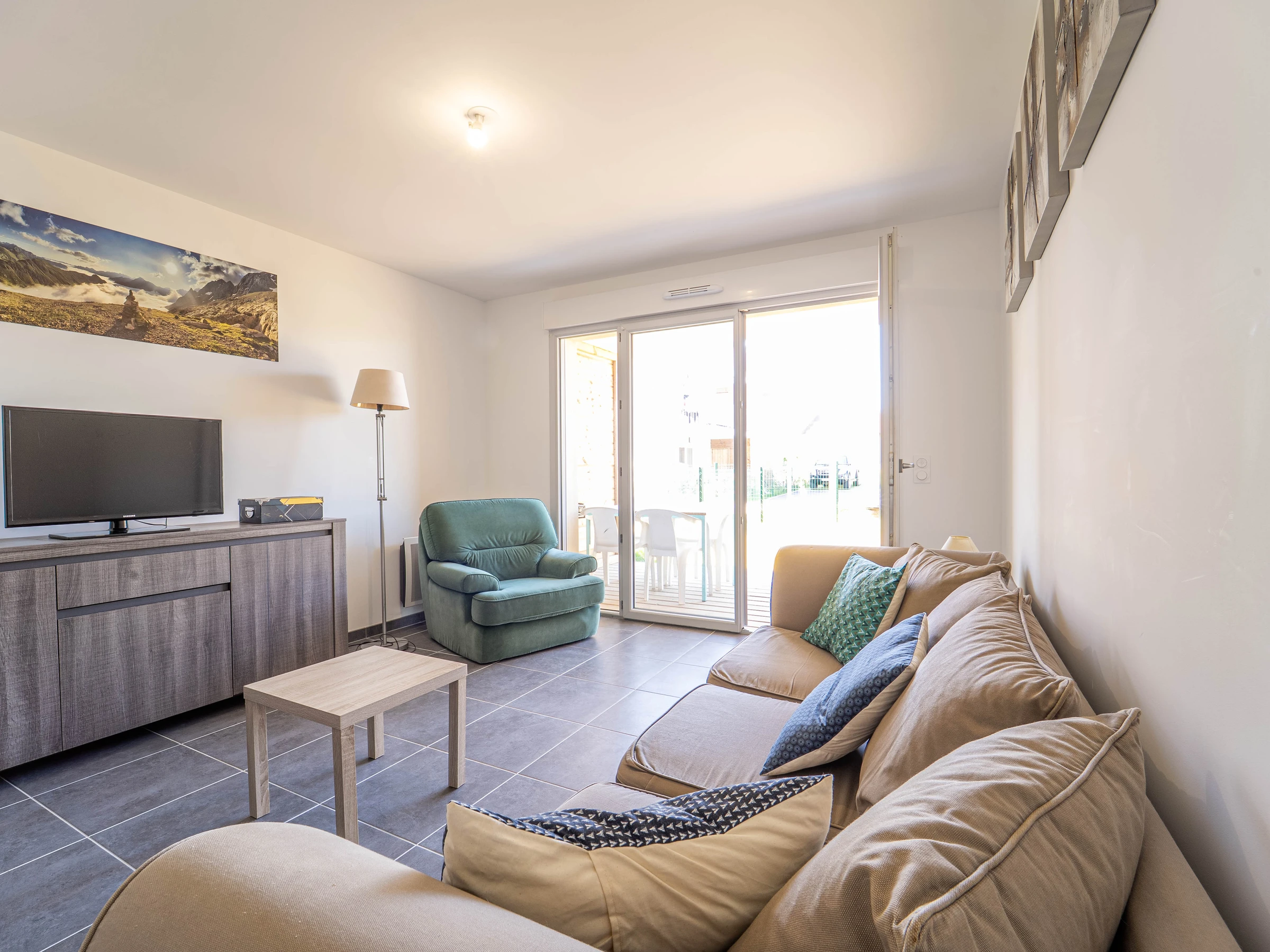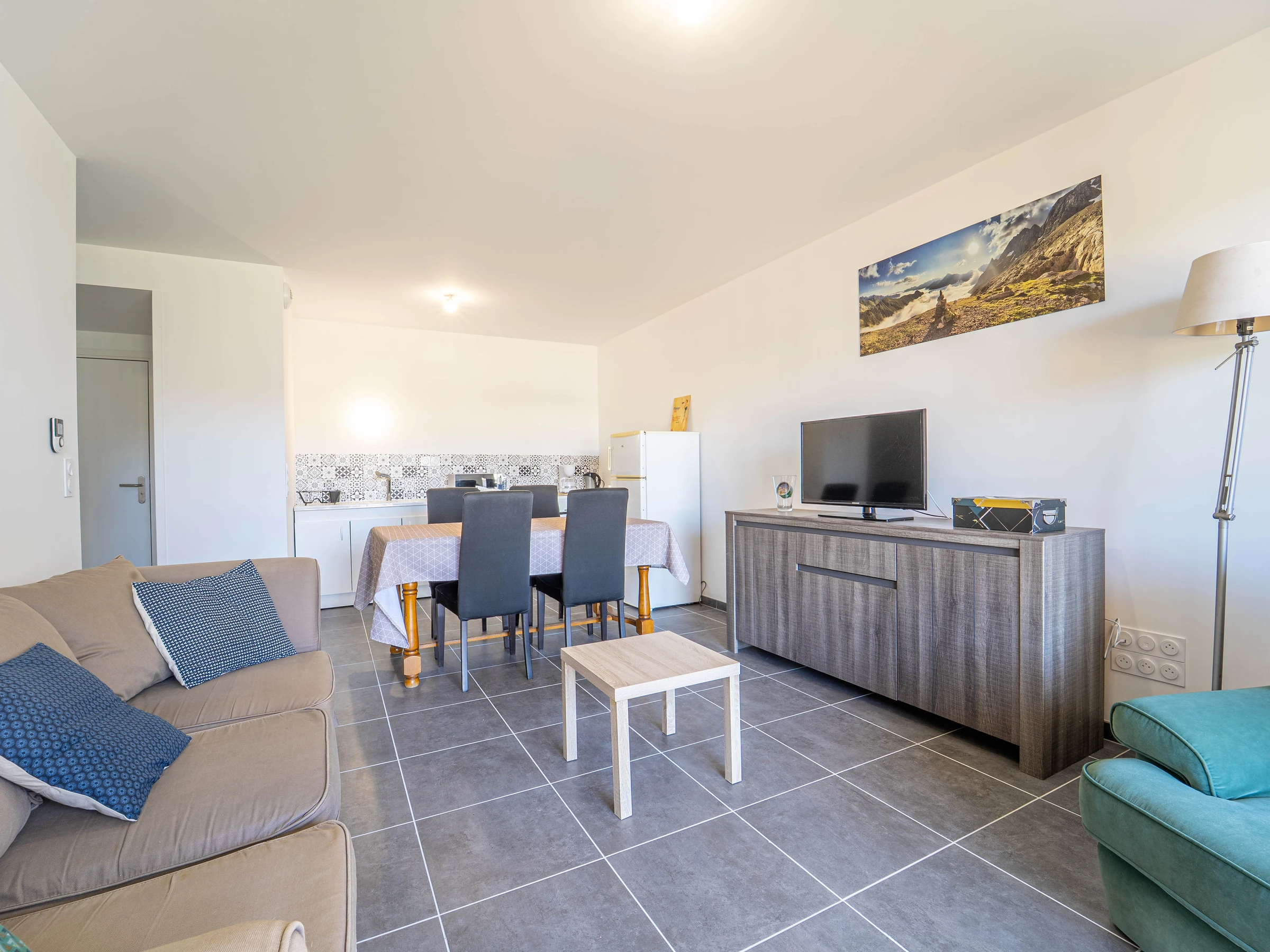 Le séjour, lumineux et agréable, est aménagé avec une télévision à écran plat pour vos moments de détente. La cuisine ouverte comprend un réfrigérateur-congélateur, un four, un micro-ondes, une cafetière filtre, une bouilloire, un grille-pain et tout le nécessaire pour cuisiner facilement.