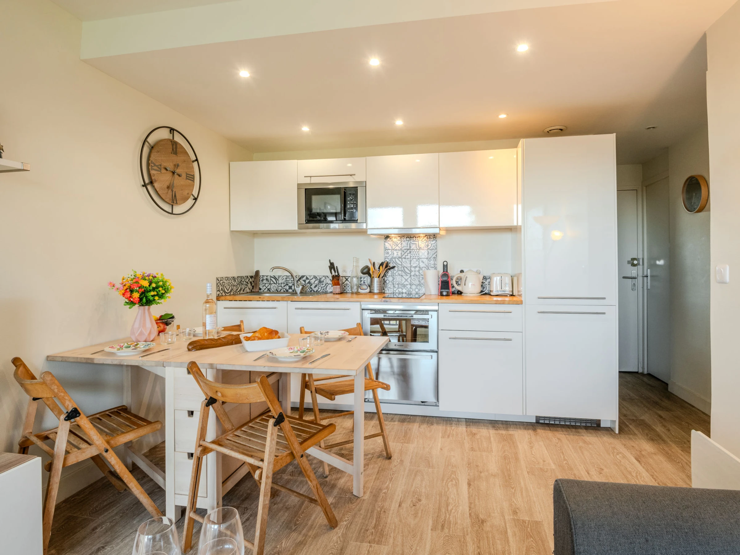 Apt 3 pièces 35 m2 au 2ème étage. Séjour/salle à manger avec TV (écran plat). 1 chambre avec 1 grand-lit (1 x 160 cm, longueur 190 cm). Cabine avec 1 x 2 lits superposés (90 cm, longueur 200 cm). Cuisine ouverte (four, lave-vaisselle, 1 plaques à induction, 2 feux, grille-pain, bouilloire électrique, micro-ondes, congélateur, cafetière électrique). Douche, WC séparé. Chauffage électrique. Petit balcon 3 m2. A disposition: lave-linge, fer à repasser, sèche-cheveux. Internet (Connexion WIFI, gratuit). Veuillez noter: logement non-fumeur. 1 animal/ chien de petite taille autorisé. Détecteur de fumée. Annonce d'un particulier (art 155, IV du CGI).