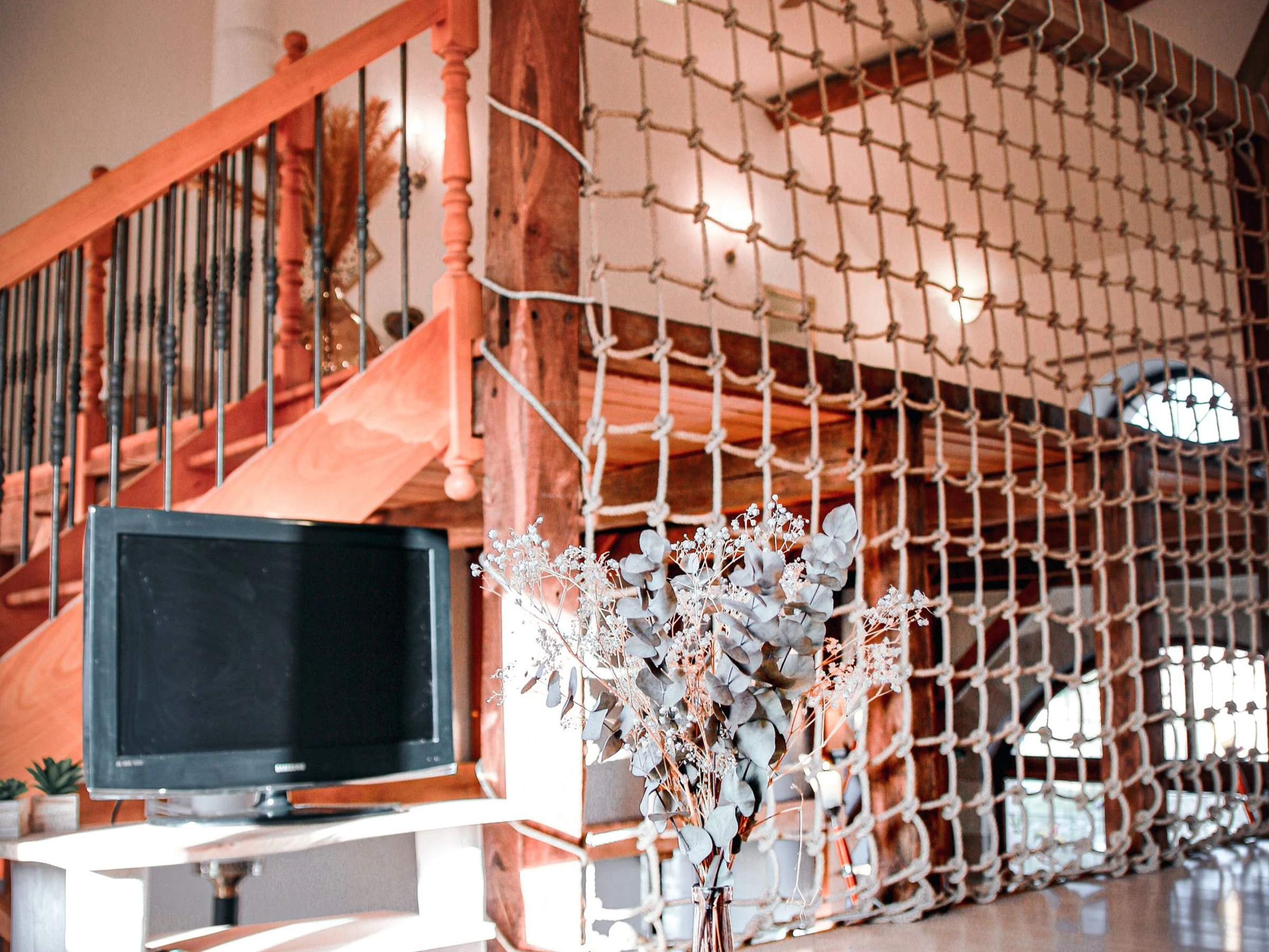 * Espace salon avec télévision et canapé