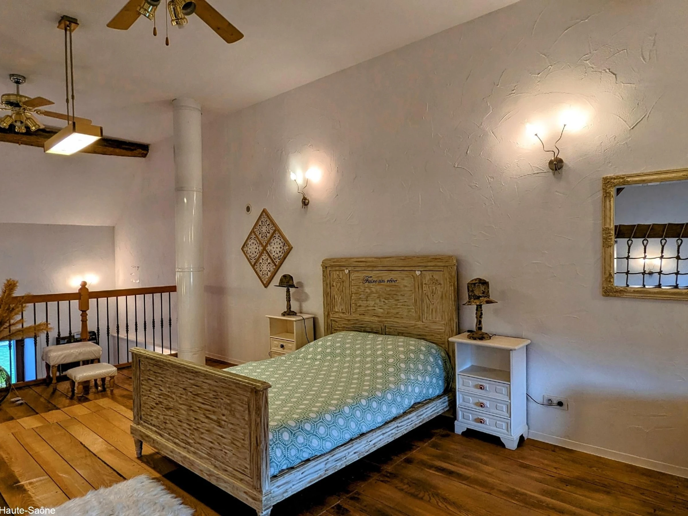 * Deux espaces nuits avec un lit kingsize de 160x200 et un 140x200. Dressing et armoires dans les chambres.