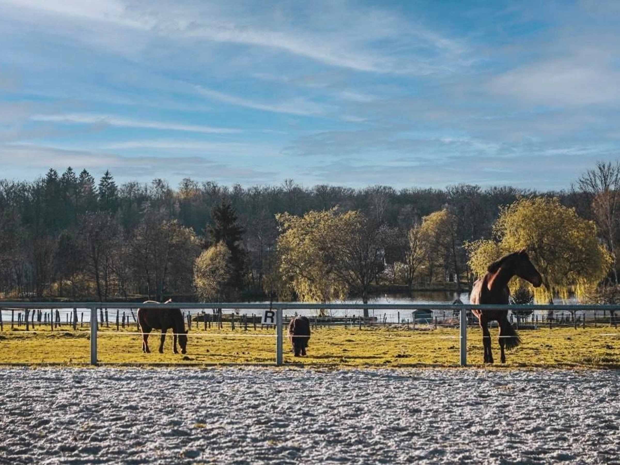 Terrasse et accès extérieur pour profiter du calme de la nature et d'une superbe vue sur les prés des chevaux.
