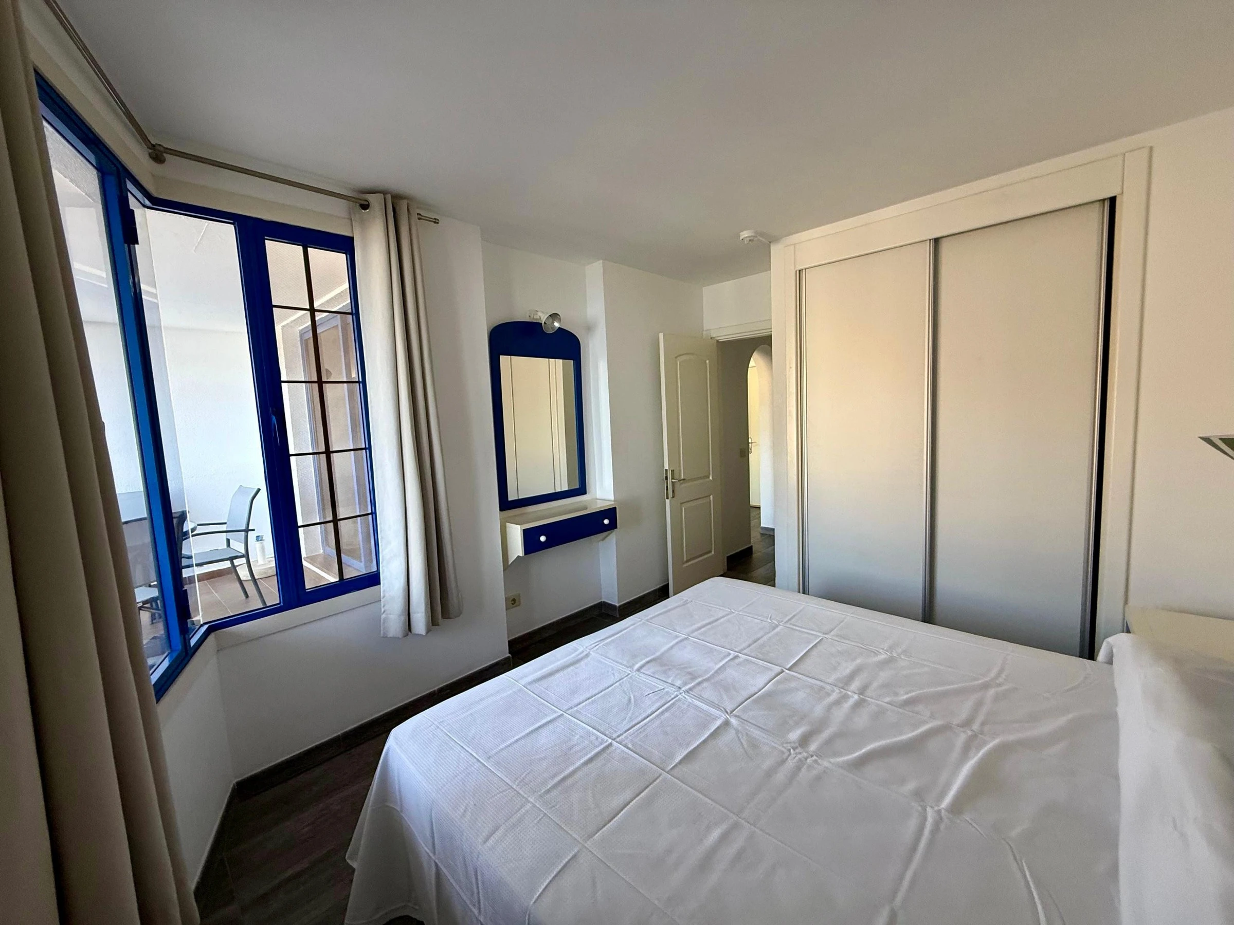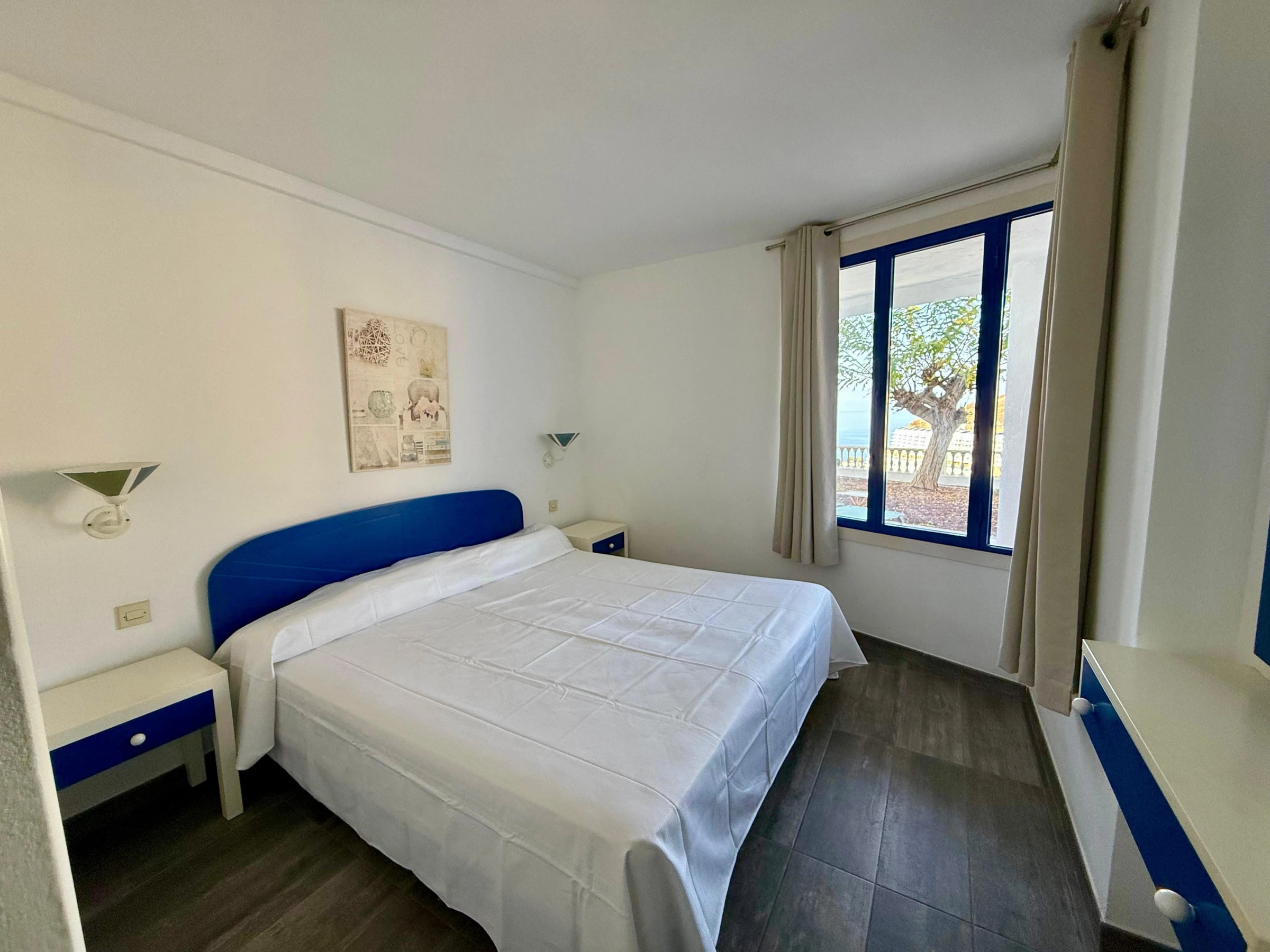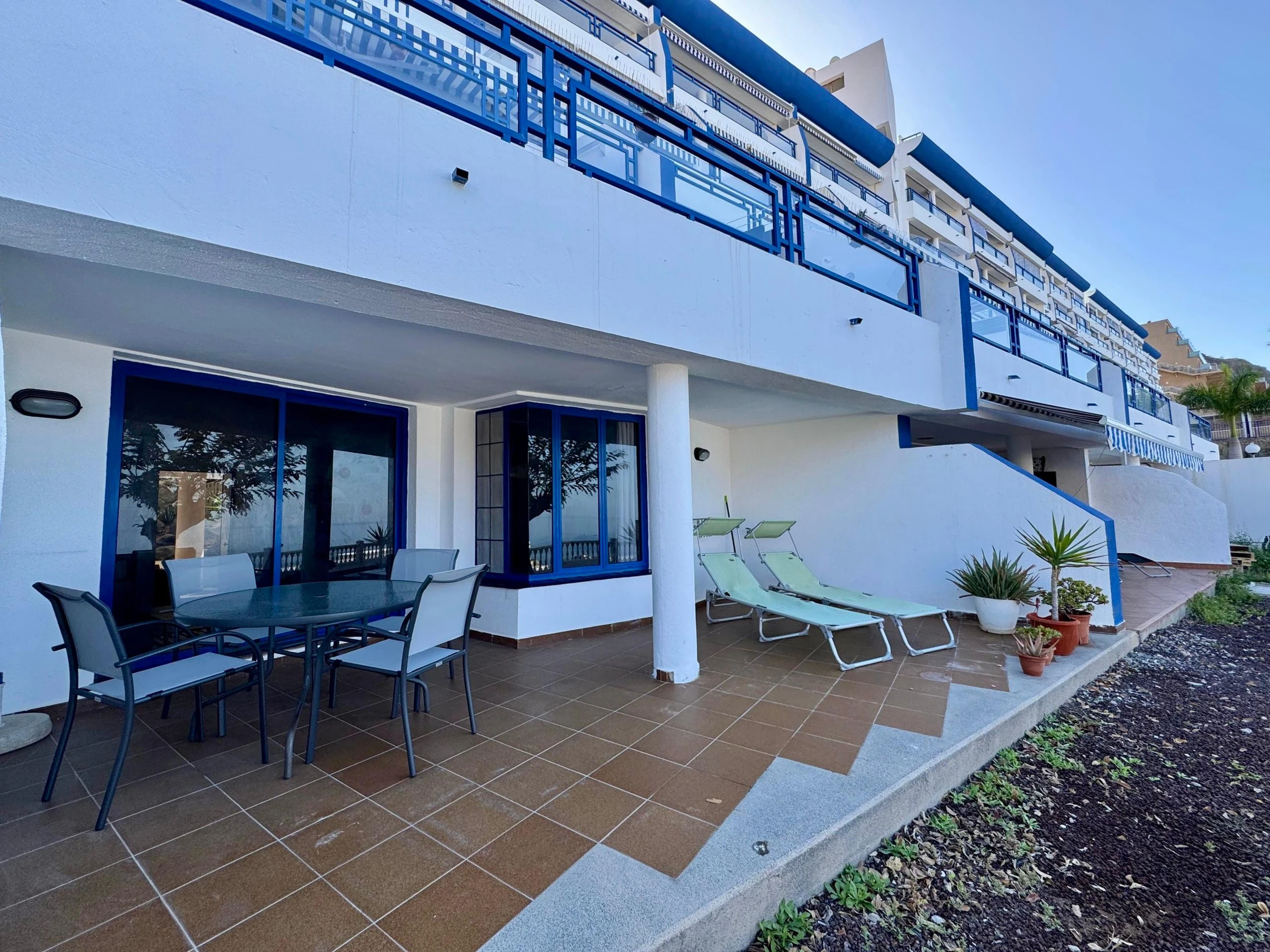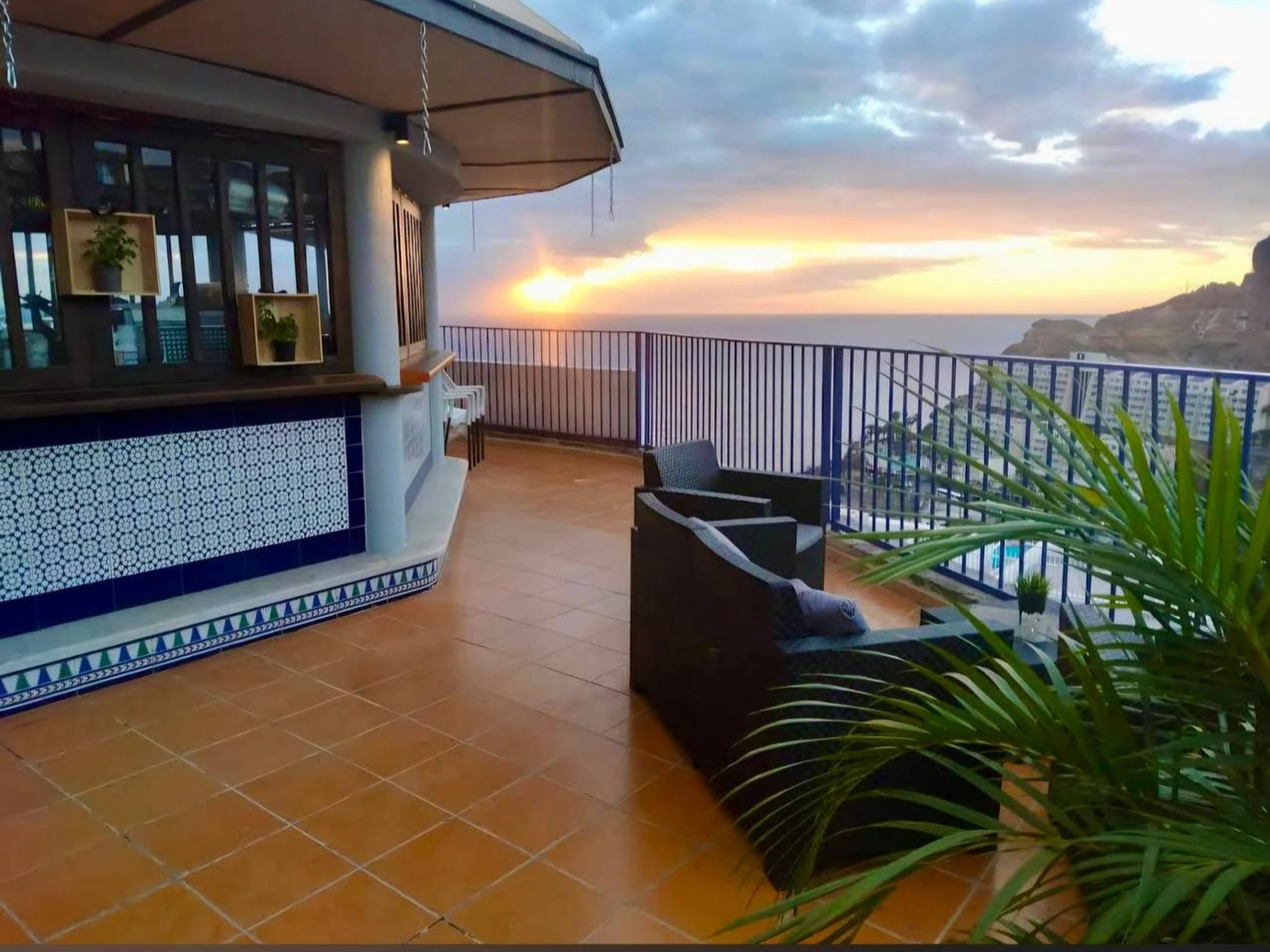 Dispose d'une grande terrasse avec de magnifiques vues, du mobilier de jardin, téléviseur, machine à laver, fer à repasser, accès internet (wifi), sèche-cheveux et une magnifique piscine communautaire avec vue sur la mer.