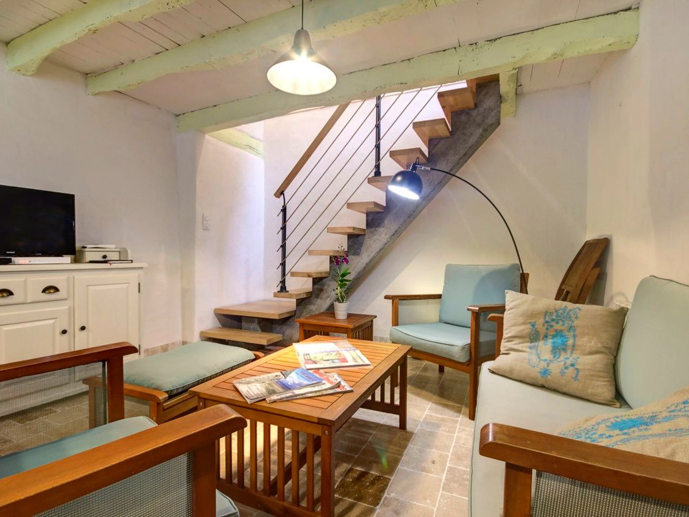RDC: salon/séjour (poêle à bois), cuisine aménagée, 1 chambre (lit 140x190), 1 petite chambre verrière fermée par rideau (lit 90x190), salle d'eau, WC indépendant.