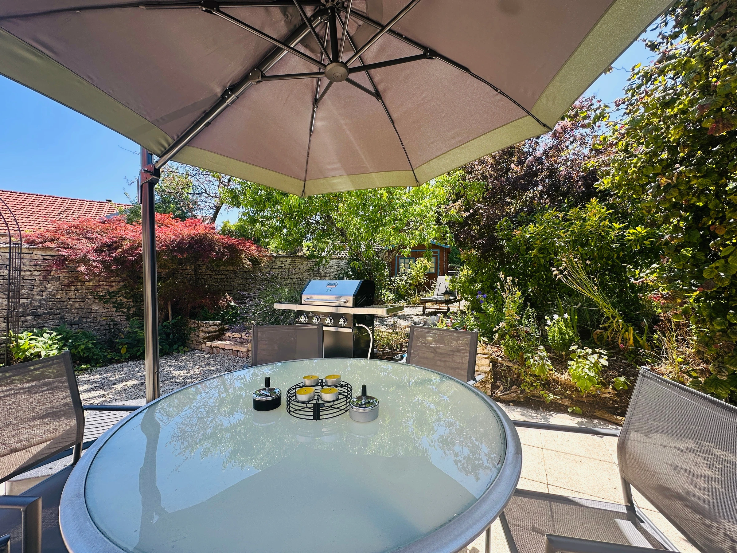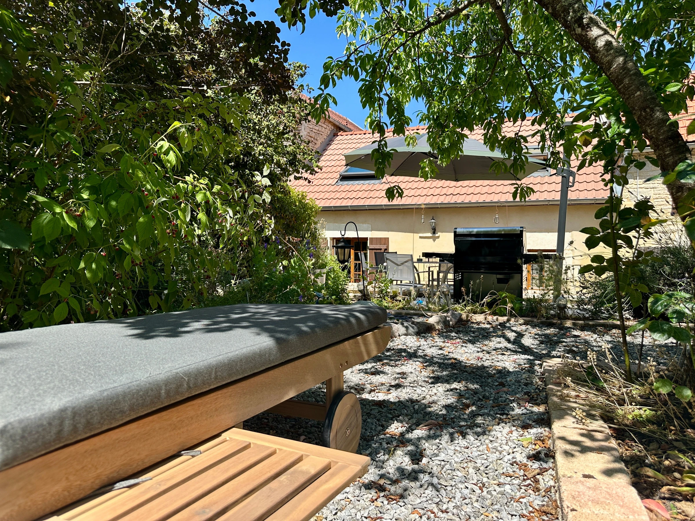 Le jardin clos, fleuri et champêtre, dispose de mobilier de jardin, de bains de soleil (x2) et d’un barbecue à gaz. Stationnement aisé à 100 mètres de la maison. Local sécurisé pour vélos disponible sur demande.
