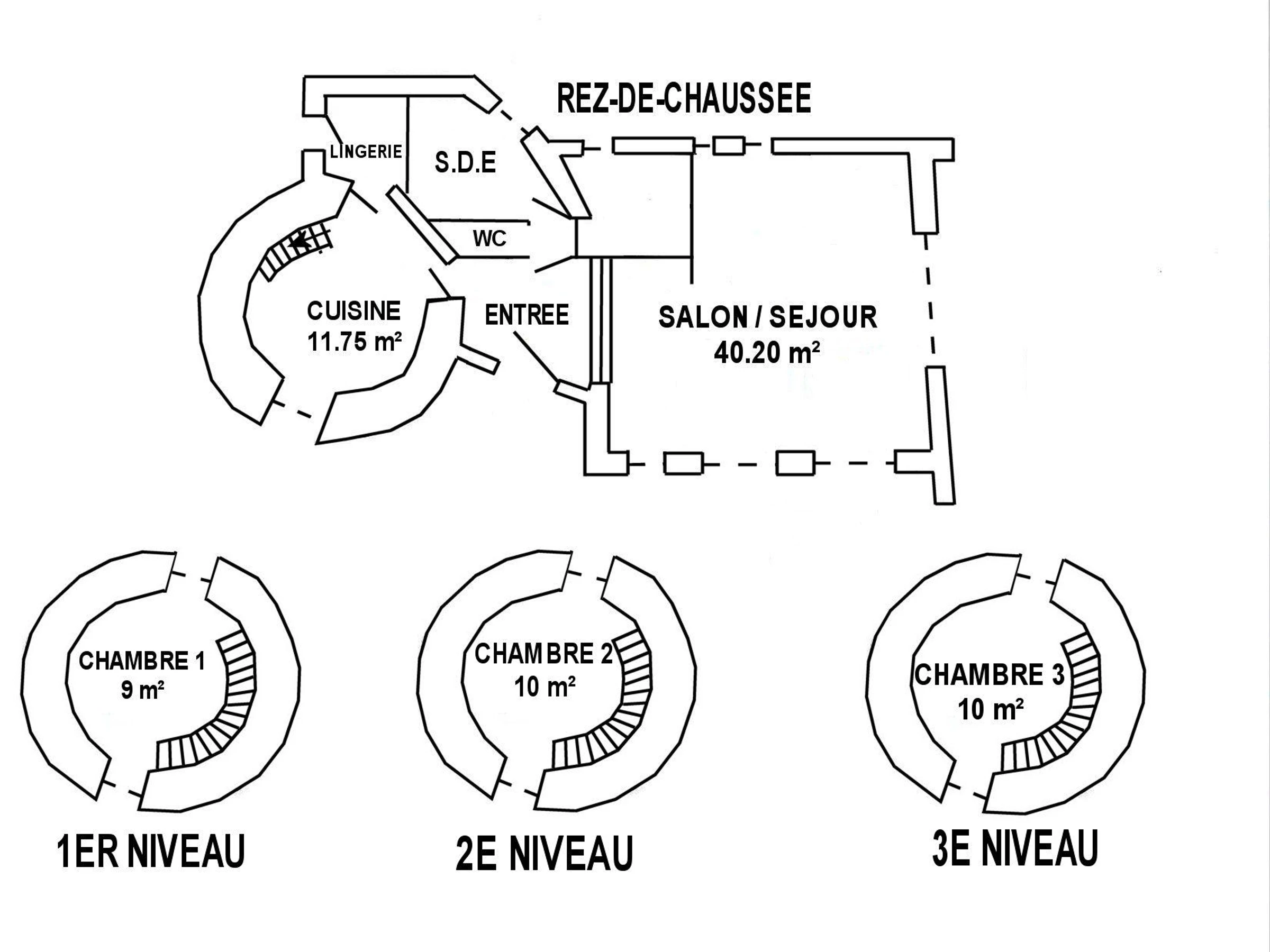 2ème étage : 1 chambre traversante (séparation par rideaux) avec 2 lits 90x190 jumelables.