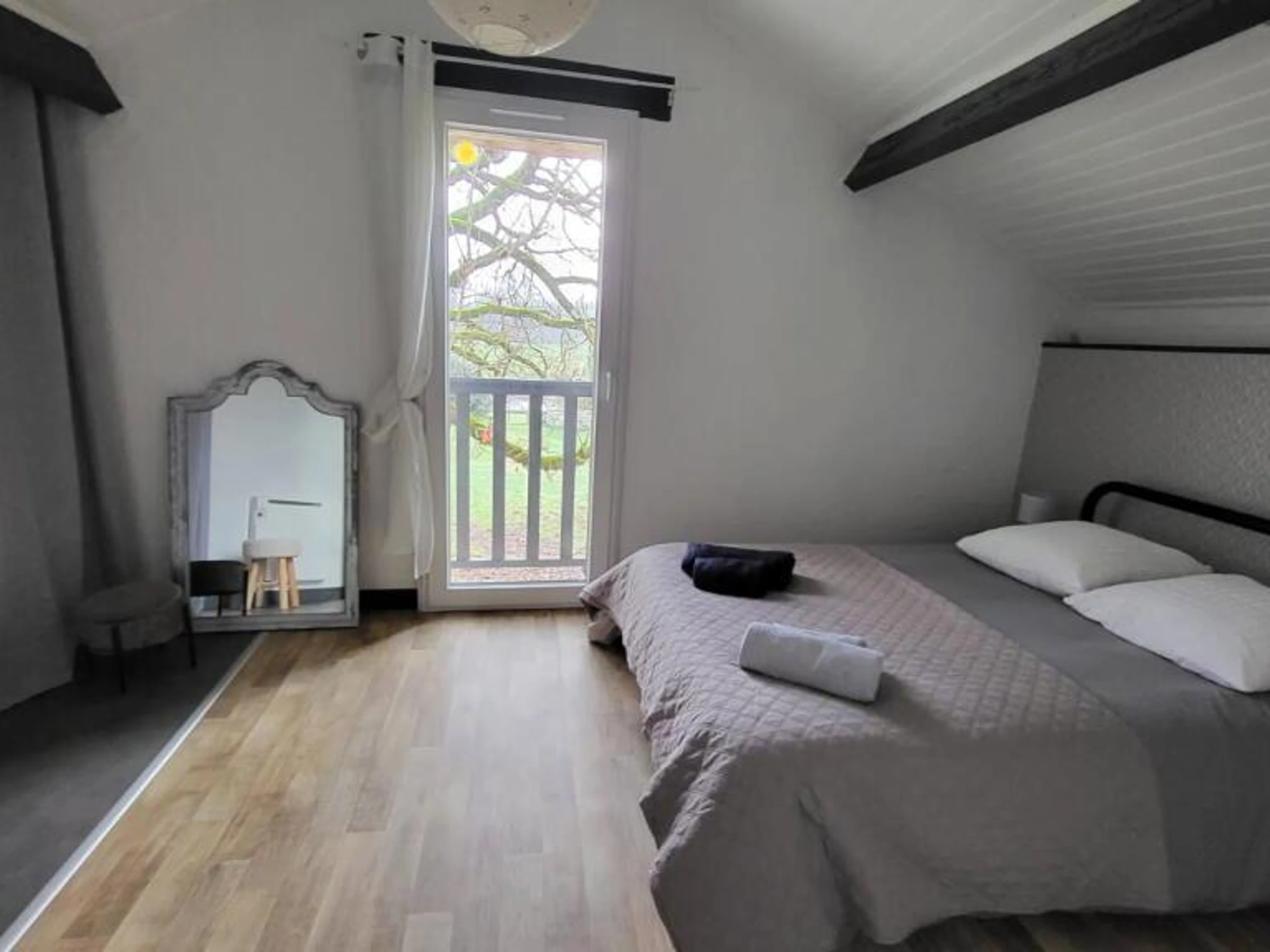 Maison en face des propriétaires. Vous disposez d'une pièce principale avec cuisine équipée, four, lave-vaisselle, four, un espace repas et salon avec canapé. Au rez de chaussée, une première chambre avec un lit de 140x190cm, une salle d'eau avec WC, lave linge et cabine de douche. A l'étage, 2 chambres avec un lit de 140x190cm, et 2 lits de 90x190cm, entre les 2 chambres une salle d'eau avec cabine de douche. Depuis le salon vous accéderez à un espace repas extérieur avec barbecue, chilienne vue sur le jardin.