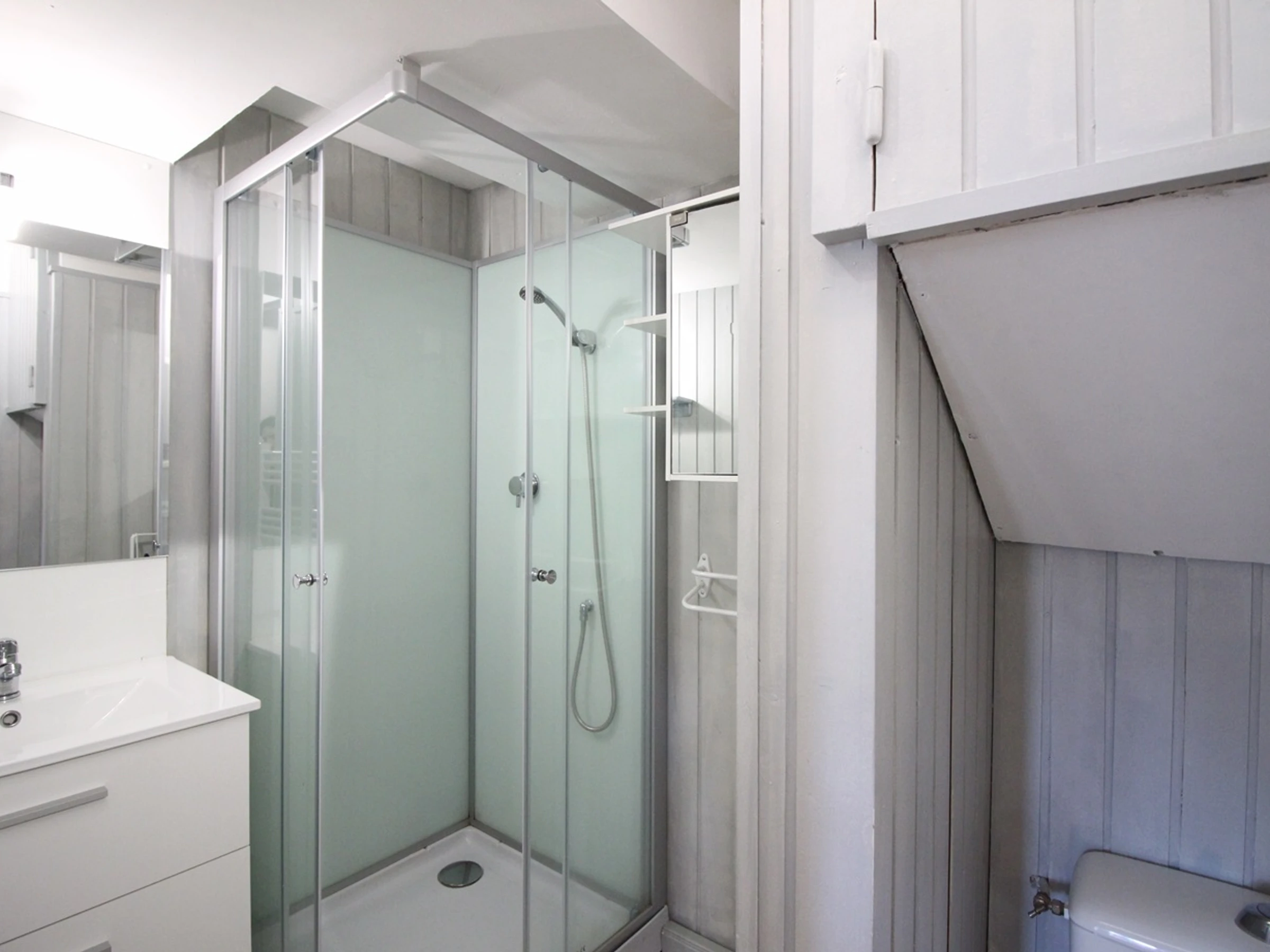 Il se compose d'une pièce à vivre avec kitchenette comprenant plaque induction 2 zones, four, réfrigérateur top, lave linge, micro-ondes.... et un canapé clic-clac 2 personnes.