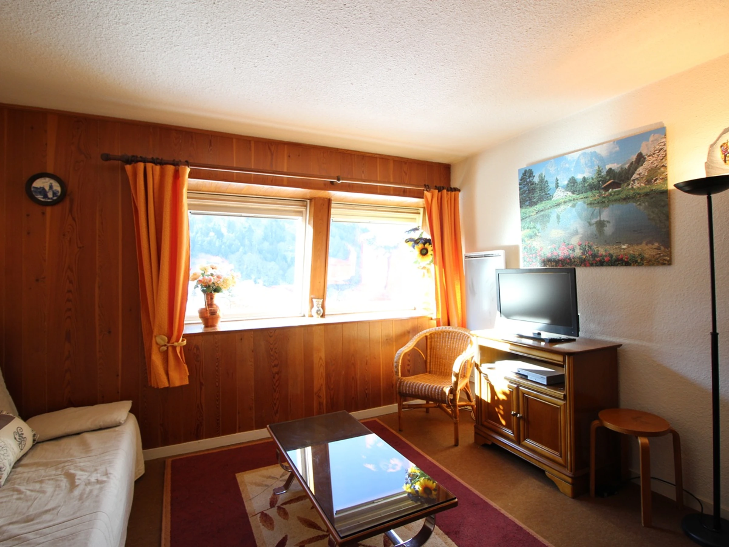 L'appartement situé au 2° étage se compose d'une pièce à vivre avec un canapé clic-clac et un coin nuit avec un lit superposé 90,