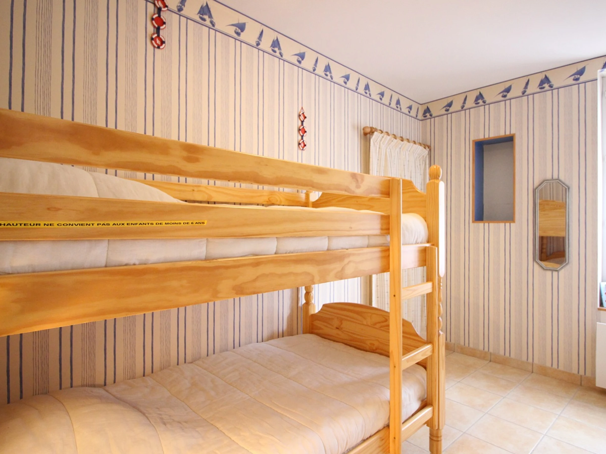 Une chambre borgne (sans fenêtre) avec un lit en140 avec rangements et une seconde chambre avec lits superposés (2x90).