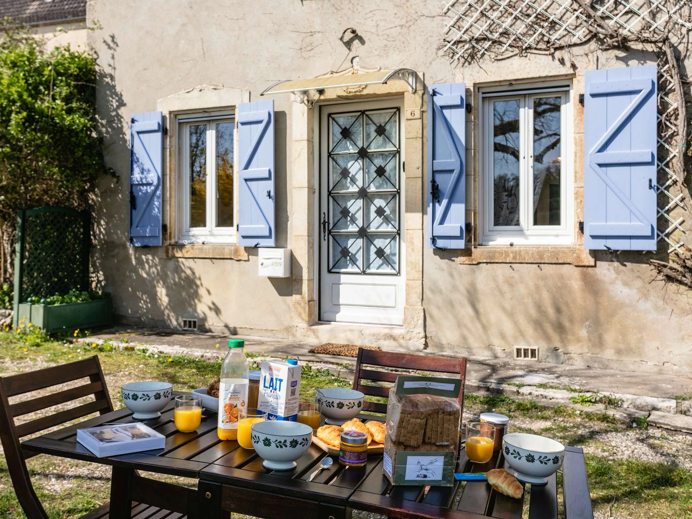 Pas de jardin, mais un petit espace de verdure face à la maison, accessible pour installer une table et profiter de la vue imprenable sur le plan d'eau