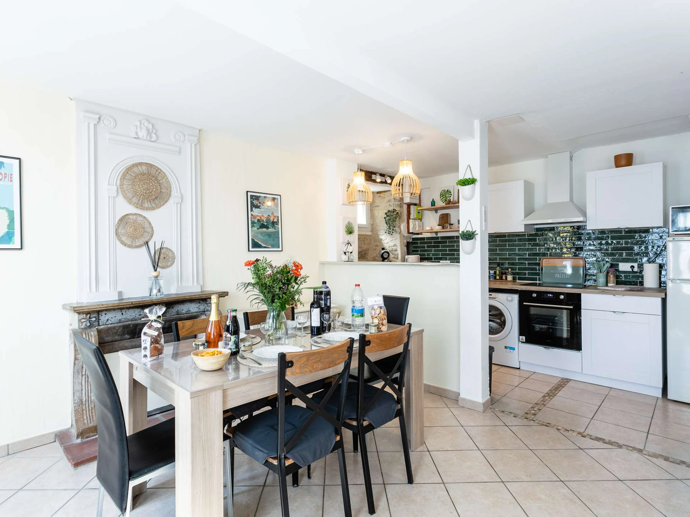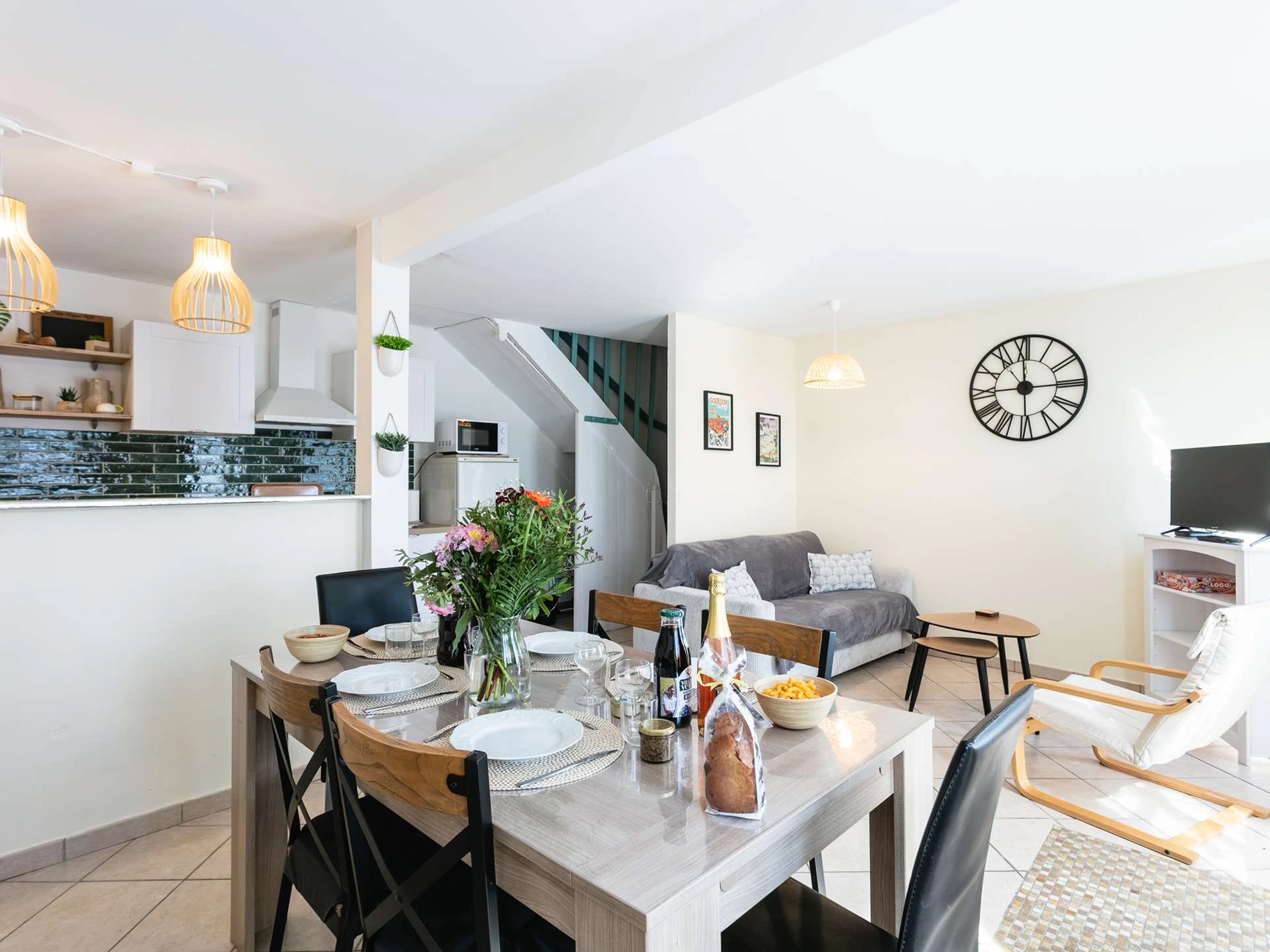 Rez-de-chaussée : pièce de vie avec séjour et cuisine ouverte entièrement rénovée, fonctionnelle et conviviale