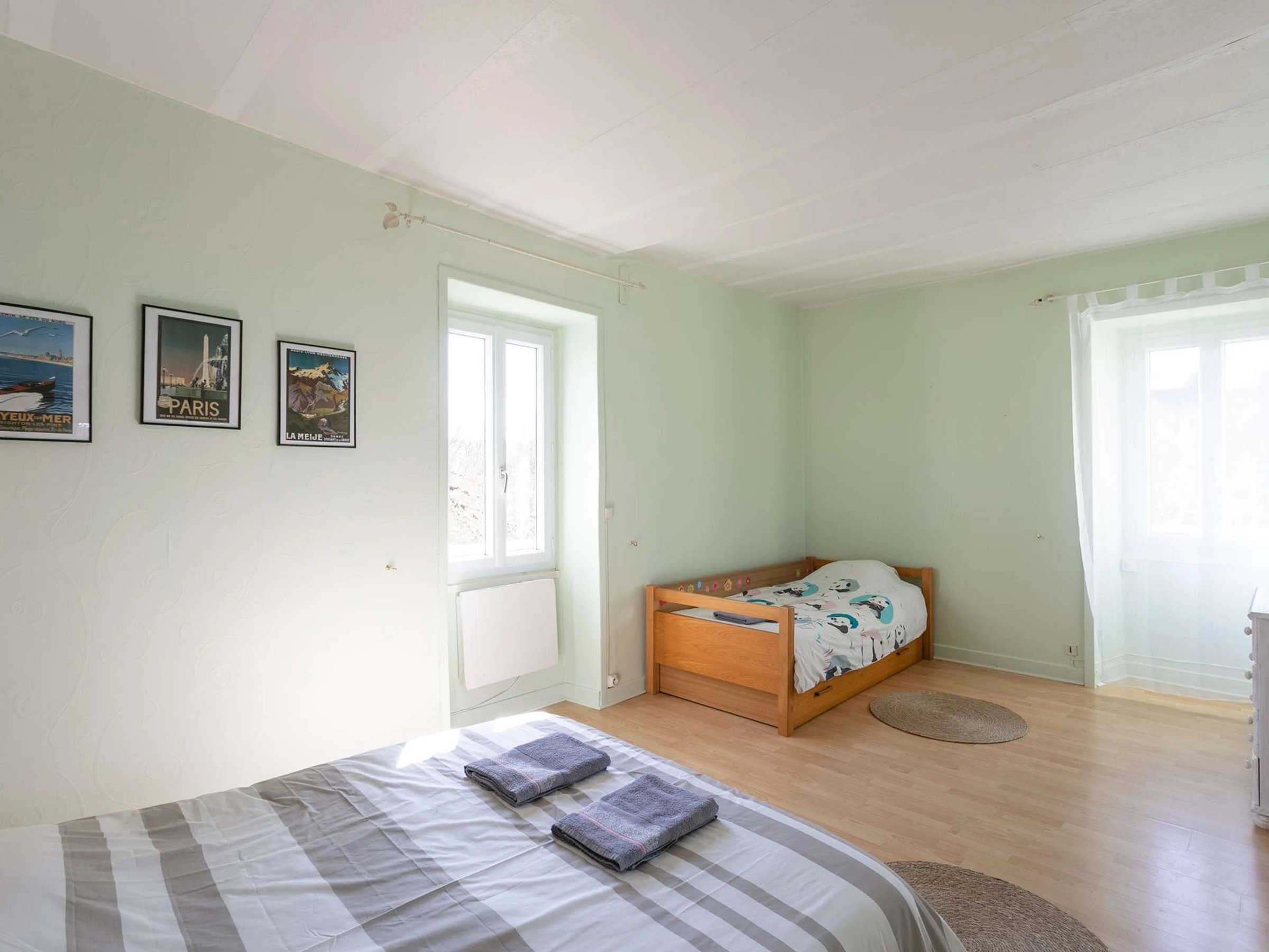 - Linge de maison fourni sans supplément (drap housse, housse de couette, taie d'oreiller, serviette, tapis de bain, torchon)