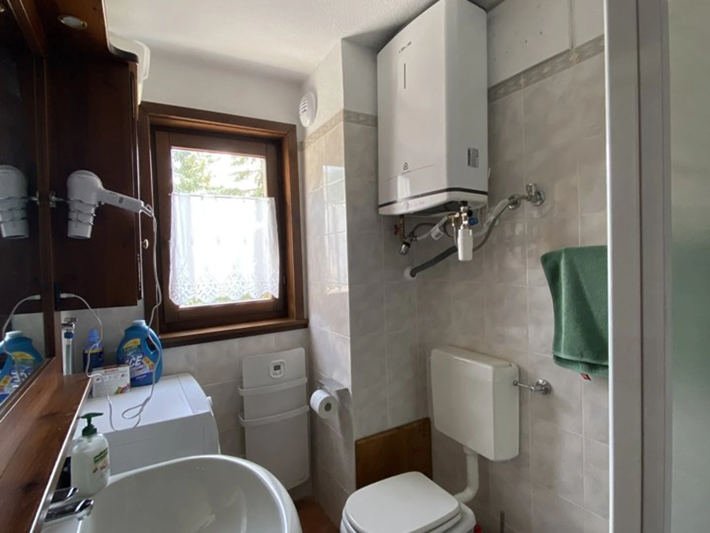 - une sdb avec douche, [hidden] et bidet, et lave-linge,
