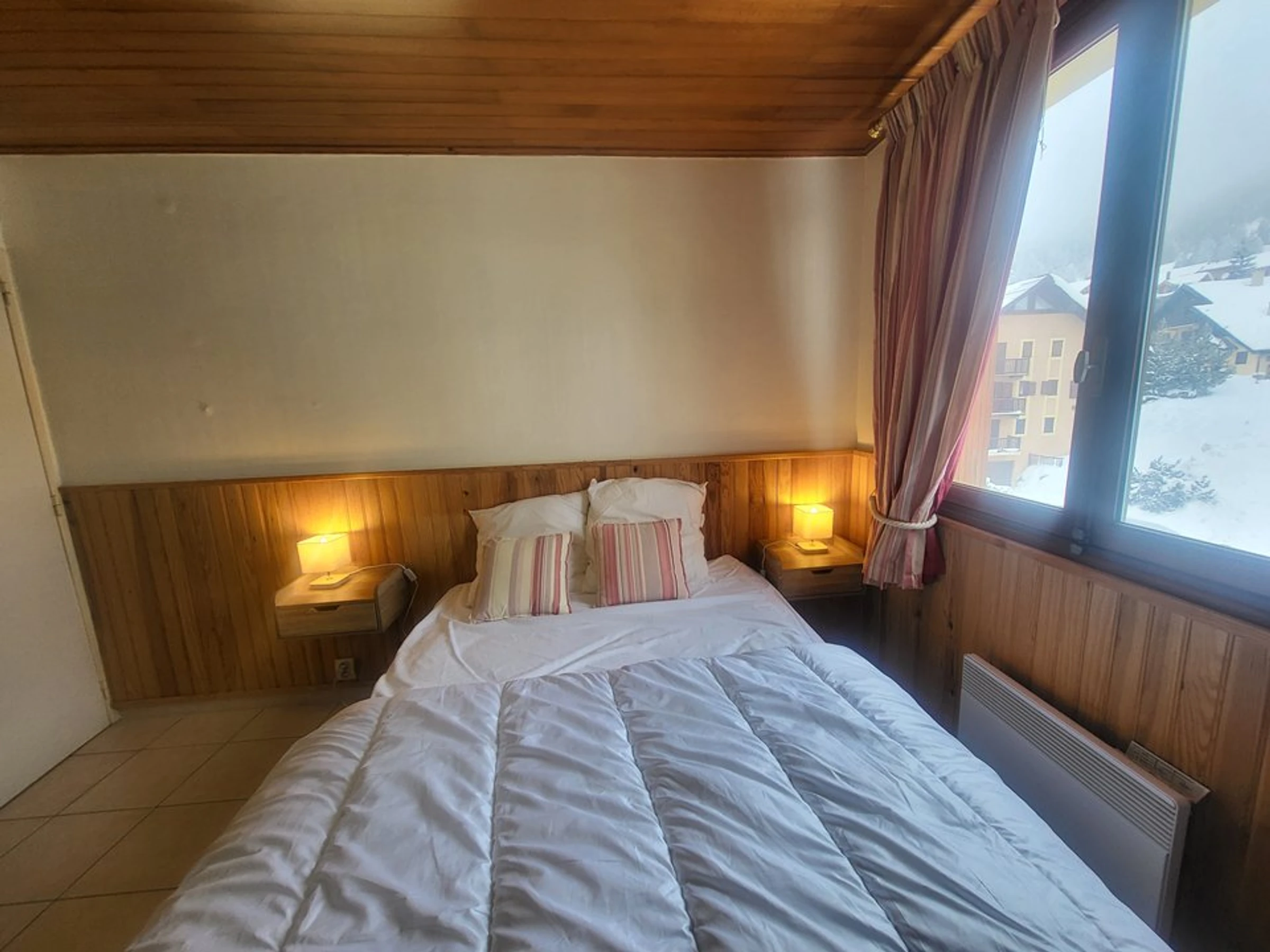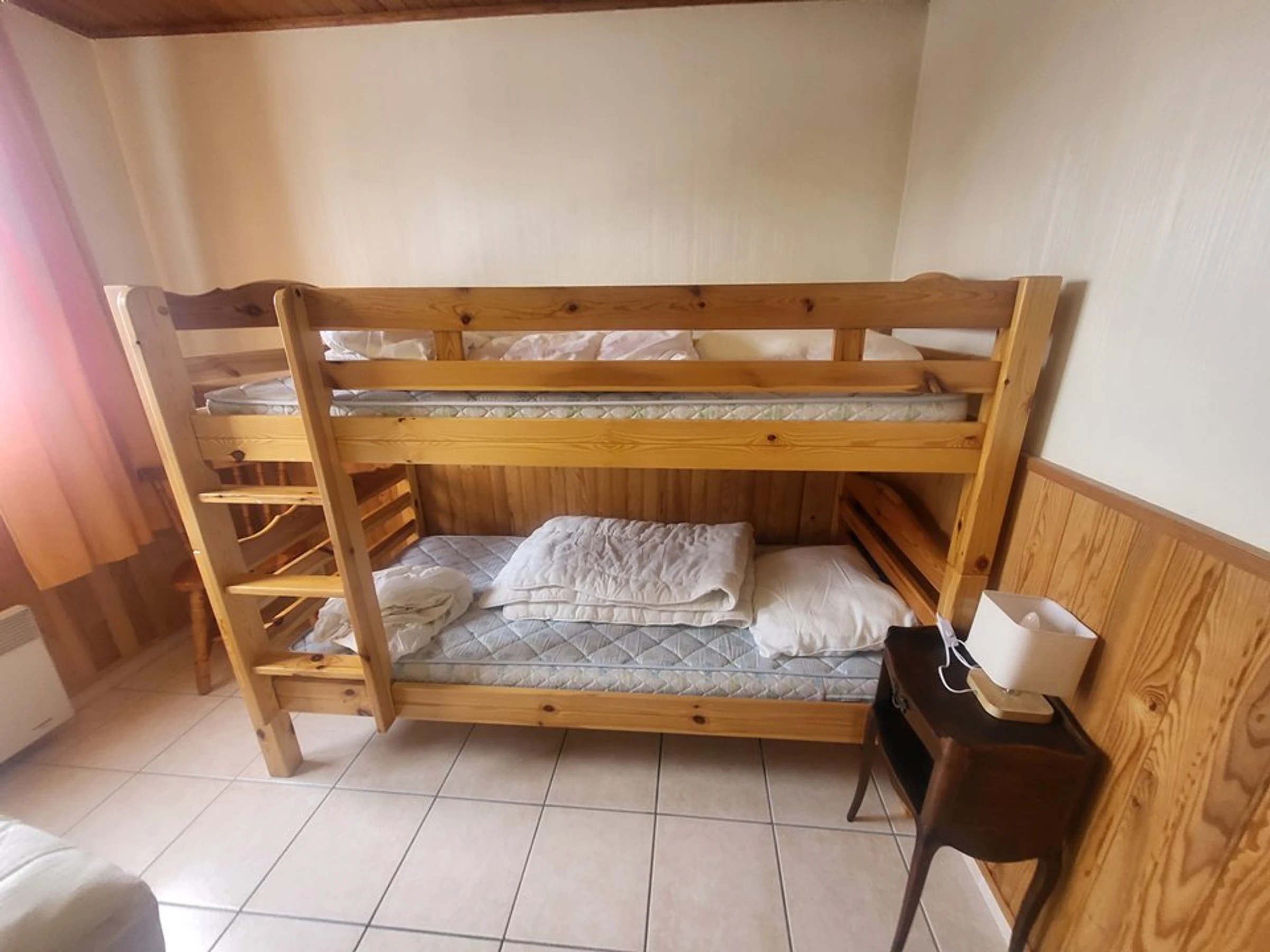 - une chambre avec un lit double en 140 cm et des lits superposés soit 4 couchages,