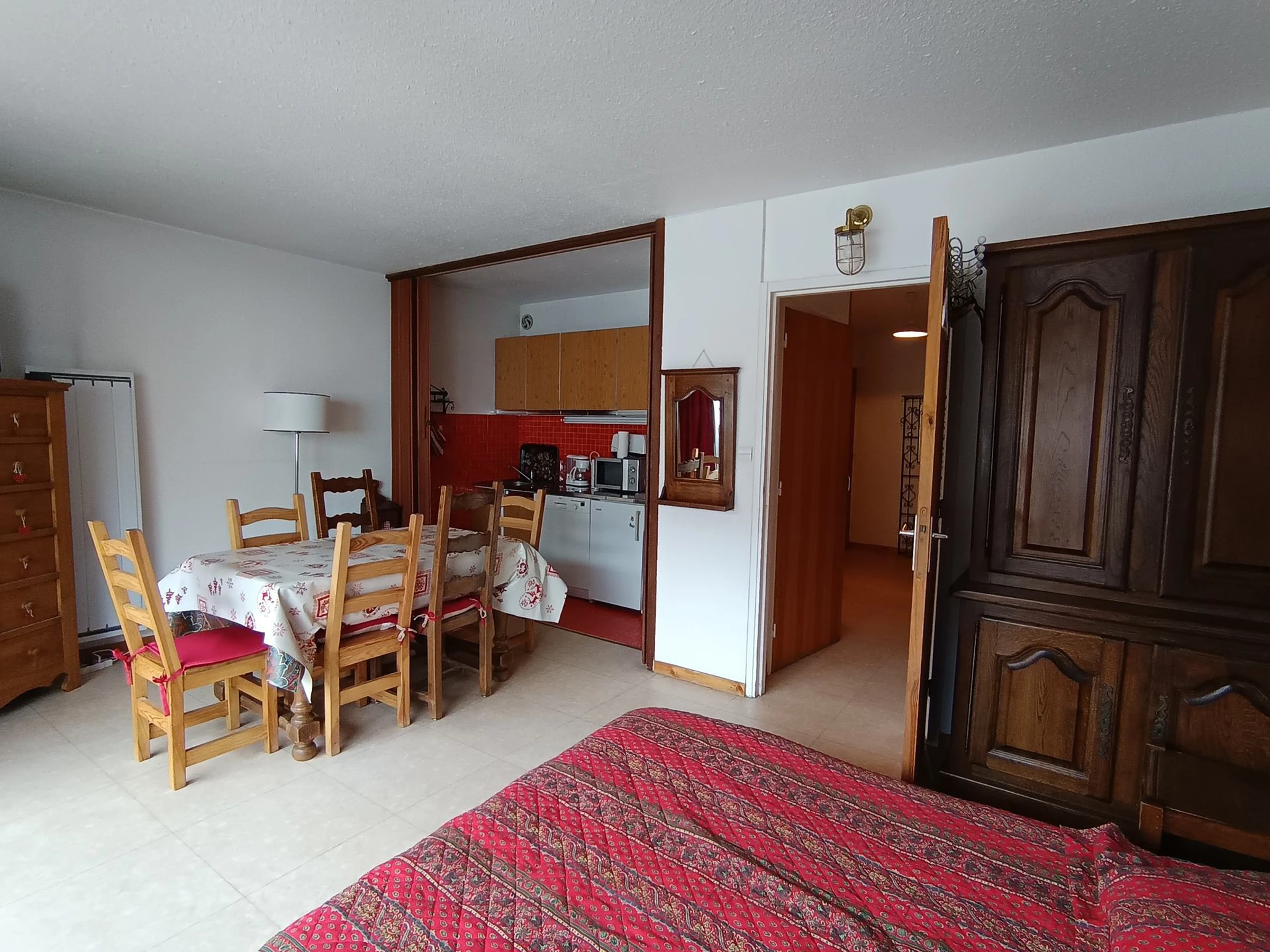 Le + : Idéalement situé proche des pistes et de l'ESF- Balcon Sud - Lit double dans le coin du séjour - Pièce de vie agréable - Entrée et coin montagne séparés du salon par une porte. Grand espace près des lits superposés permettant aux jeunes enfants de jouer dans cette pièce.