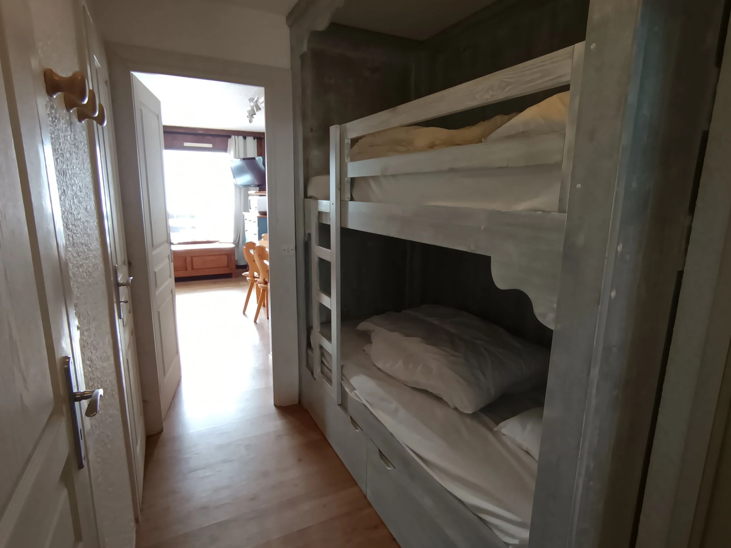 Coin montagne séparé du séjour par une porte : 2 lits superposés 1 pers (80x190)