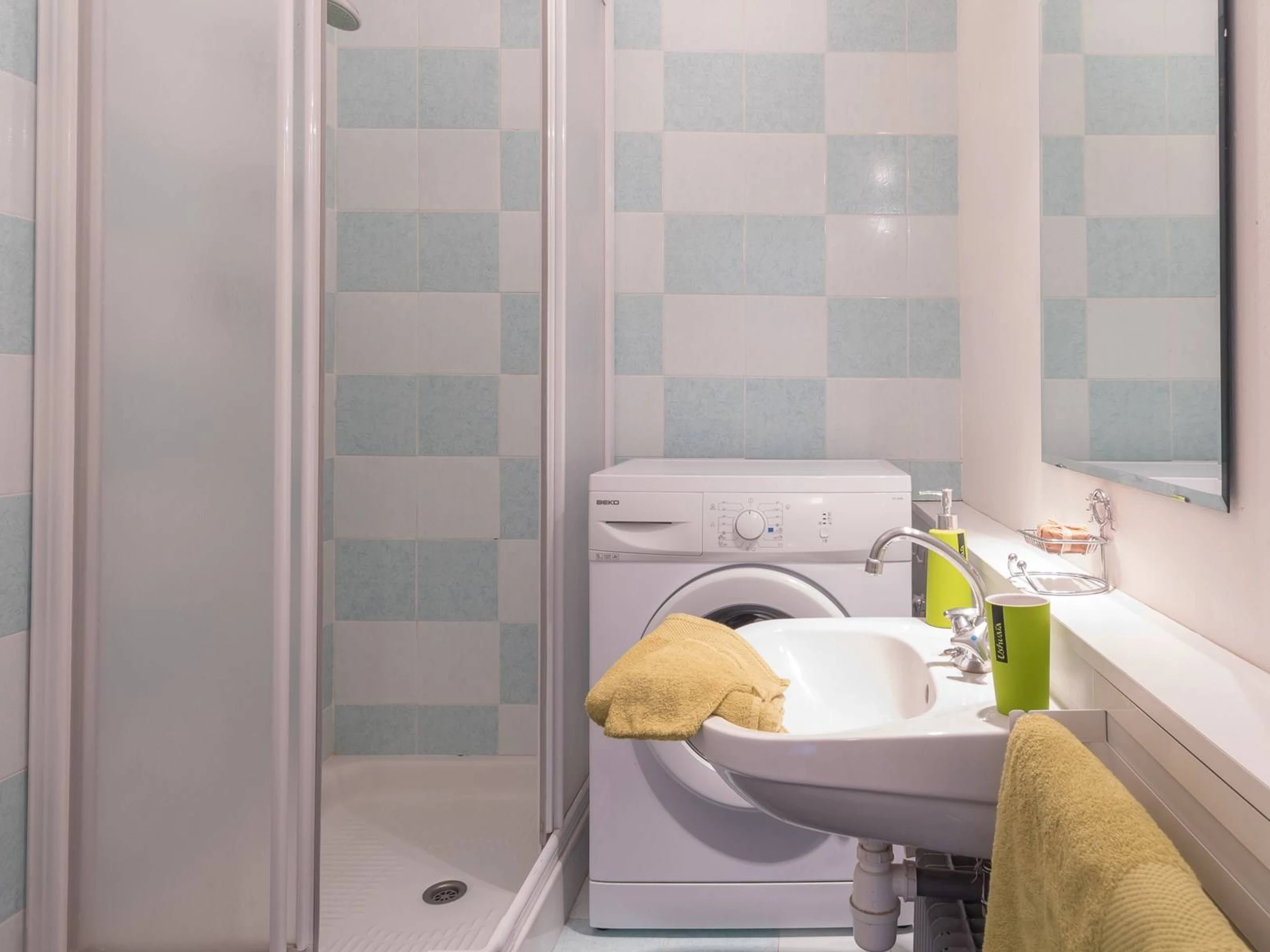 - Une salle d'eau avec douche, lavabo et lave-linge.
