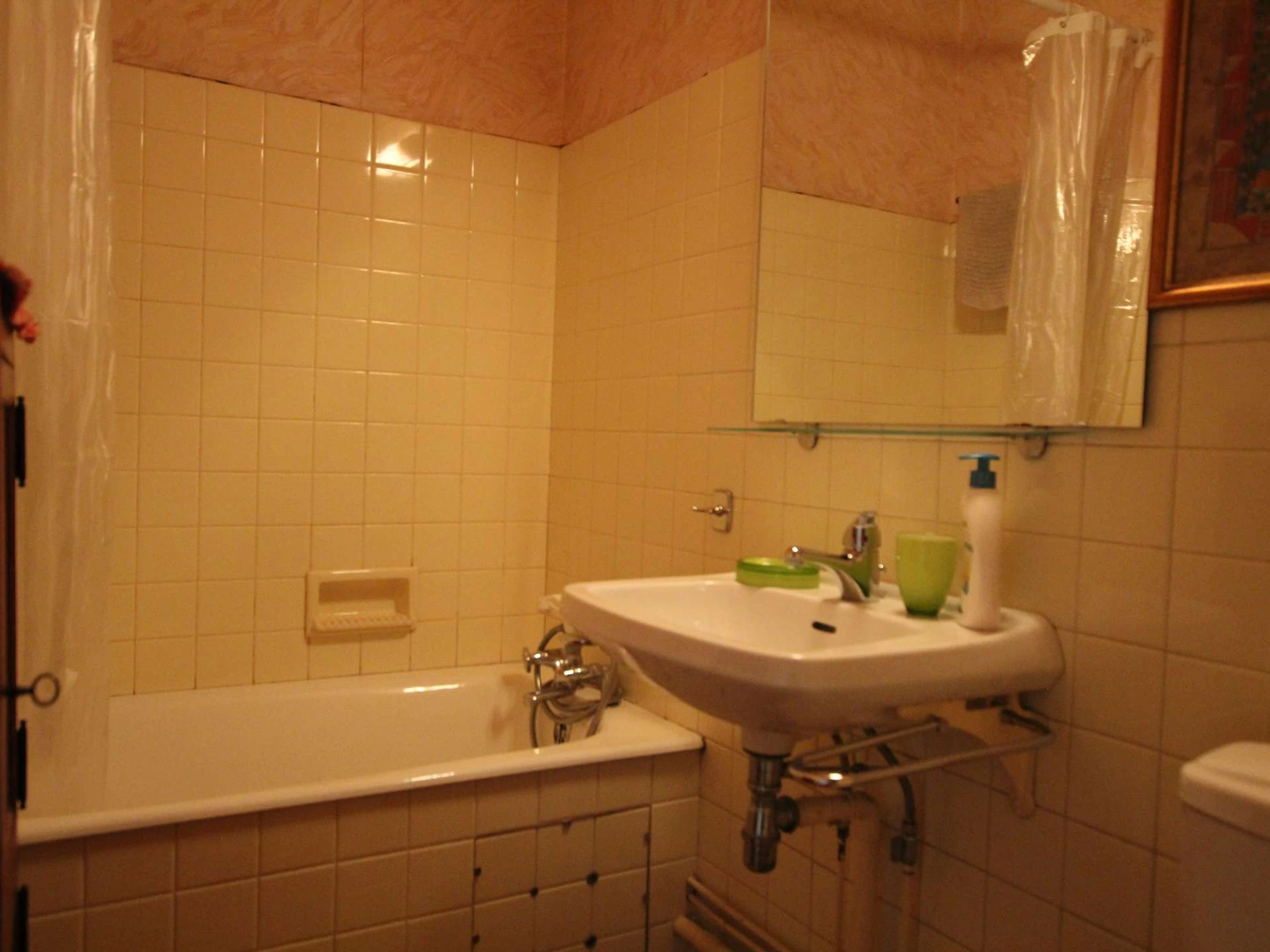 - une salle de bain avec une baignoire, un lavabo et un wc.