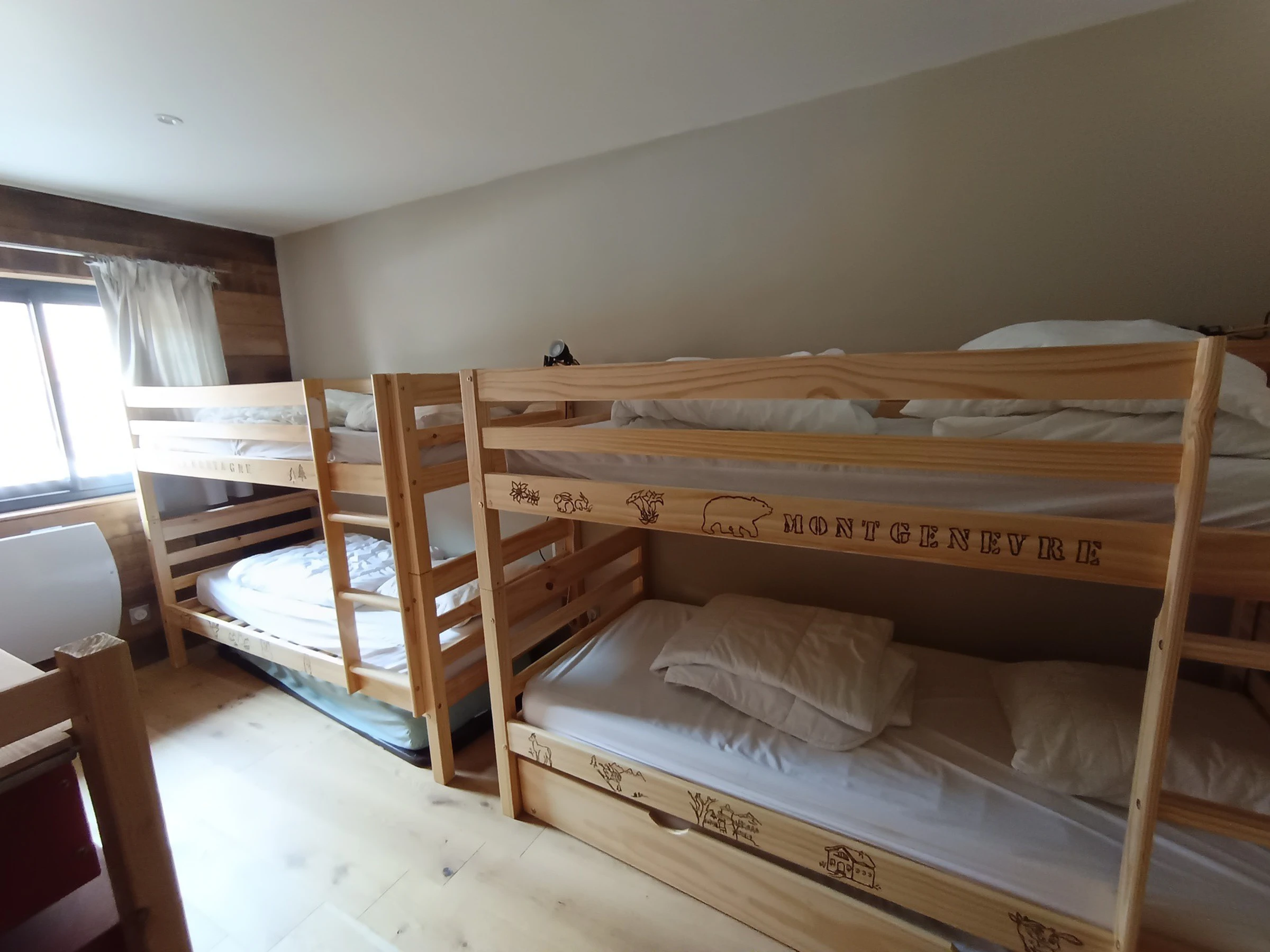 1 grande chambre avec 4 lits superposés = 4 couchages 1 personne (2 lits tiroirs disponibles si besoin)