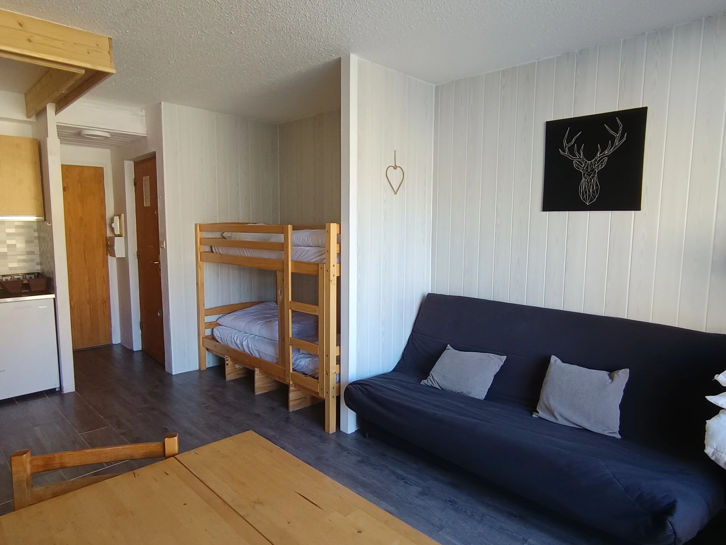 Petit studio lumineux, 4 personnes à proximité immédiate des pistes et des commerces.
