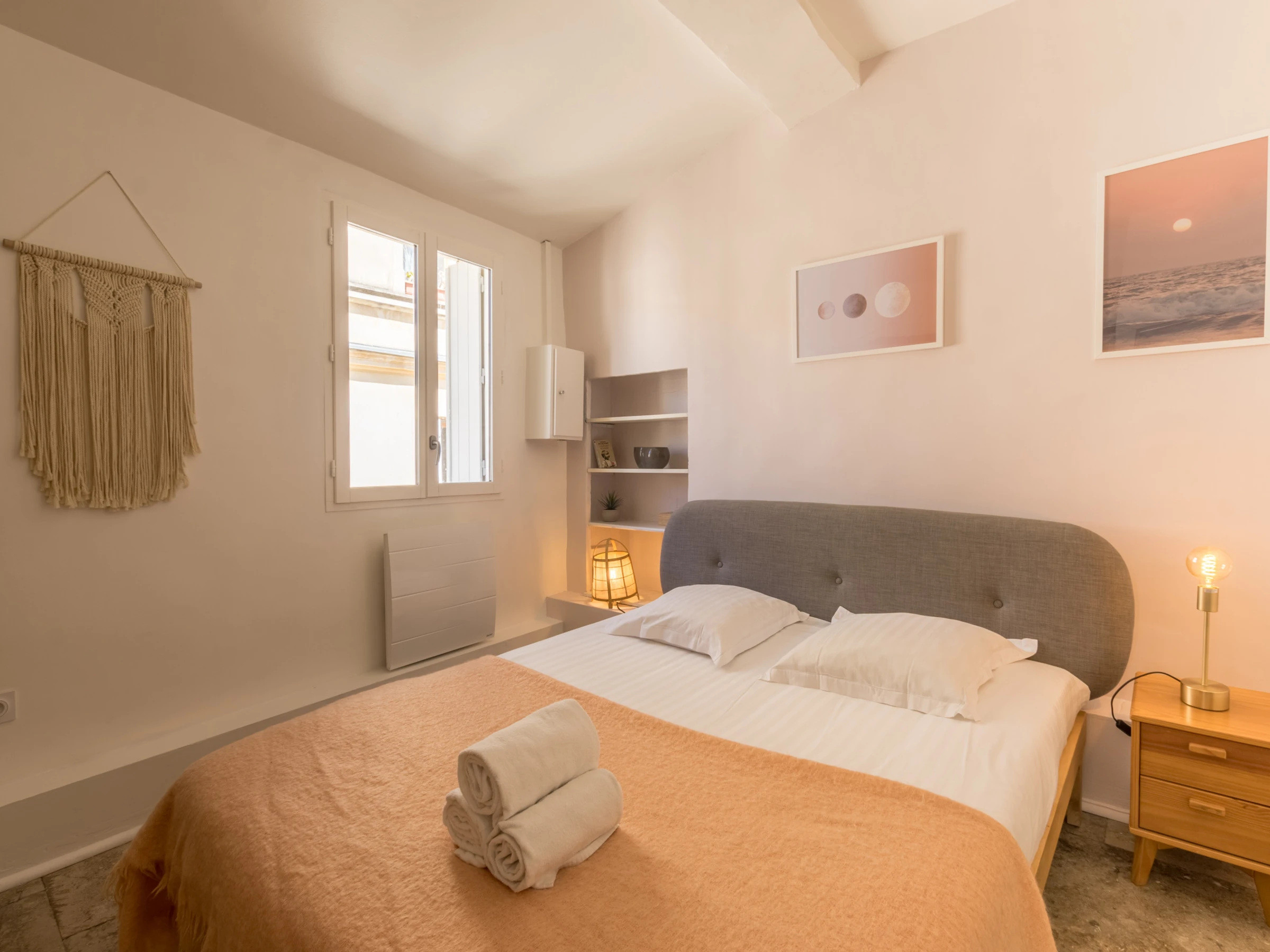 Ne serait-ce que par son emplacement, car il est situé dans le haut du centre historique (écusson), mais surtout par sa situation dominante au calme, avec une vue sur les toits de Montpellier. L’appartement est traversant, et baigne de lumière avec ses trois fenêtres. Idéal pour les courts ou longs séjours il a été entièrement rénové dans les règles de l’art. Belle et grande cuisine américaine, plaques vitro céramique 4 feux, hotte aspirante, lave-vaisselle, lave-linge, four à micro ondes. Douche à l’italienne avec un chauffe eau pour se prélasser sans stress sous de longues douches chaudes, wc séparé. Literie moelleuse et confortable de 160cm, grand placard dans la chambre.