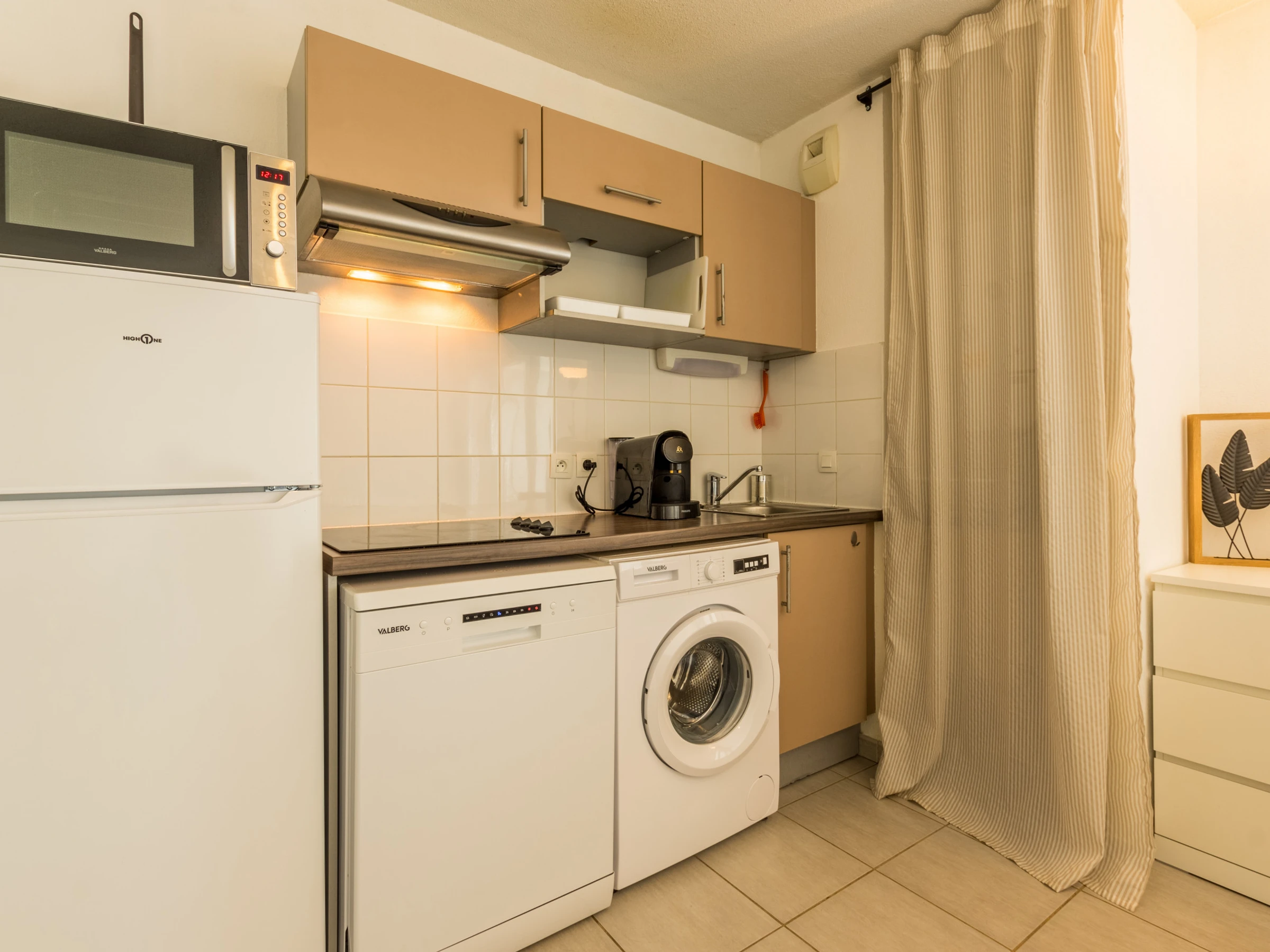 La cuisine, à vitrocéramique, est équipée avec réfrigérateur, four, congélateur, lave-vaisselle, vaisselle/couverts, ustensiles/cuisine et cafetière. Les serviettes et le linge de lit sont fournis. Vous séjournerez à 1 km de l'hôtel de ville et à 3 km du centre commercial Odysseum. L'aéroport de Montpellier-Méditerranée, le plus proche, est implanté à 8 km.