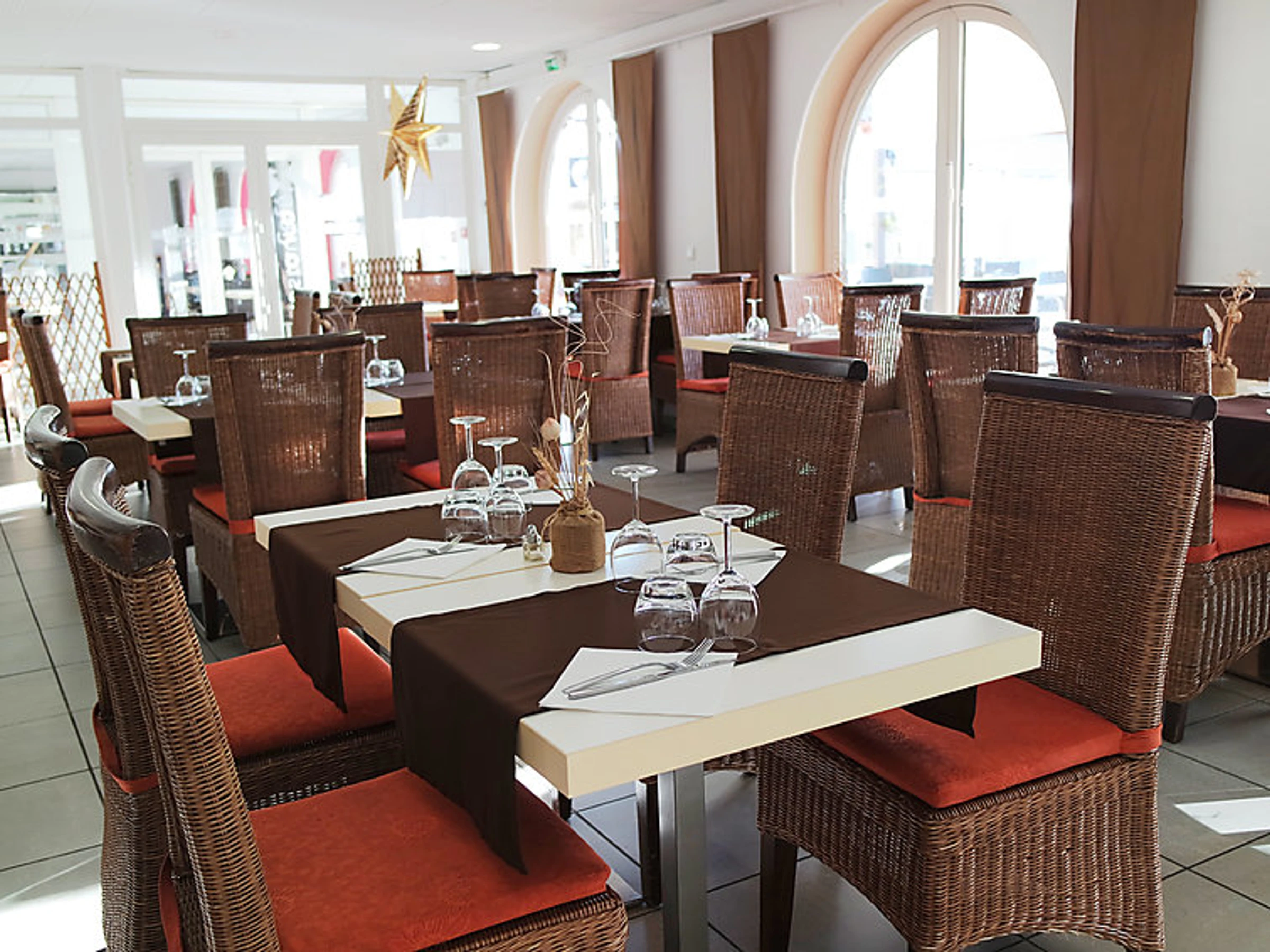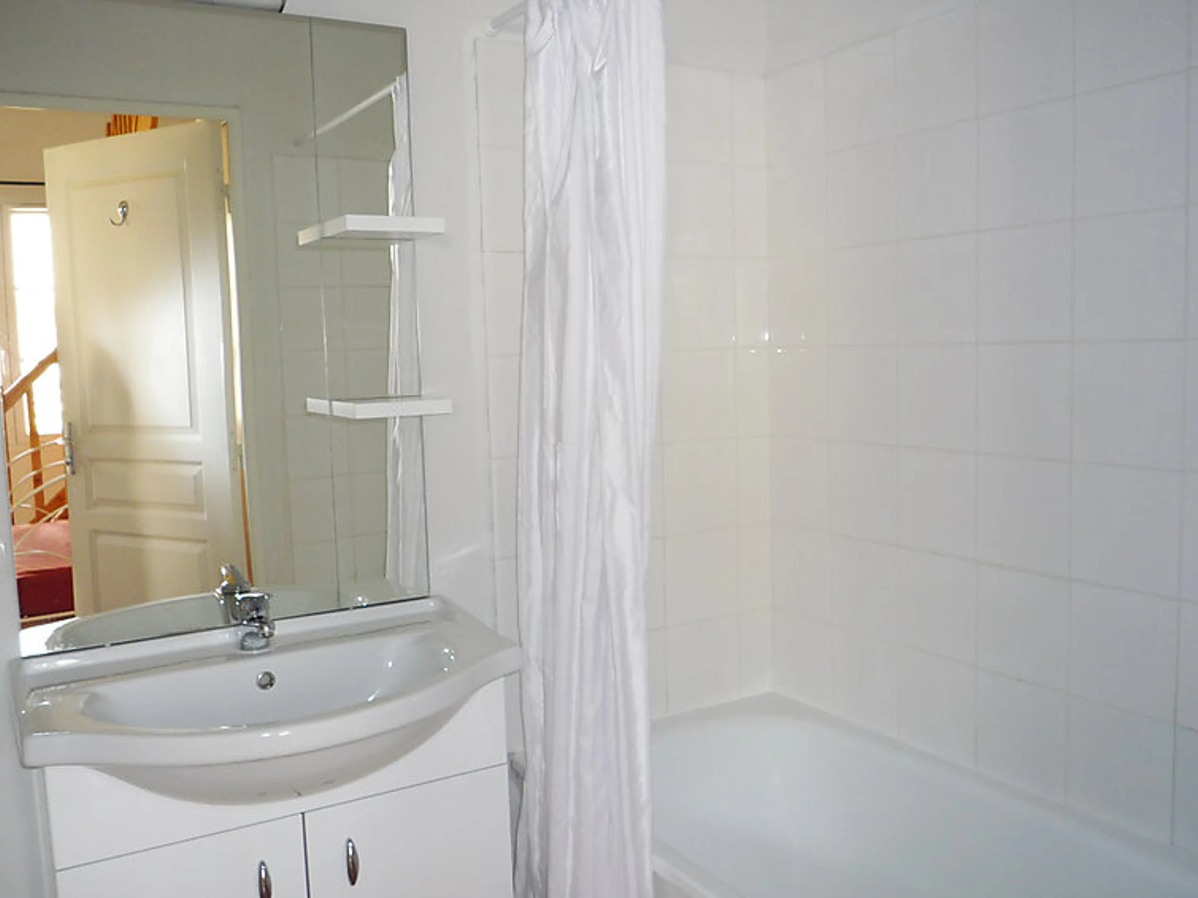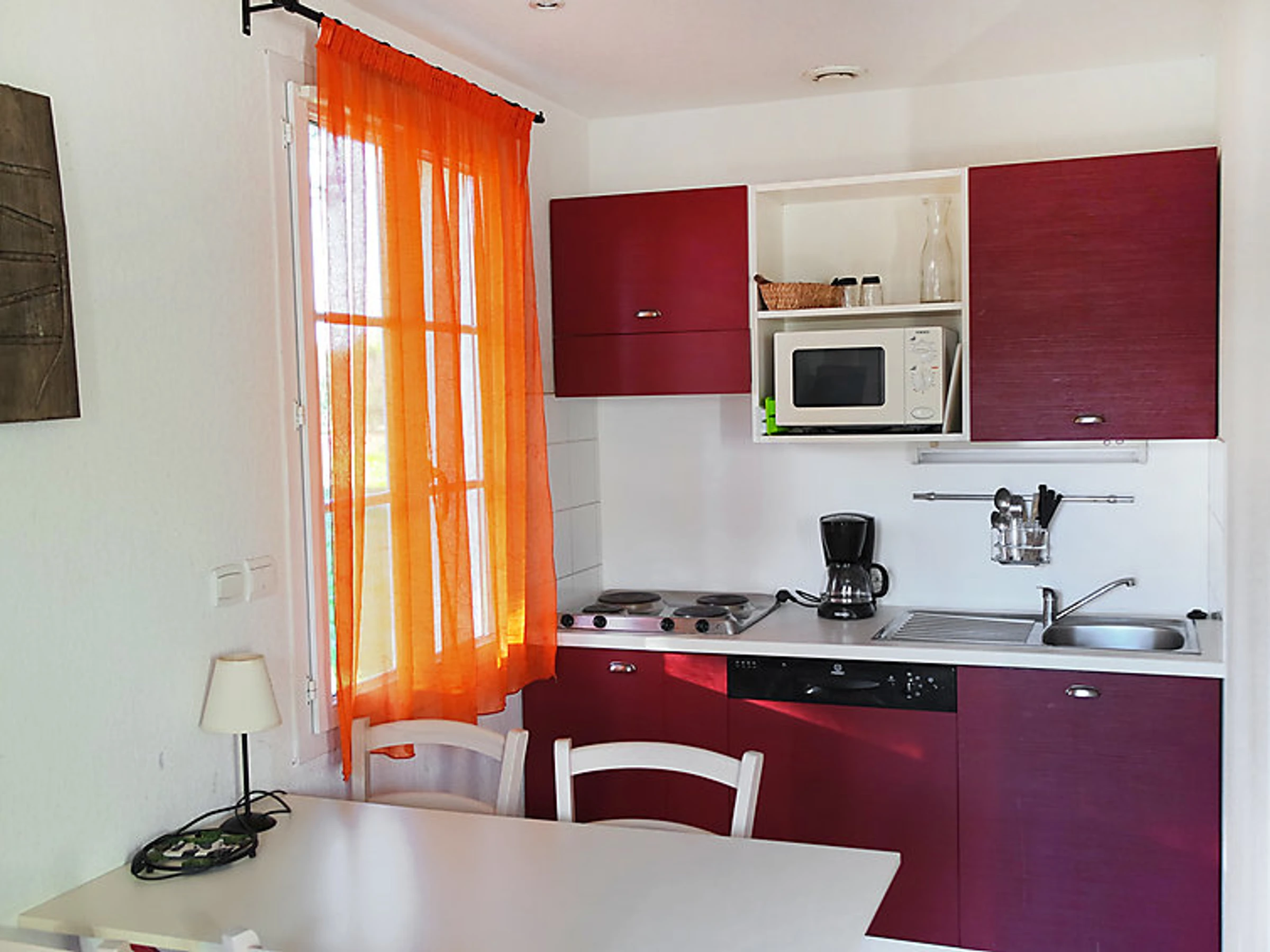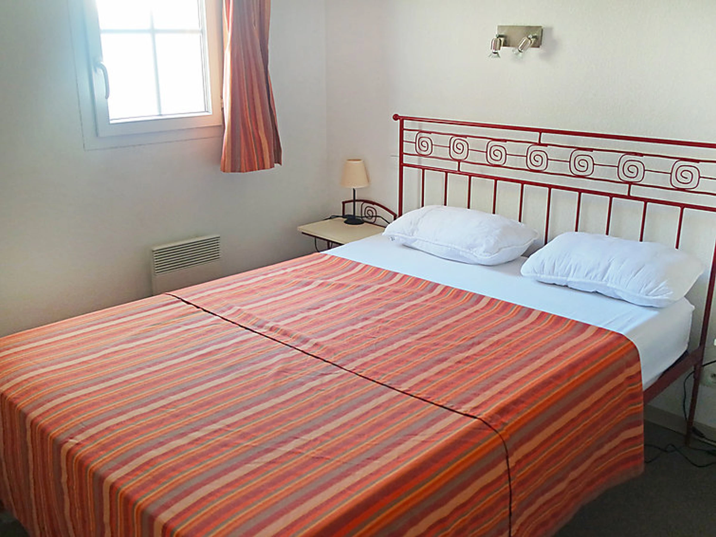 Maison mitoyenne 3 pièces 45 m2: séjour/salle à manger avec 1 divan-lit et TV (écran plat). Sortie sur la terrasse. Cuisine ouverte (4 plaques de cuisson, lave-vaisselle, four micro-ondes). Salle de bains, WC séparé. Air-conditionné. À l'étage supérieur: 1 chambre avec 1 grand-lit. 1 chambre avec 2 couchages. Petite terrasse. Meubles de terrasse. A disposition: Internet (Connexion WIFI, gratuit). Maximum 1 animal/ chien autorisé. Disponible sur le site avec supplément: Petit déjeuner 9.8EUR par personne et par jour, Animal 5.0EUR par jour Services supplémentaires obligatoires sur le site: Taxe de séjour 1.0EUR par personne et par jour, Linge de lit (premier jeu) 10.0EUR par personne, Serviettes (premier jeu) 5.0EUR par personne