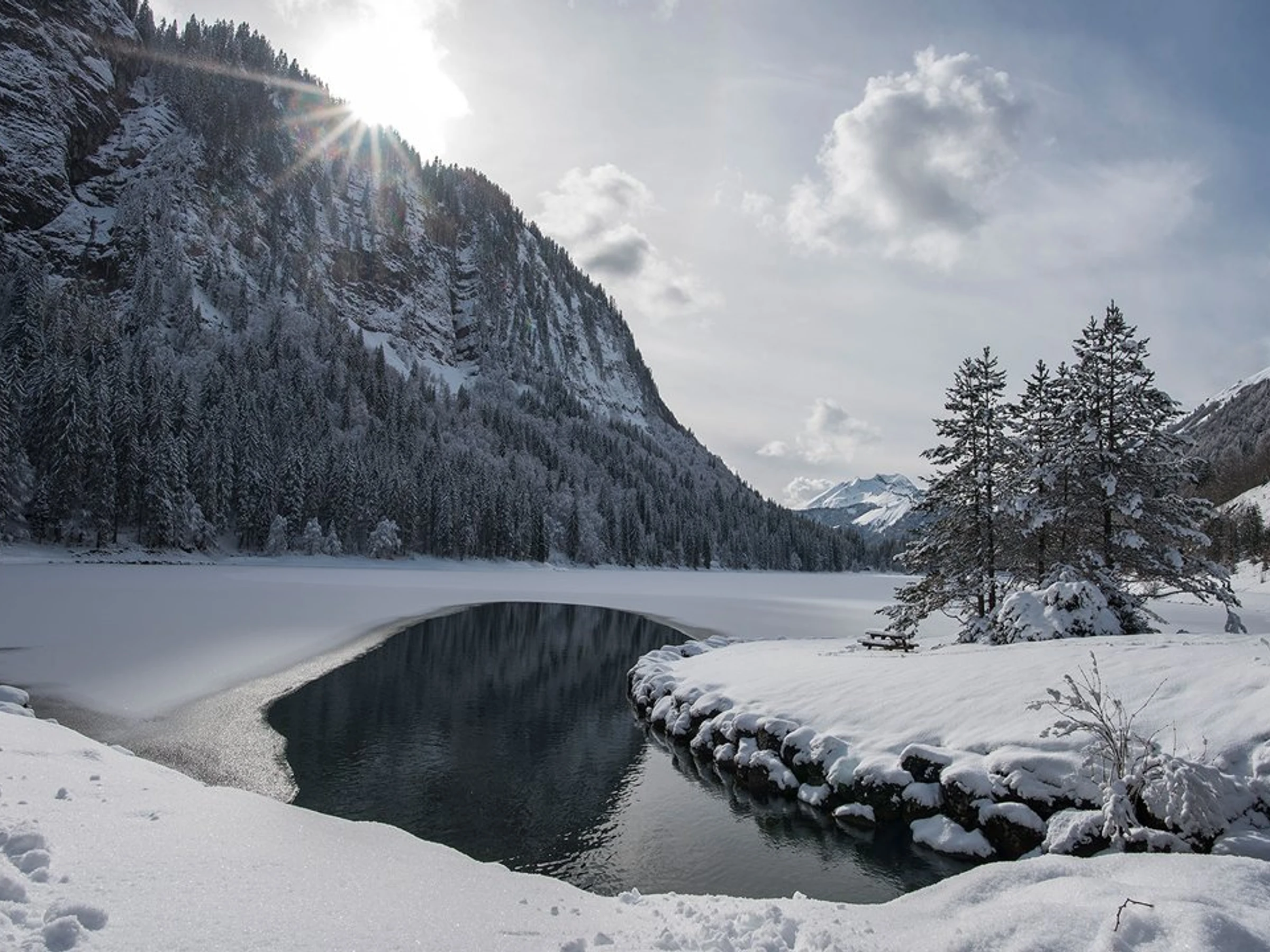 - pièce de vie avec un coin repas - une table, 2 chaises + banc donnant sur un balcon orienté SUD- canapé BZ ( 2 personnes) télévision