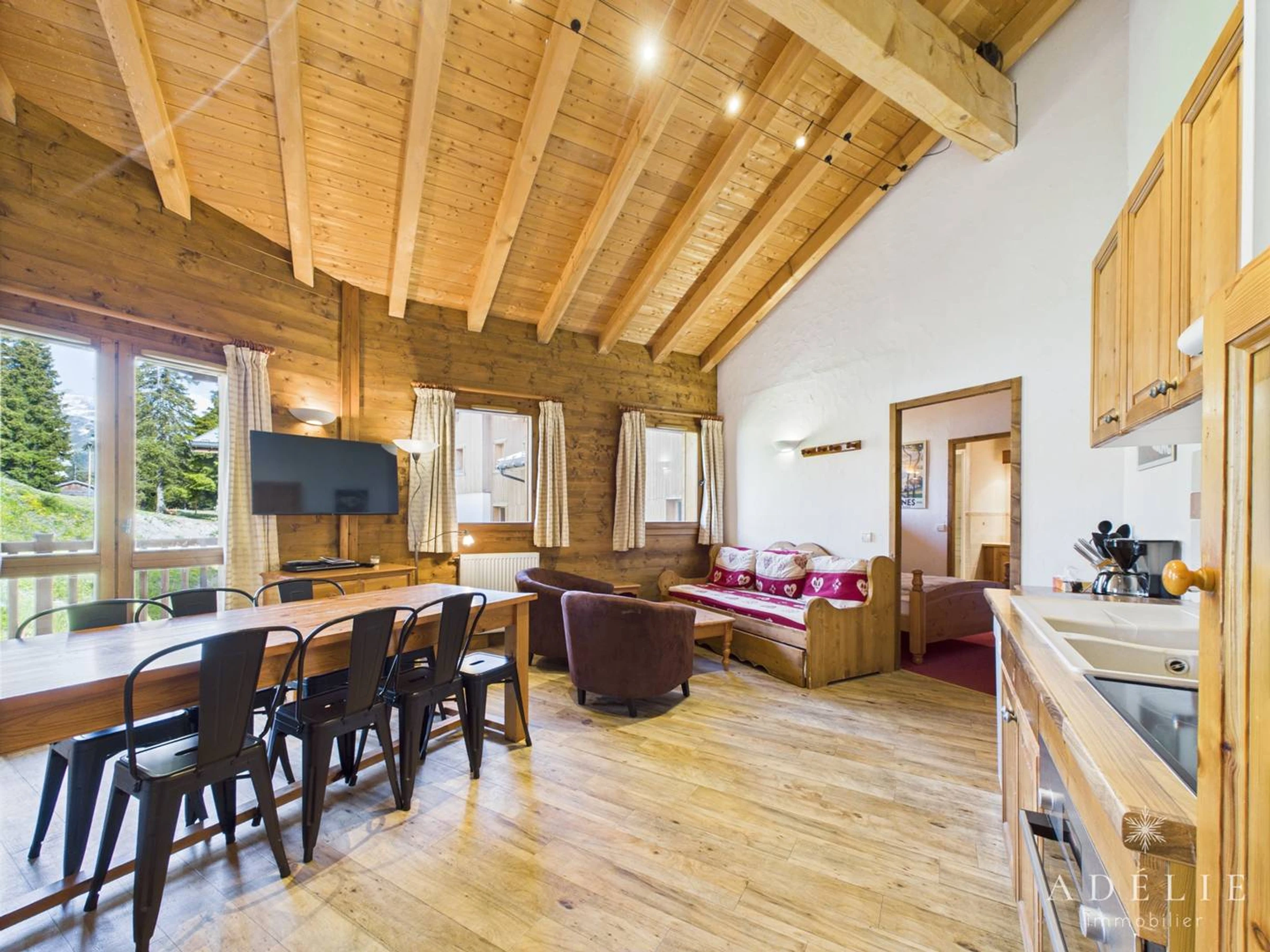 Résidence LES CHALETS DU VALAISAN située en plein centre de la station, au dessus du centre commercial, à 150 m des remontées mécaniques et à 80m de la garderie Les Galopins.