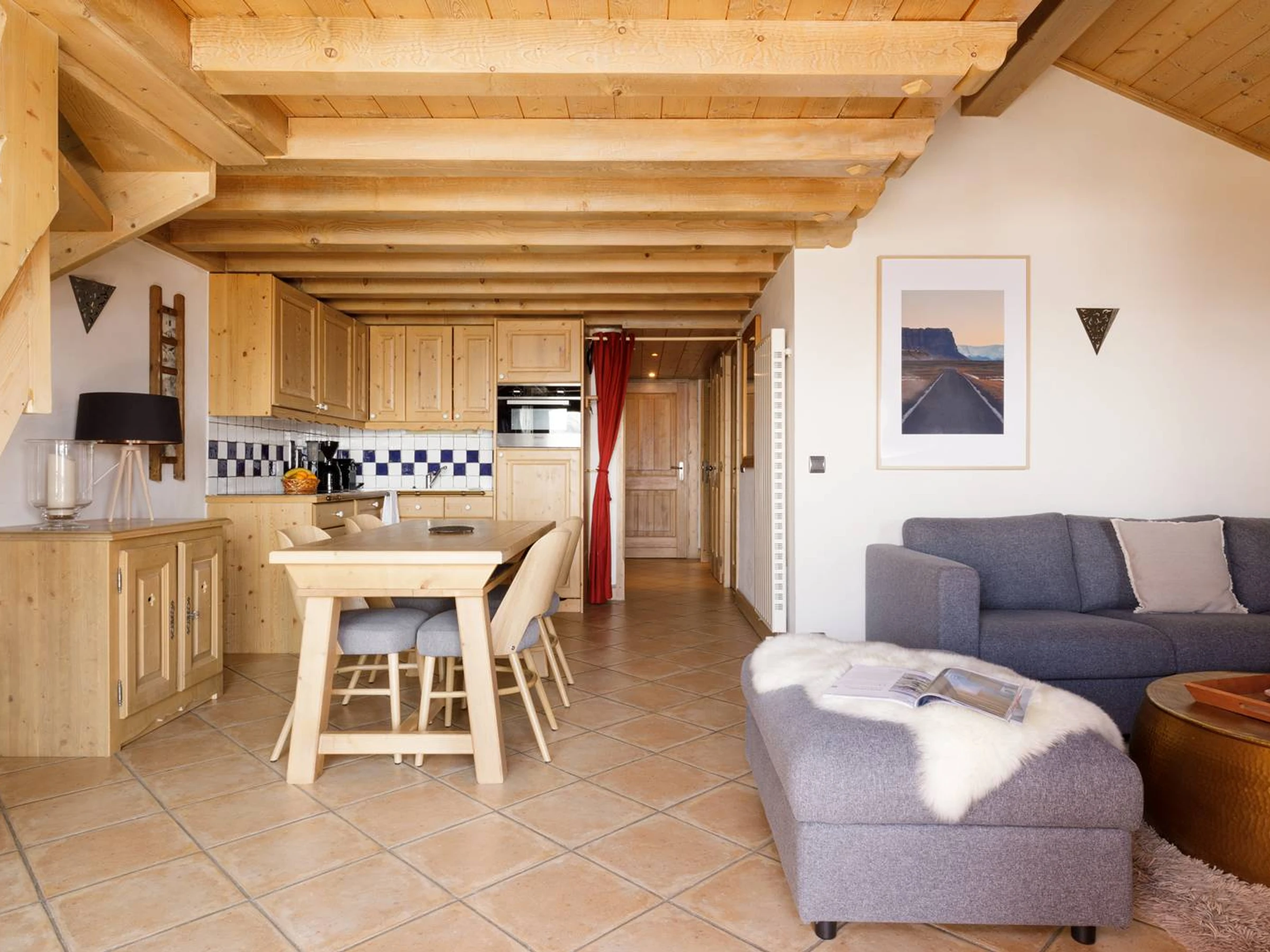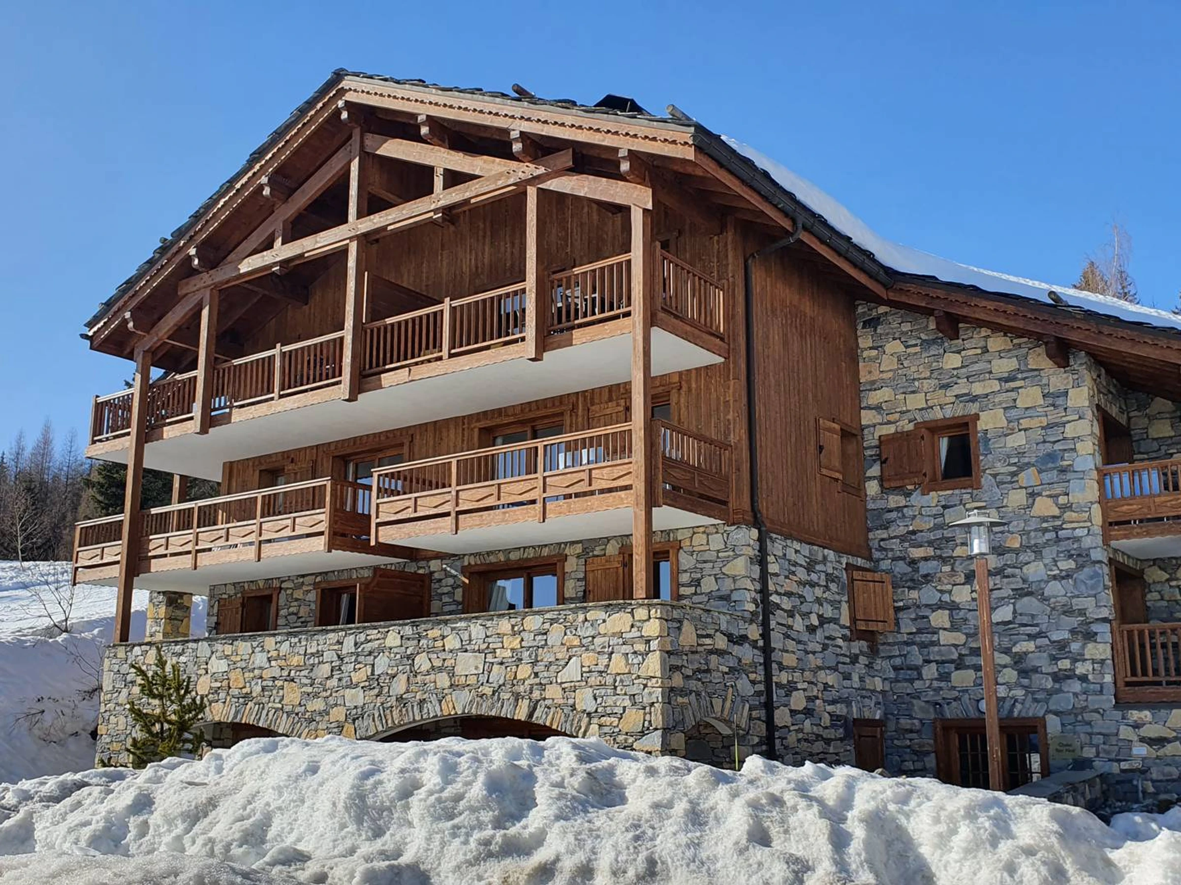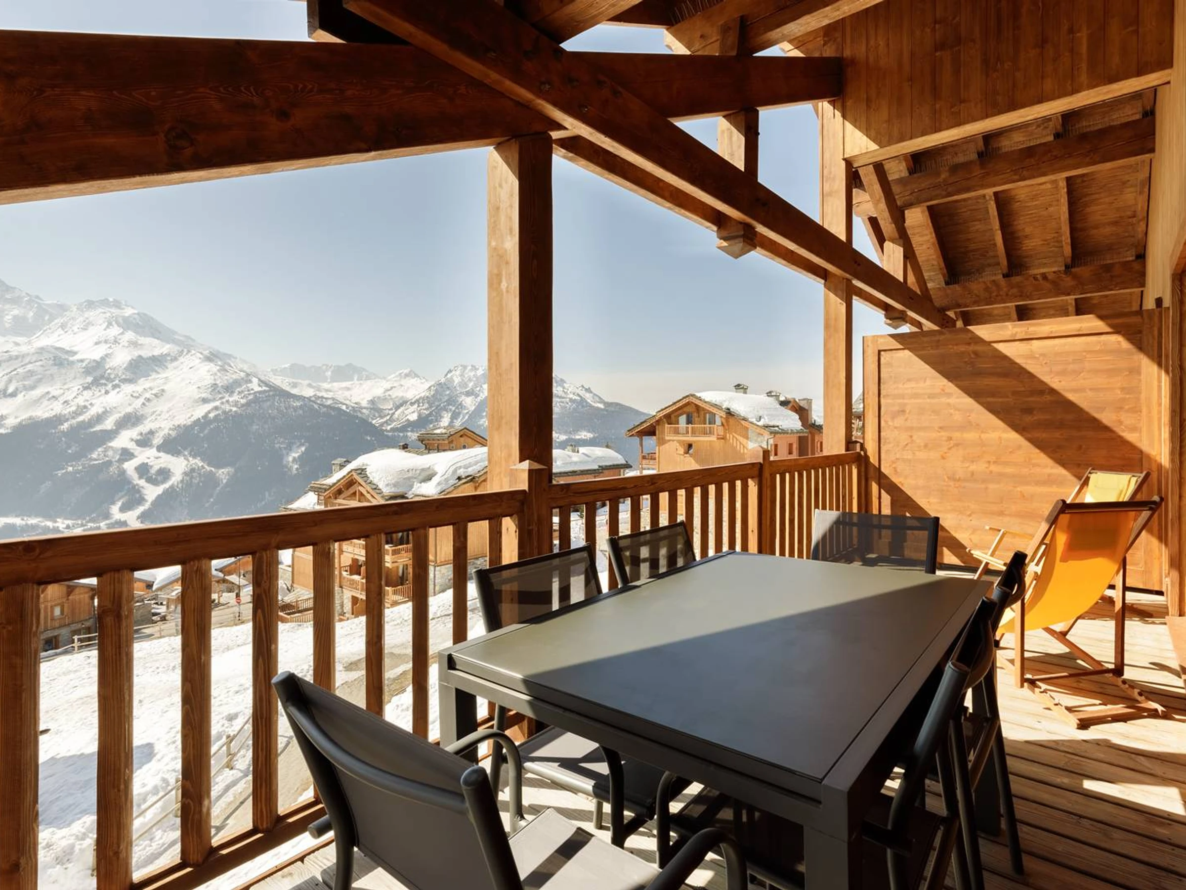 Exposition Sud avec très belle vue sur la vallée de Haute Tarentaise. Retour skis aux pieds, accès pistes à quelques mètres.