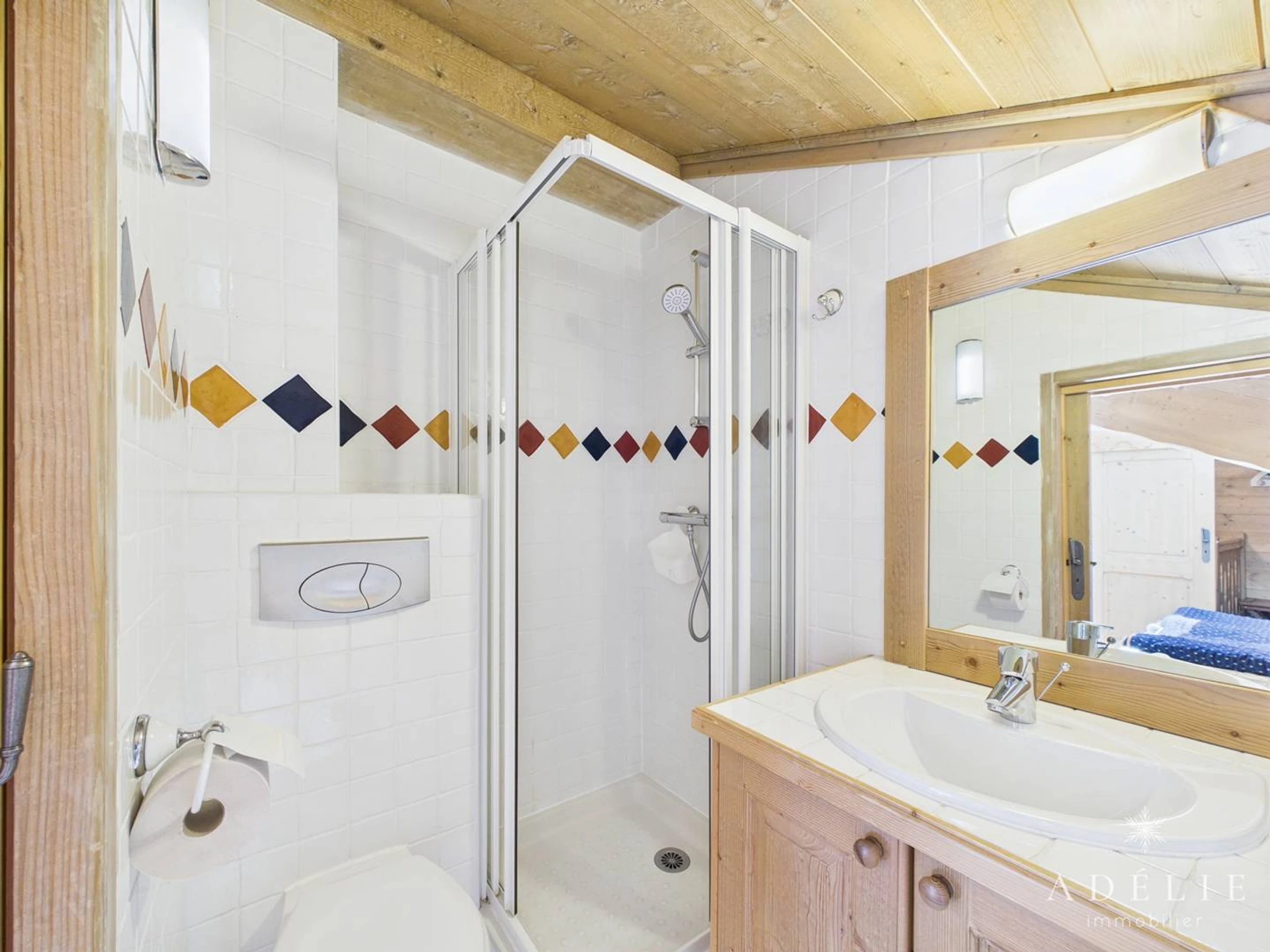 A l'étage une chambre avec deux lits simples et salle de douche attenante.