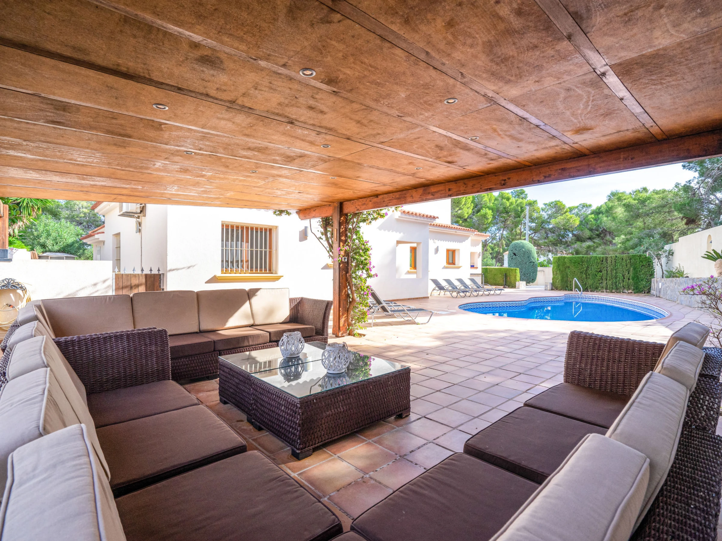 Belle, grande maison "Johlim", de 2 étages. À 2 km du centre de Moraira, à 1.5 km de la mer, à 1.5 km de la plage. A usage privé: grand, beau jardin entretenu (clôturé), piscine en forme d’haricot, à l'abri des regards, cloturée (4 x 8 m, profondeur 120 - 200 cm, disponibilité saisonnière: [hidden] - [hidden] avec marches intérieures. WC dans l'espace piscine, douche extérieure, ping-pong. Infrastructures de la Maison: chauffage central, lave-linge. Place de parking (pour 3 voitures) sur le terrain. Magasins 2 km, centre commercial 2 km, restaurant, bar 300 m, arrêt de bus 2.5 km, plage de sable "Playa L'Ampolla" 2 km. Veuillez noter: voiture recommandée. Le propriétaire n'accepte pas les groupes de jeunes.