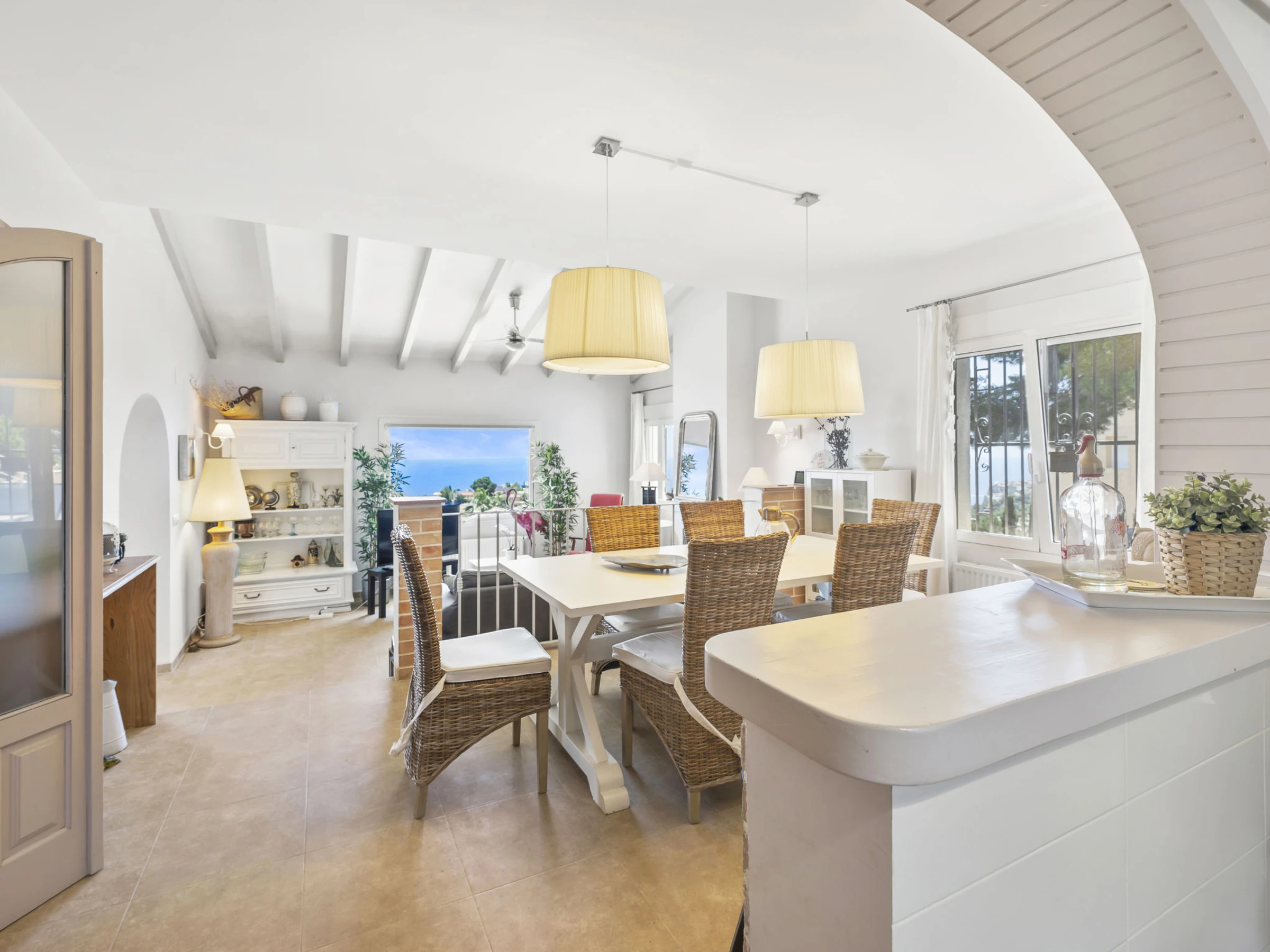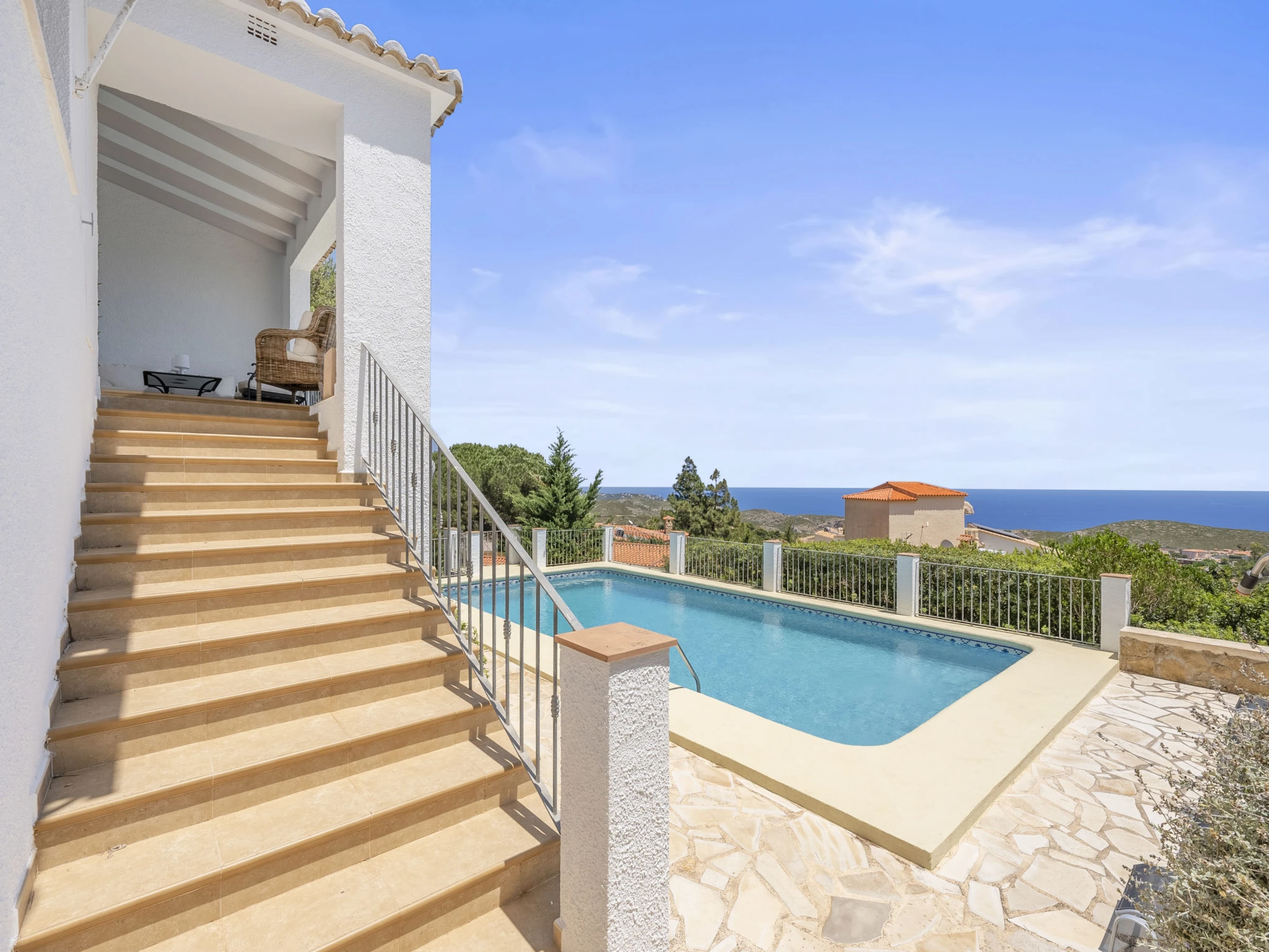 Belle maison "Cielo Abierto", de 2 étages, rénovée. Dans le quartier de Cumbre del Sol, à 9 km du centre de Moraira, à 11 km du centre de Javea, situation tranquille, ensoleillée quartier résidentiel, à 2.3 km de la mer, à 2.3 km de la plage. A usage privé: terrain, jardin sur plusieurs niveaux plantes et arbres, piscine rectangulaire (4 x 8 m, profondeur 120 - 210 cm, disponibilité saisonnière: [hidden] - [hidden] avec marches intérieures. Douche extérieure. Infrastructures de la Maison: chauffage central. Place de parking sur le terrain. Supermarché, restaurant, boulangerie 400 m, arrêt de bus "Benitachell" 3.7 km, gare ferroviaire "Teulada" 8.3 km, ferry "Denia" 21.9 km, plage de sable "Playa L'Ampolla" 9 km plage de graviers "Cala Moraig" 2.3 km. Terrain de golf (9 trous) 5.5 km, tennis 4.5 km. Veuillez noter: voiture recommandée. Le propriétaire n'accepte pas les groupes de jeunes.