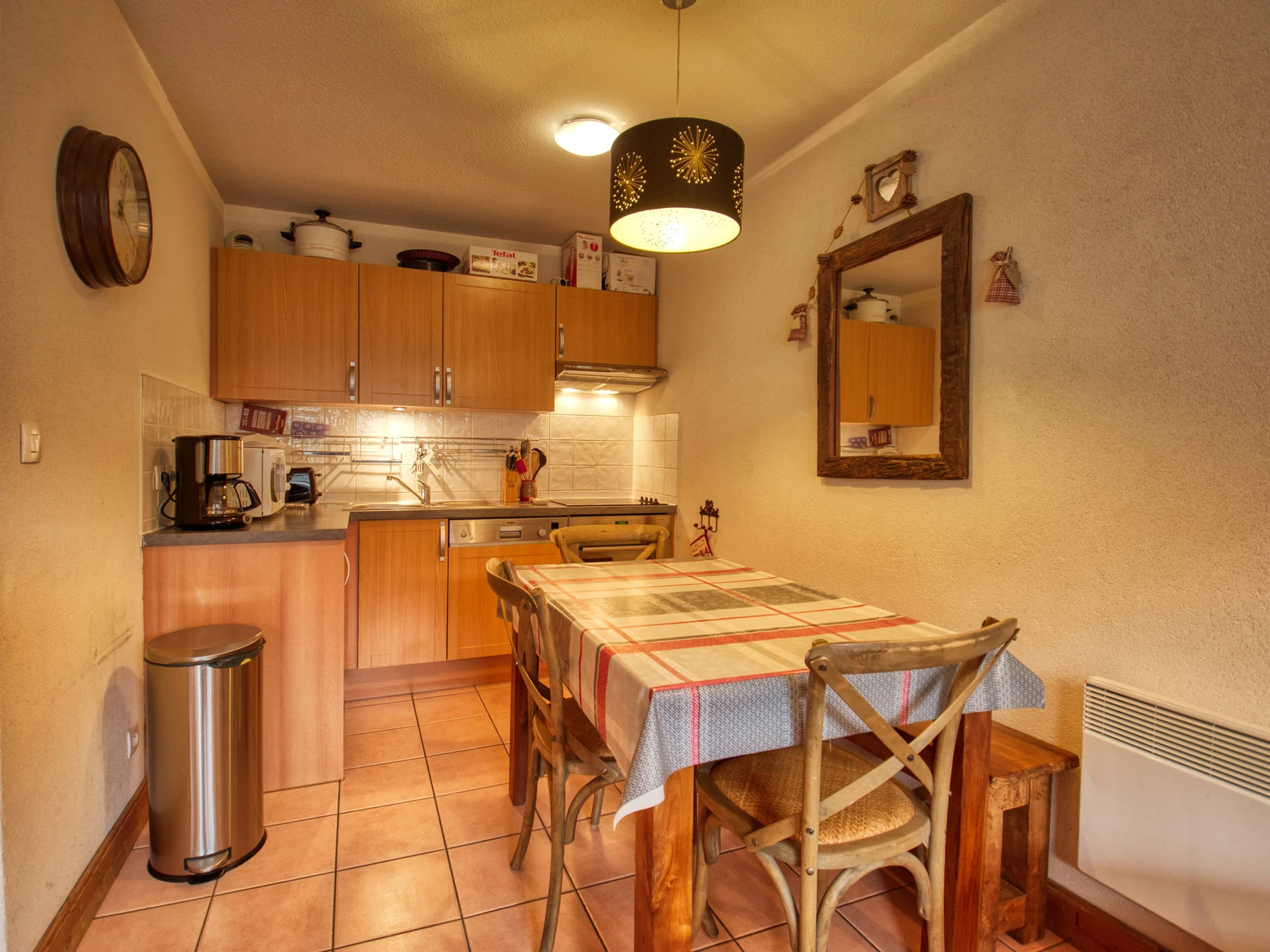 La cuisine est équipée d'un réfrigérateur TOP, d'un lave-vaisselle, d'un four, de plaques vitrocéramiques, d'un micro-ondes, d'une cafetière électrique filtre, une bouilloire électrique, d'un appareil à raclette, d'un appareil à fondue, d'un mixeur plongeant, d'un grille-pain, de vaisselle et d'une batterie de cuisine.