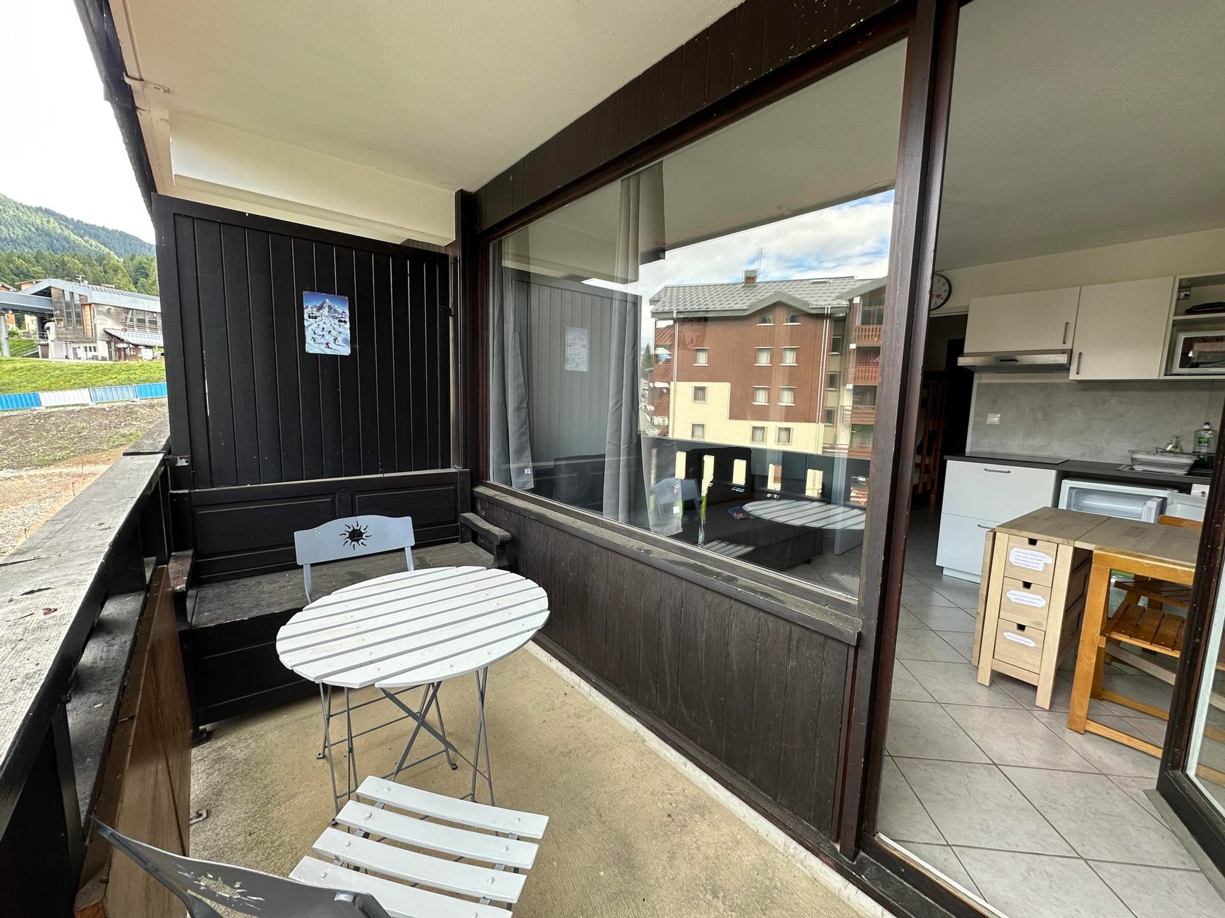 Il se compose d'un coin montagne, d'un séjour avec télévision, d'une salle de douche, de toilettes séparées et d'un coin-cuisine équipé, balcon expostion nord est.
