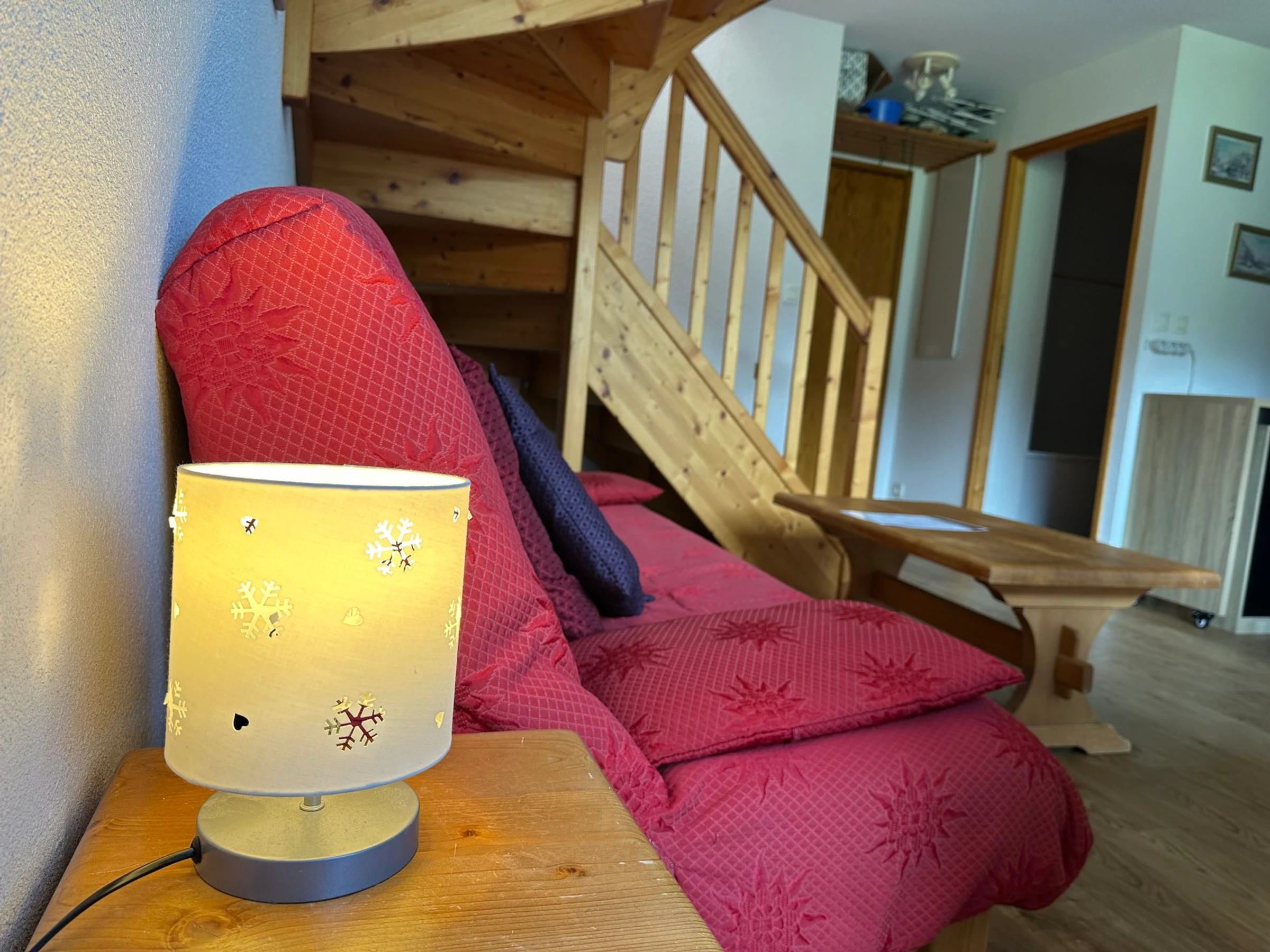 En entrant, vous serez accueillis par une entrée qui mène à une sdb avec baignoire et WC séparé, un séjour avec tv est ouvert sur la cuisine entièrement équipée , une chambre .Le séjour donne accès à un balcon exposé à l'est, où vous pourrez profiter de repas en plein air avec le mobilier de jardin fourni. A l'étage vous trouverez une chambre et une salle de douche supplémentaire.