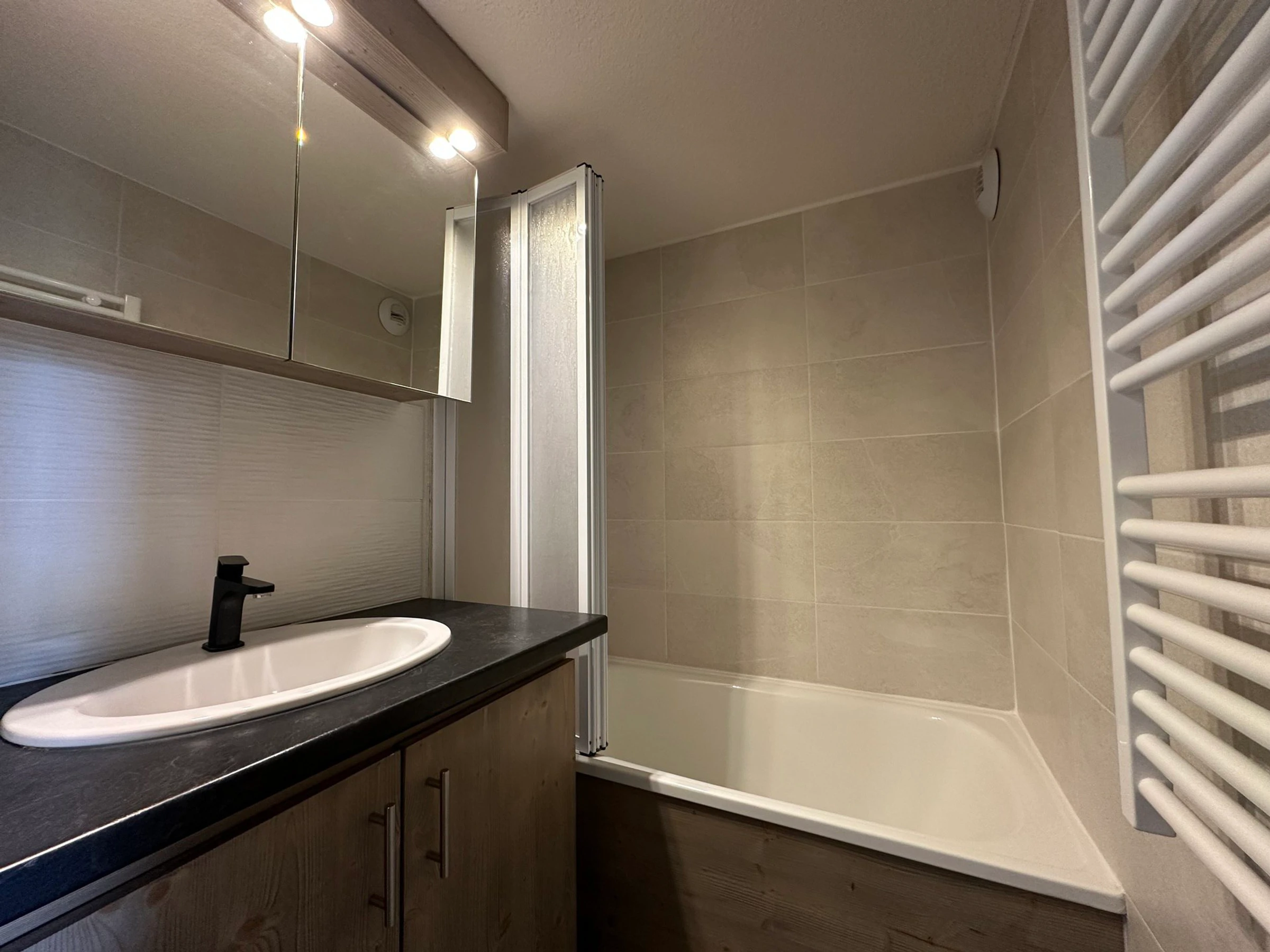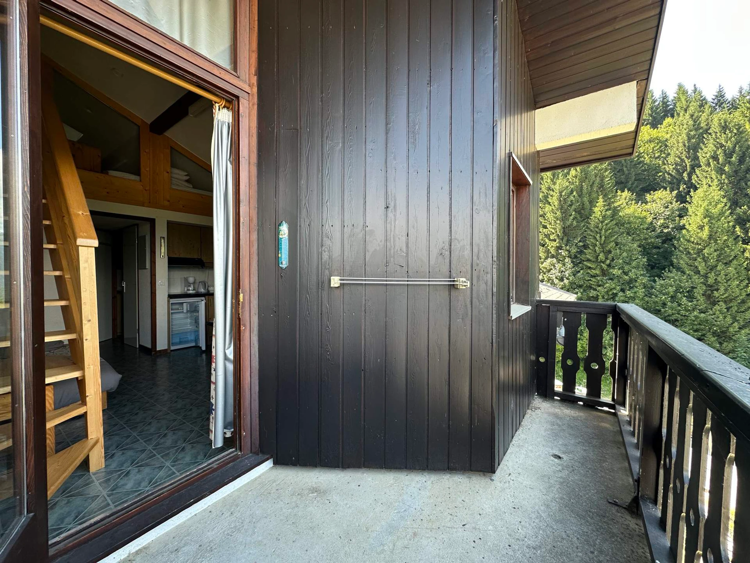 L'appartement dispose d'une entrée avec rangement, d'une salle de bain avec baignoire, de toilettes séparées, ainsi que d'une chambre inférieure à 1,80 mètres. Le séjour est équipé d'un canapé, d'une télévision et d'un coin cuisine.À l'étage, vous trouverez une mezzanine fermée inférieure à 1,80 mètres. Profitez également du balcon orienté nord qui offre une magnifique vue sur la montagne.