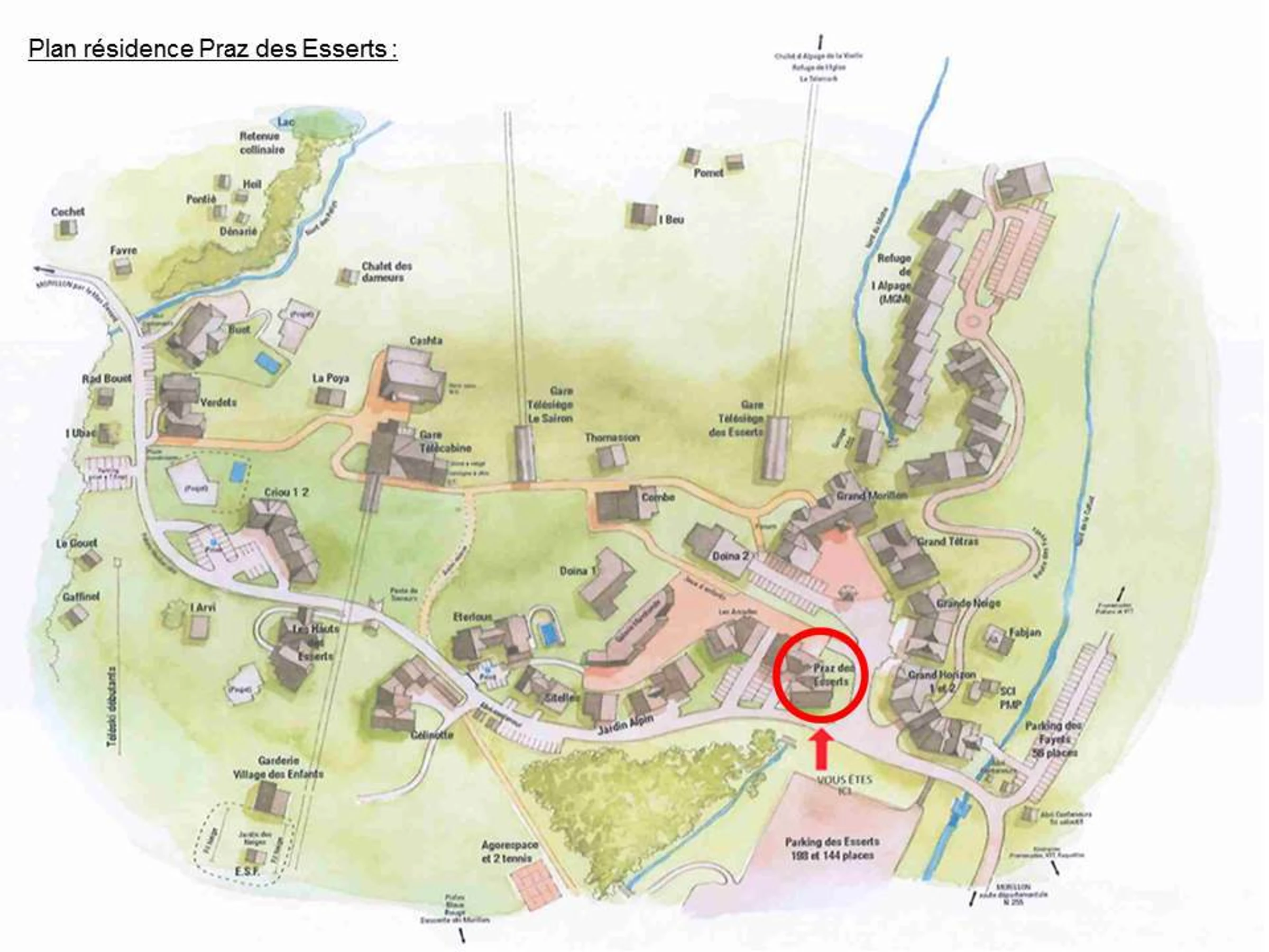 Située dans le centre de la station de Morillon 1100 – Les Esserts, la résidence du Praz des Esserts bénéficie d’un emplacement central privilégié, alliant confort et accès facile aux infrastructures de la station.